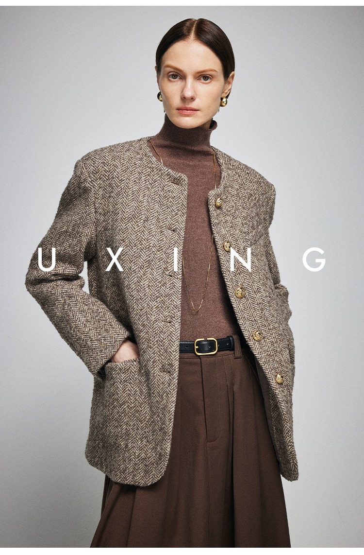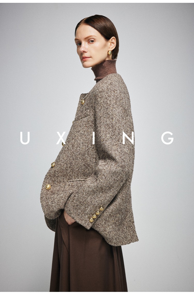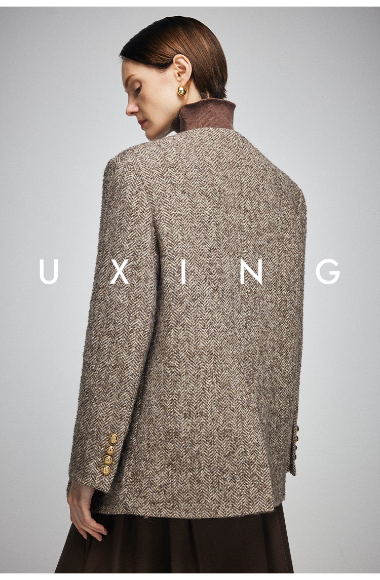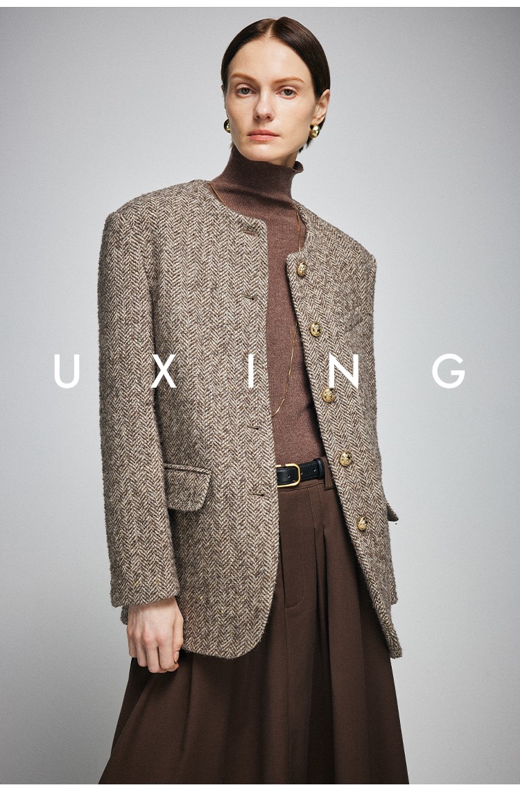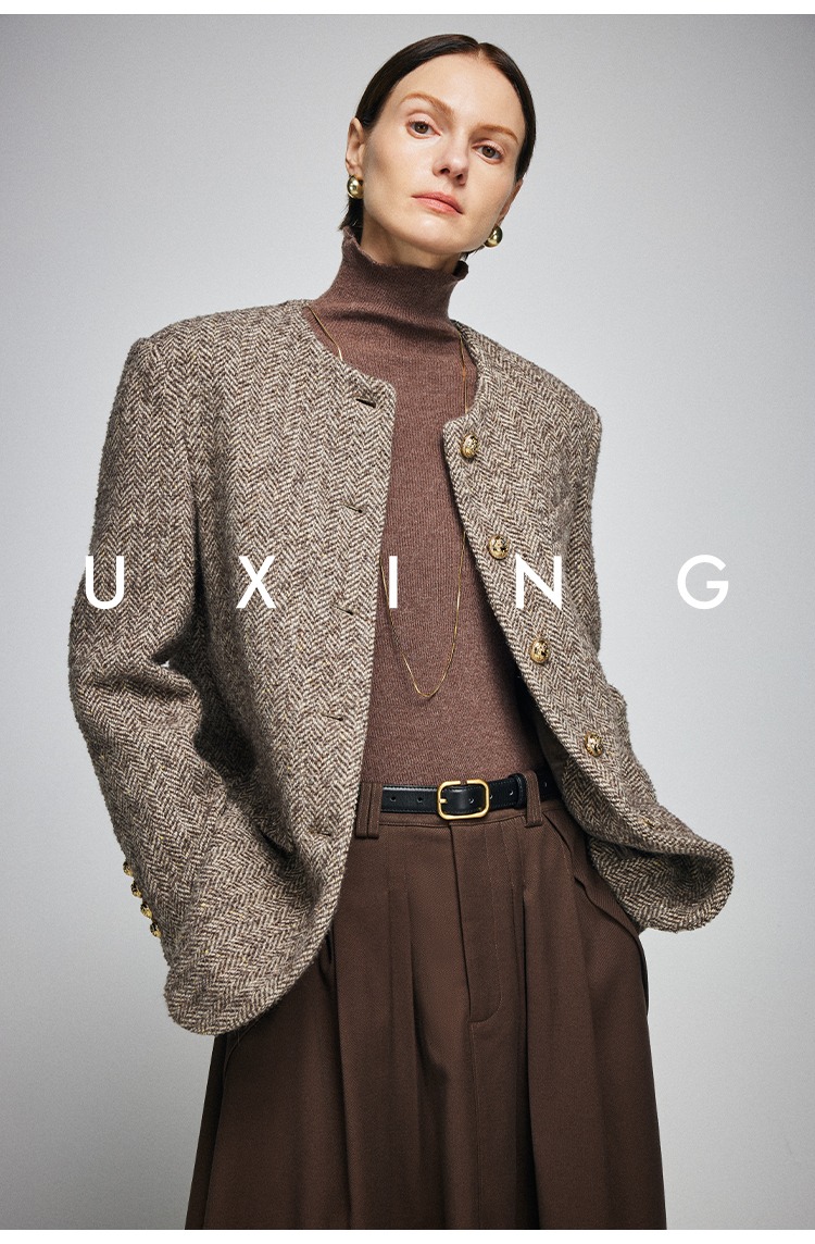 原形法式小香风羊毛大衣女2023秋冬新款西装呢外套廓形气质上衣