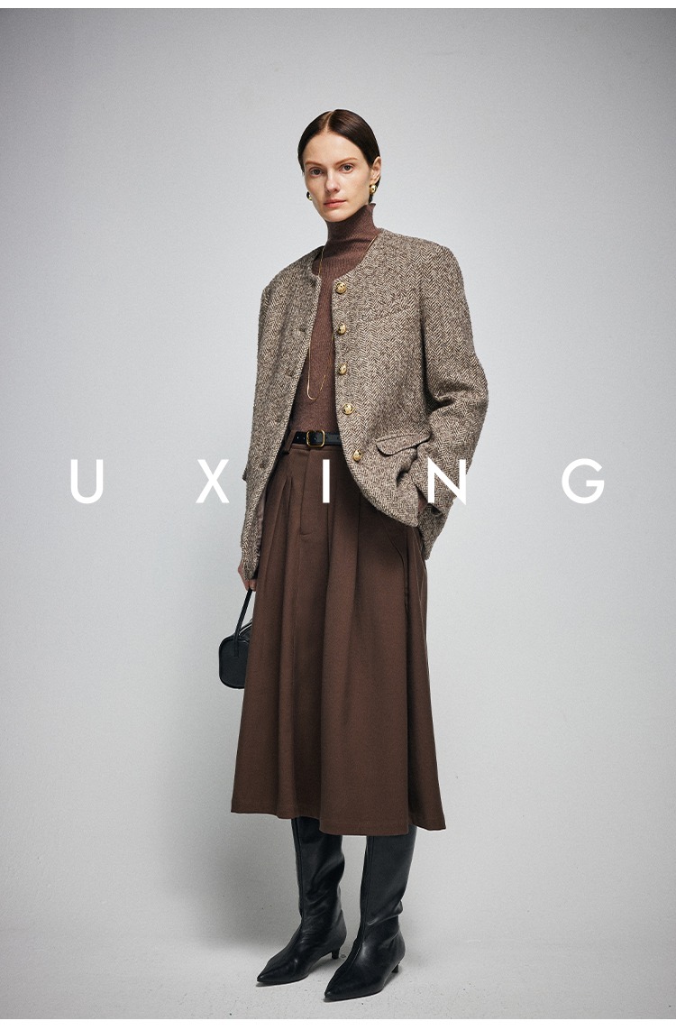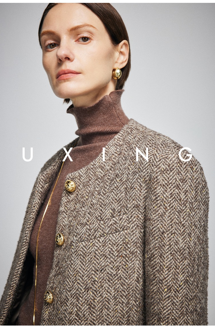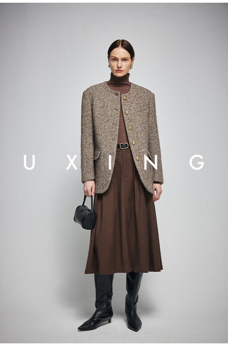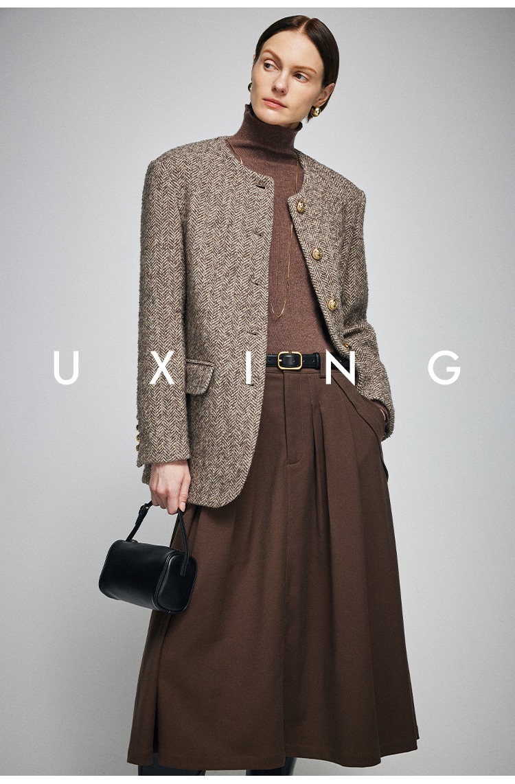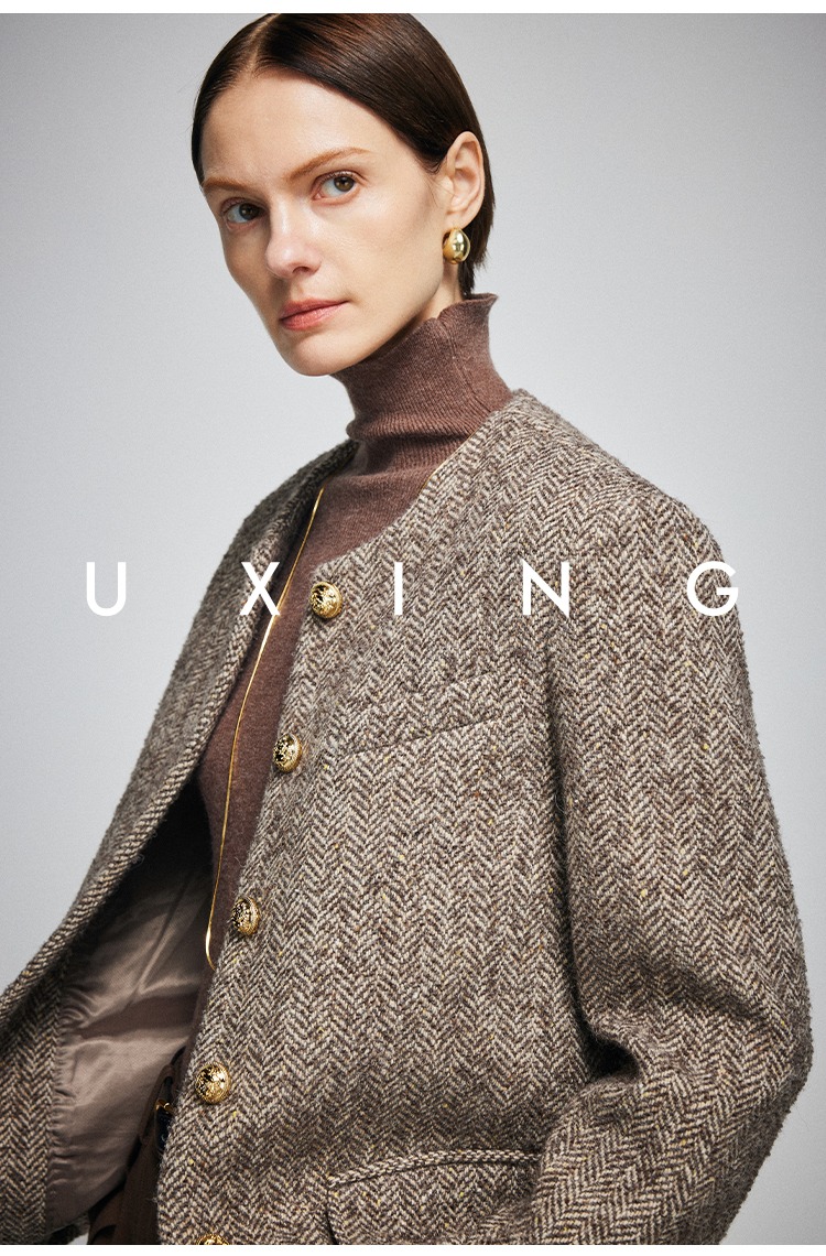 原形法式小香风羊毛大衣女2023秋冬新款西装呢外套廓形气质上衣