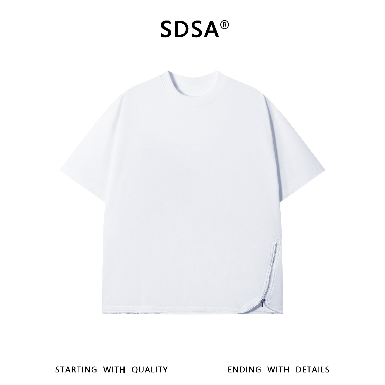 SDSA男装2026新款高贵轻奢潮牌简约纯色侧边拉链圆领短袖T恤百搭
