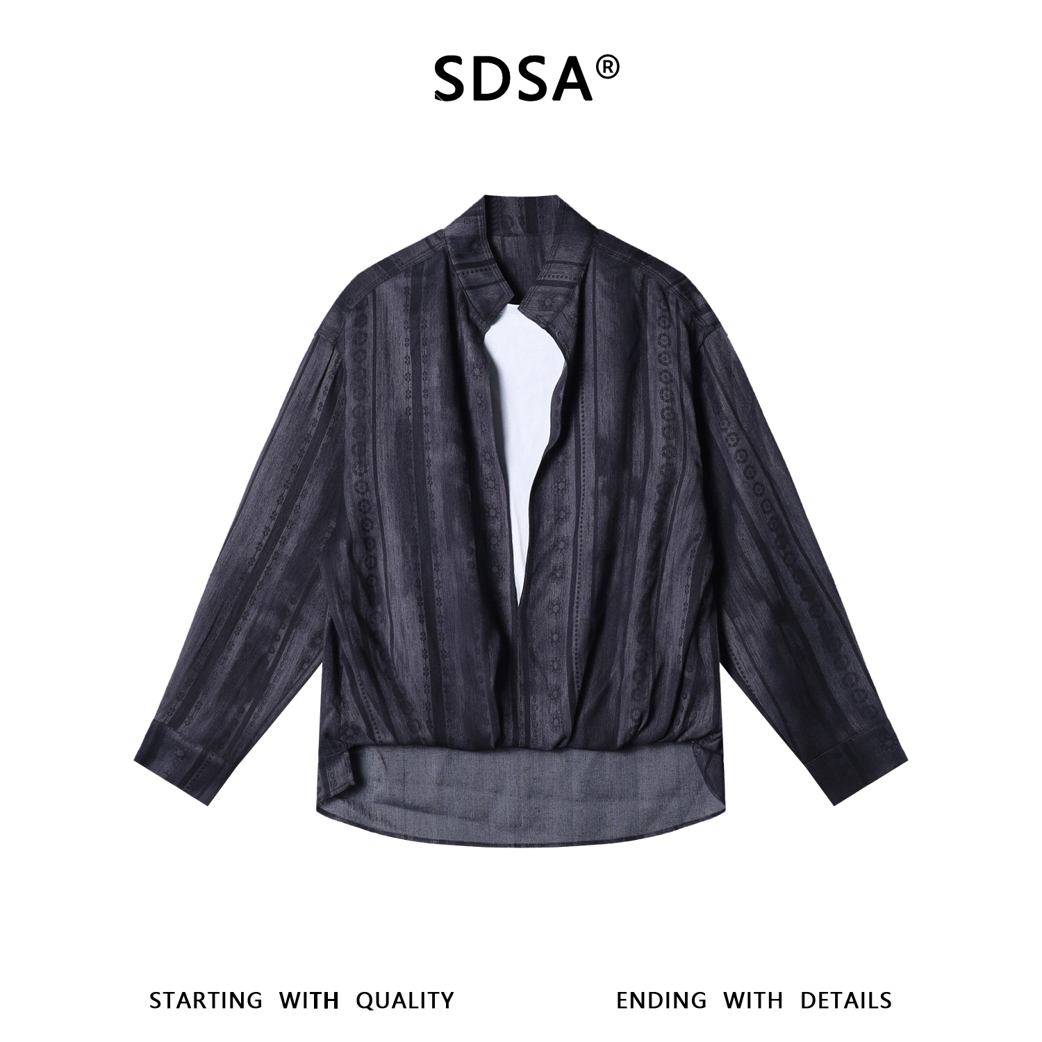 J5226SDSA男装2026新款高贵轻奢时尚前短后长设计立领假两件长袖T恤潮