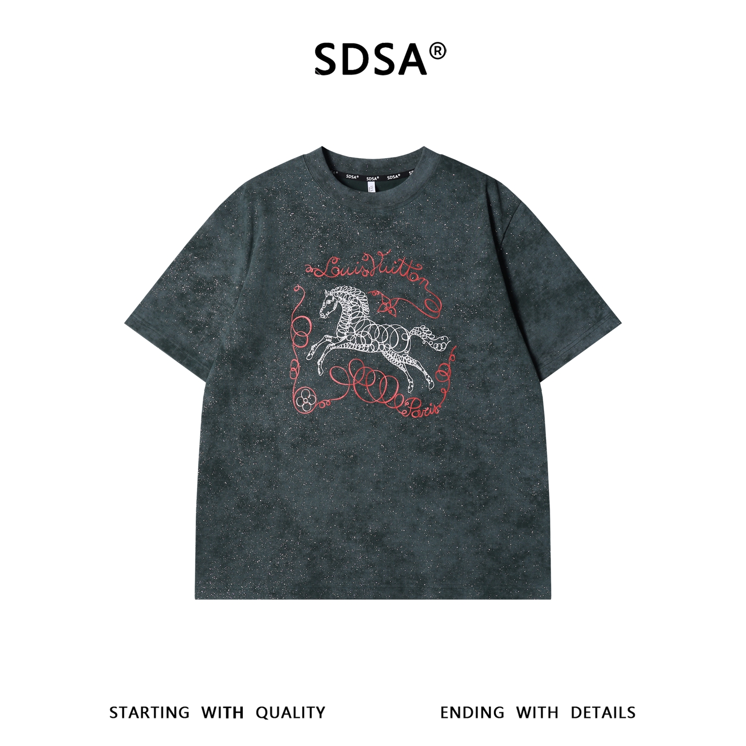 SDSA男装2026新款轻奢潮牌扎染满天星小马印花设计圆领短袖T恤