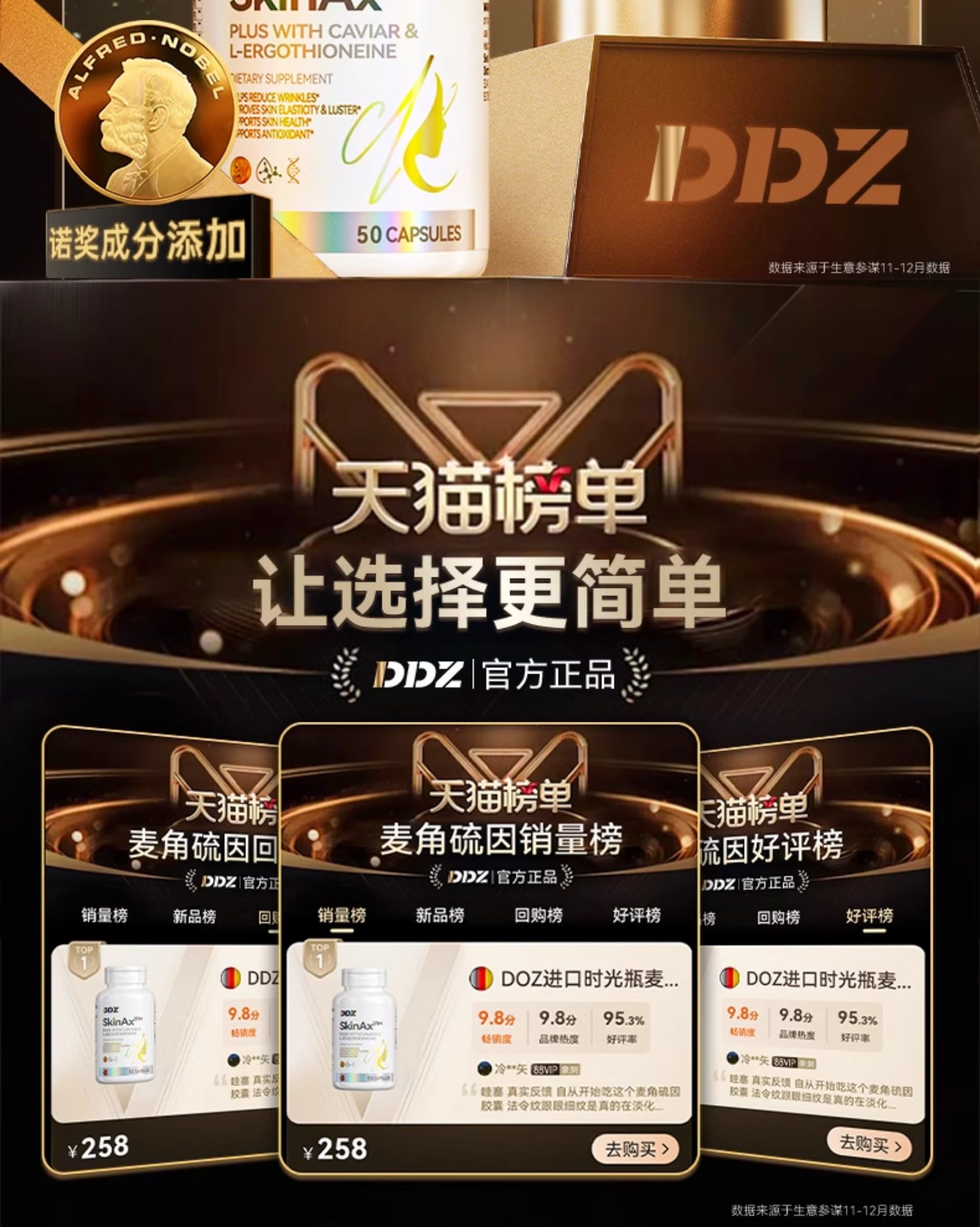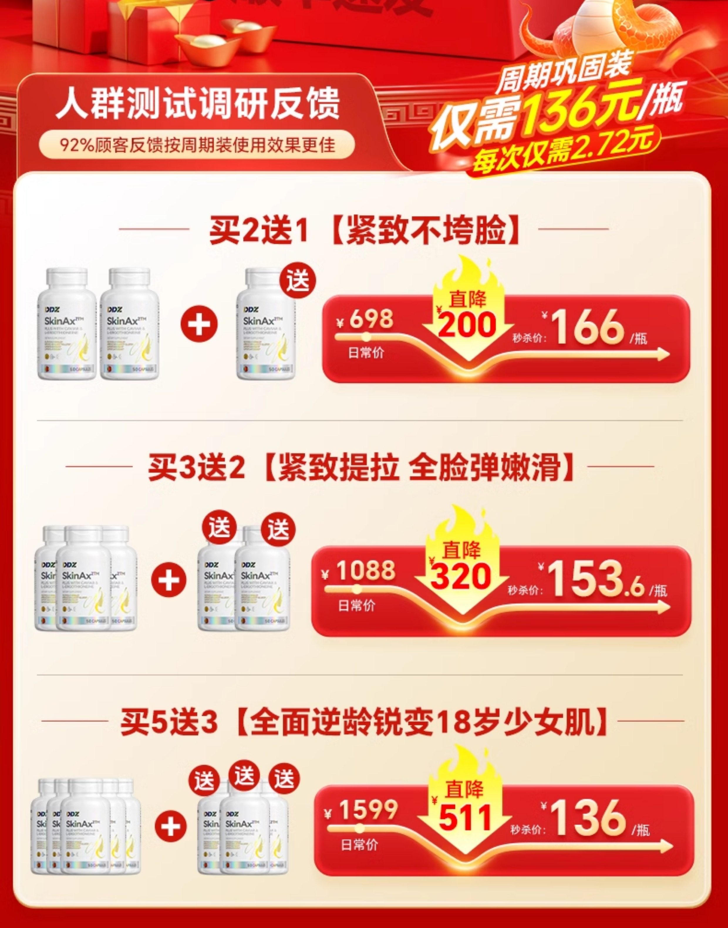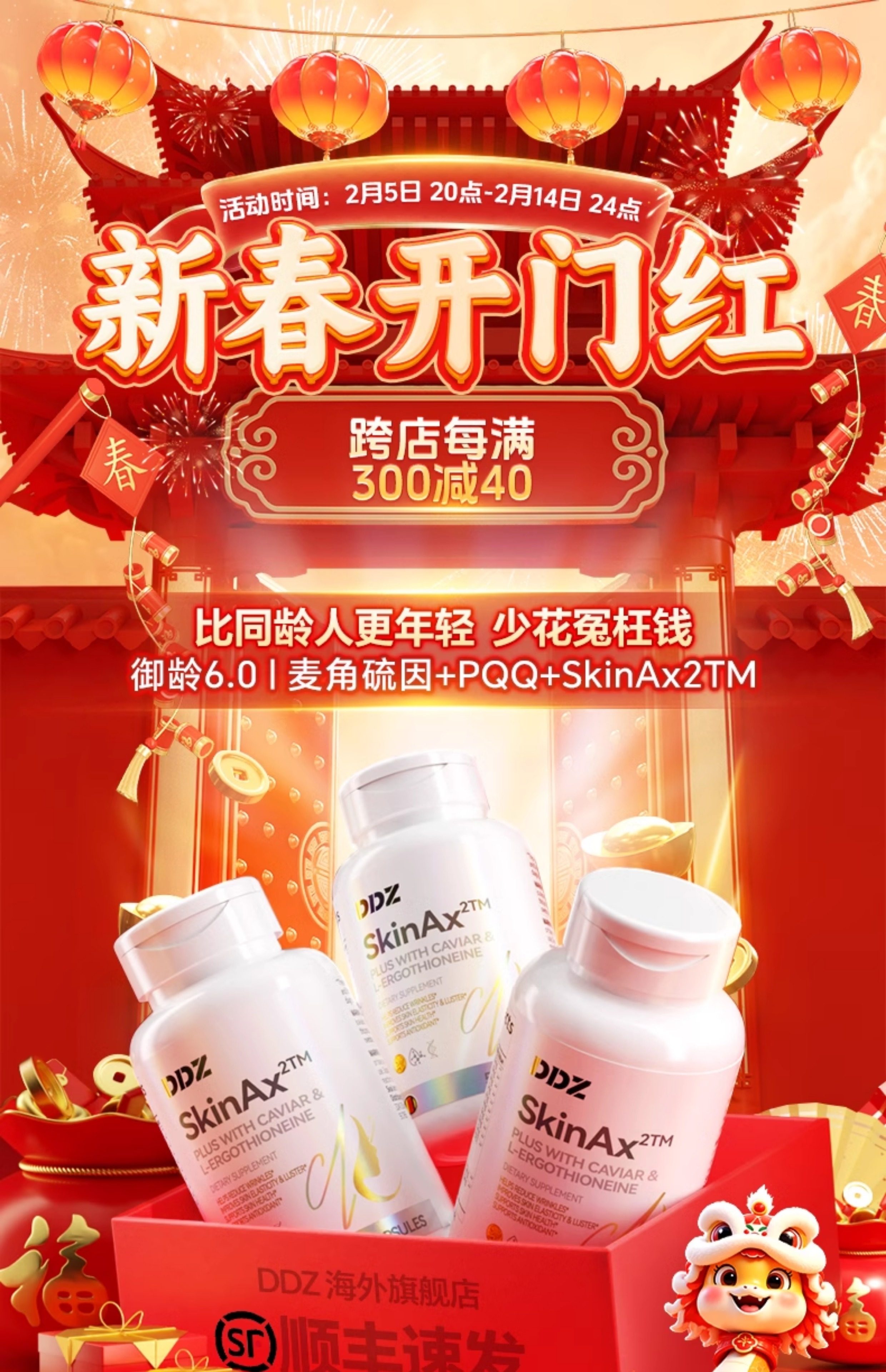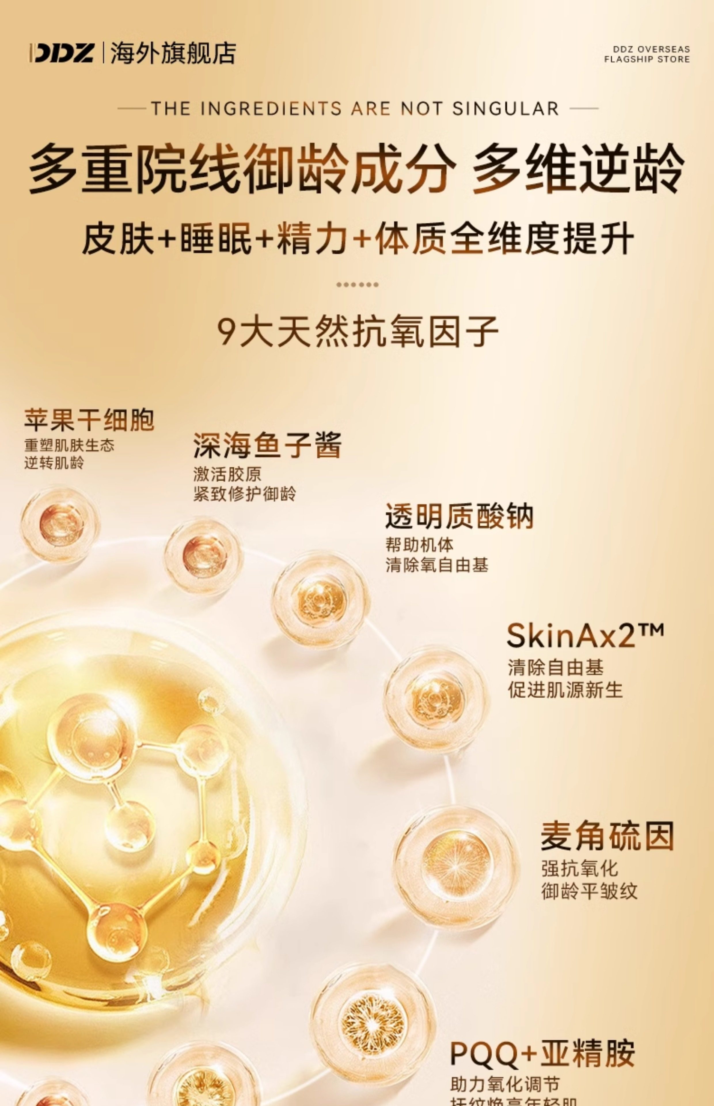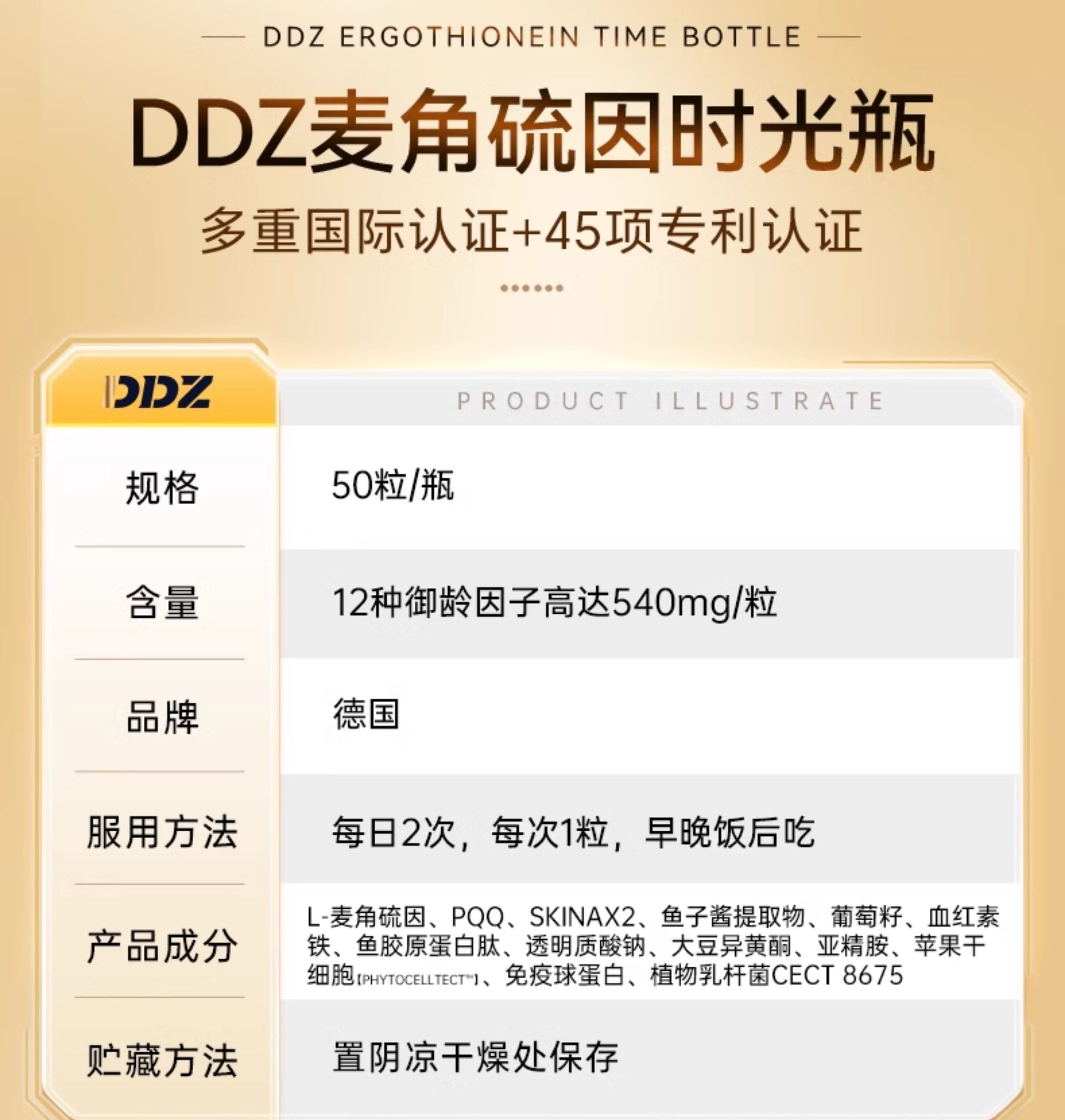 DDZ进口时光瓶麦角硫因PQQ葡萄籽胶囊提拉驻颜年轻态内调亮白正品