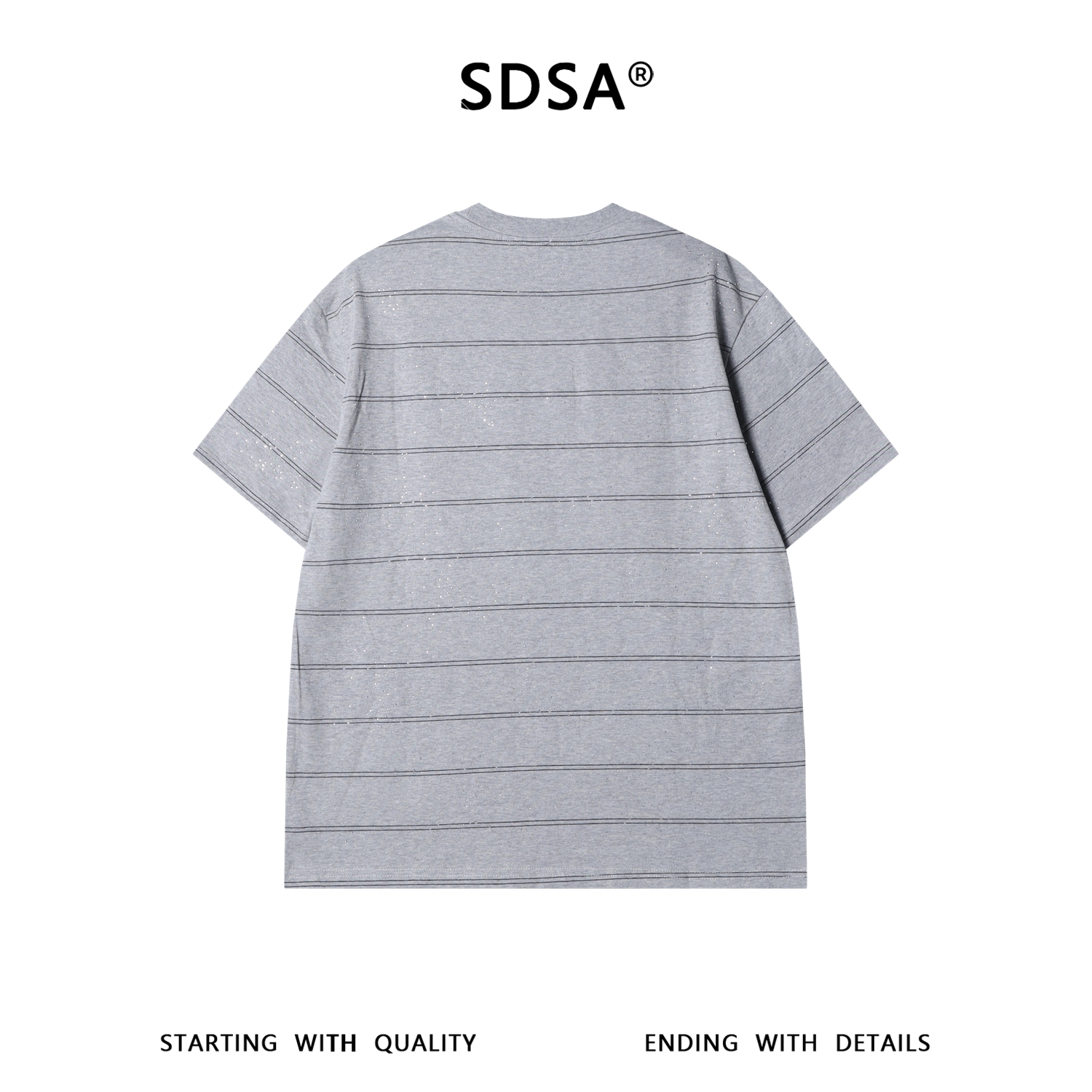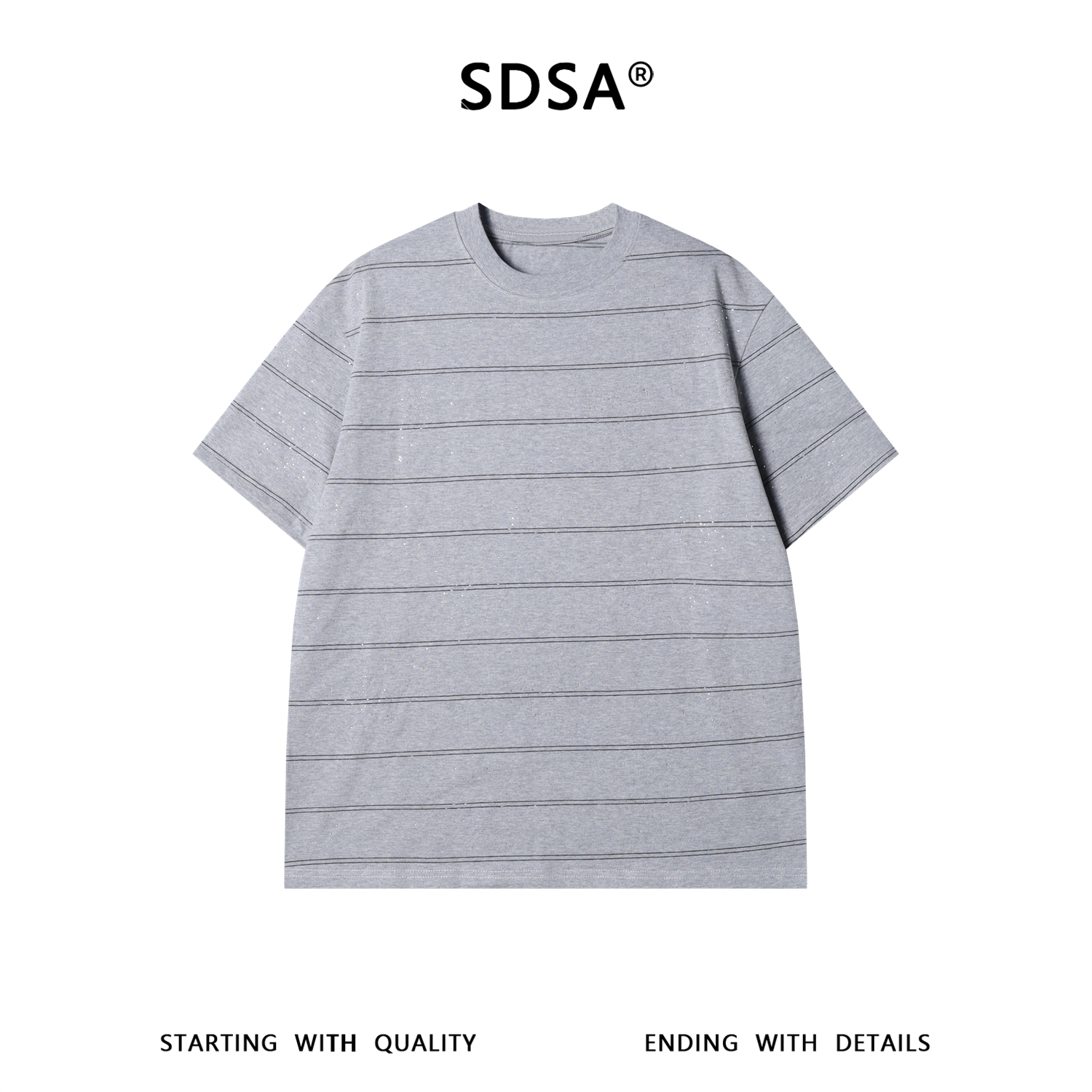 2621SDSA男装2026新款高贵轻奢日系百搭撞色条纹烫钻圆领短袖T恤宽松