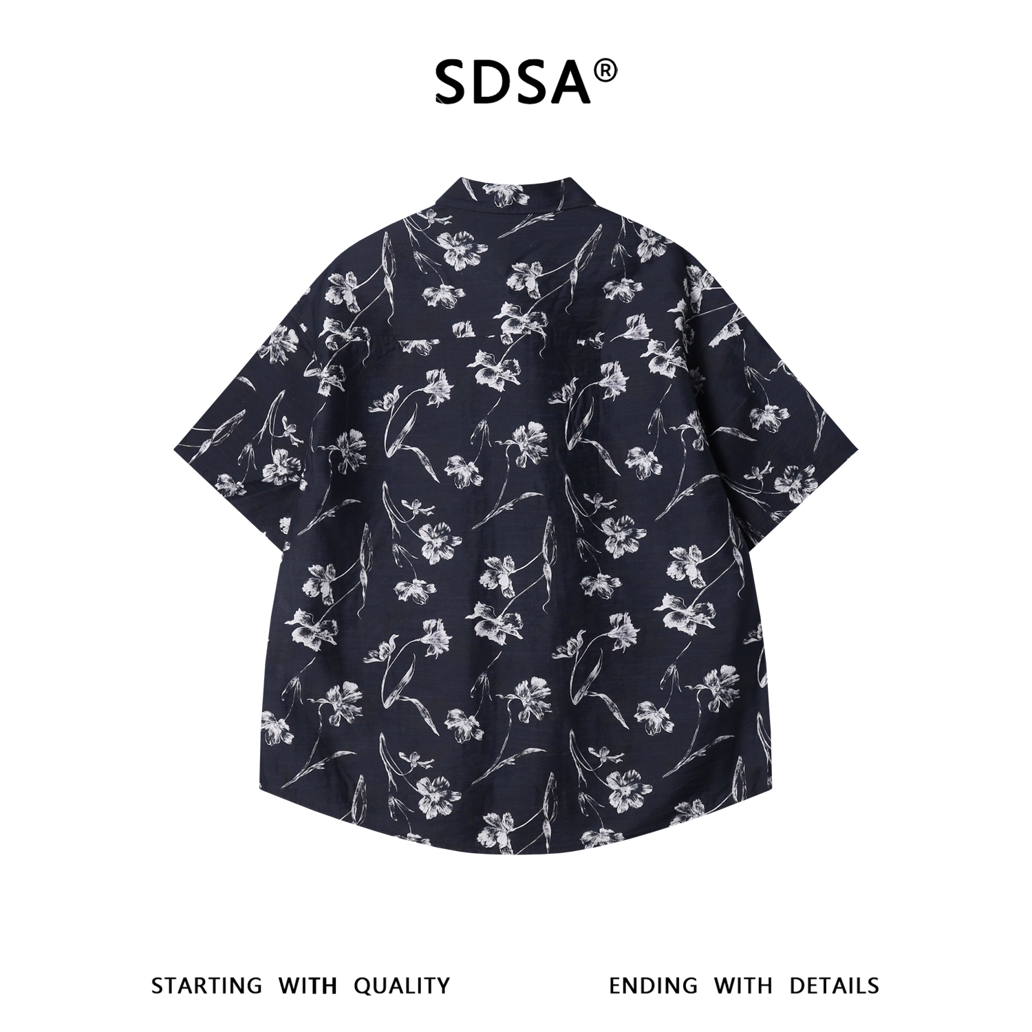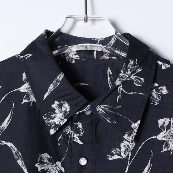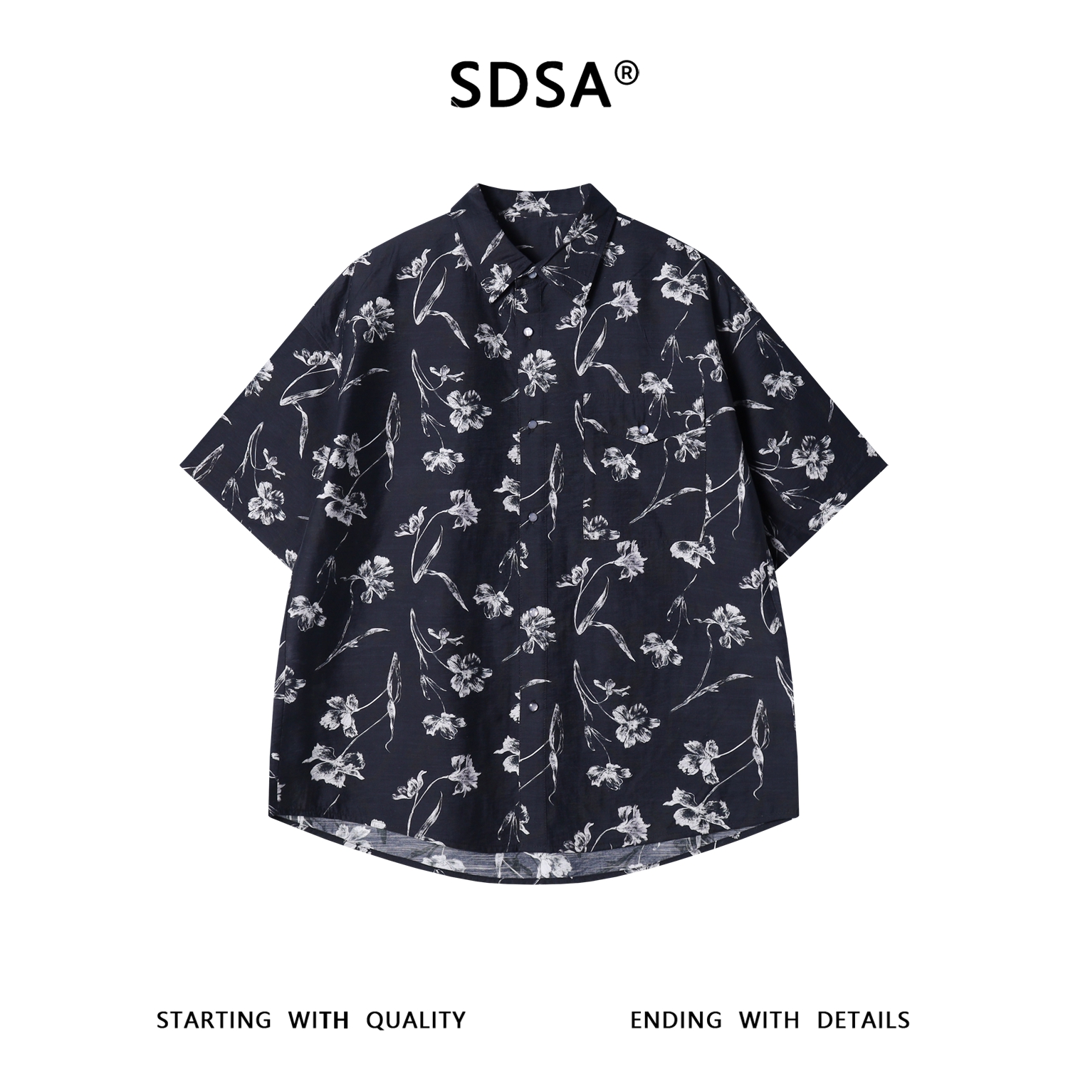 SDSA男装2026新款高贵轻奢日系宽松透气薄款撞色满印花卉短袖衬衣