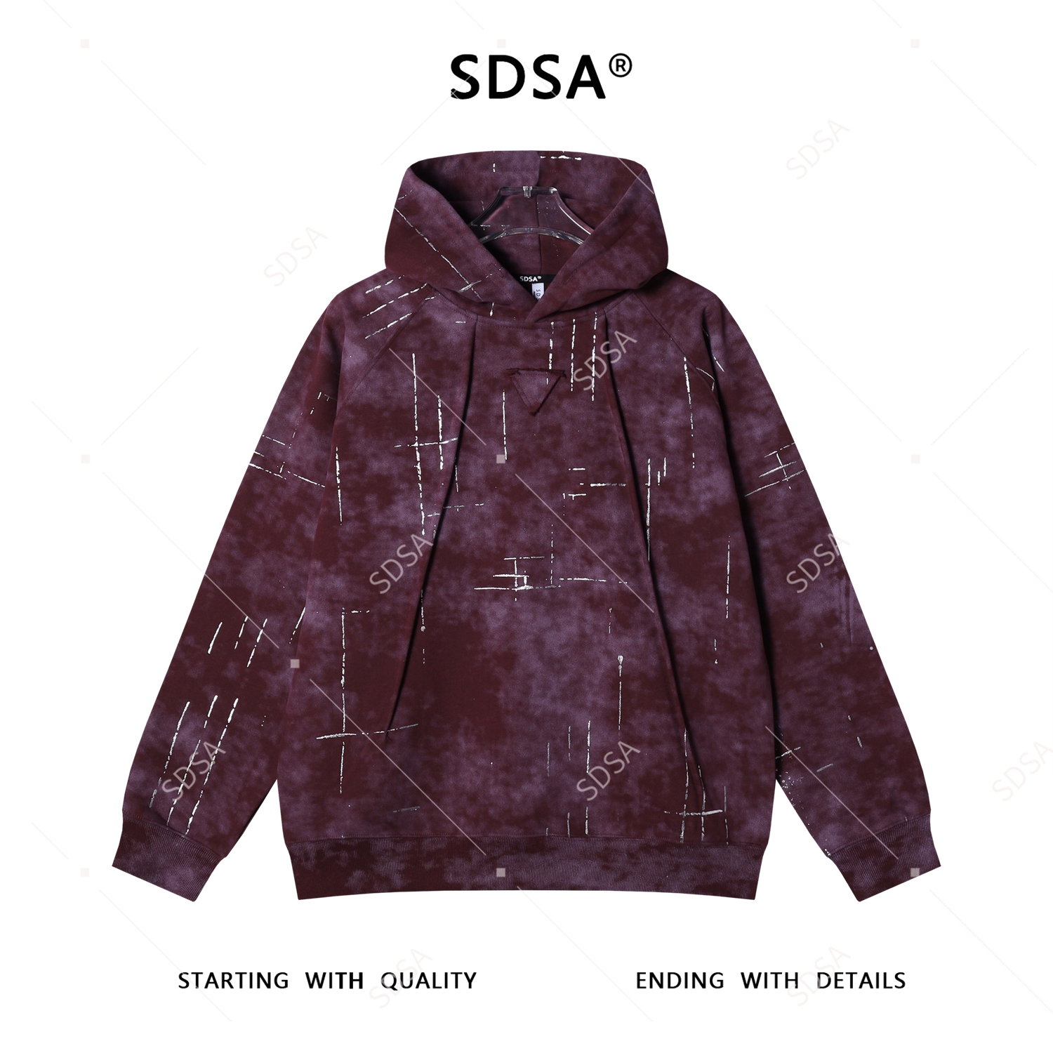 WY1118SDSA男士秋冬新款痞帅男装潮牌褶皱滴胶倒三角连帽卫衣百搭轻奢