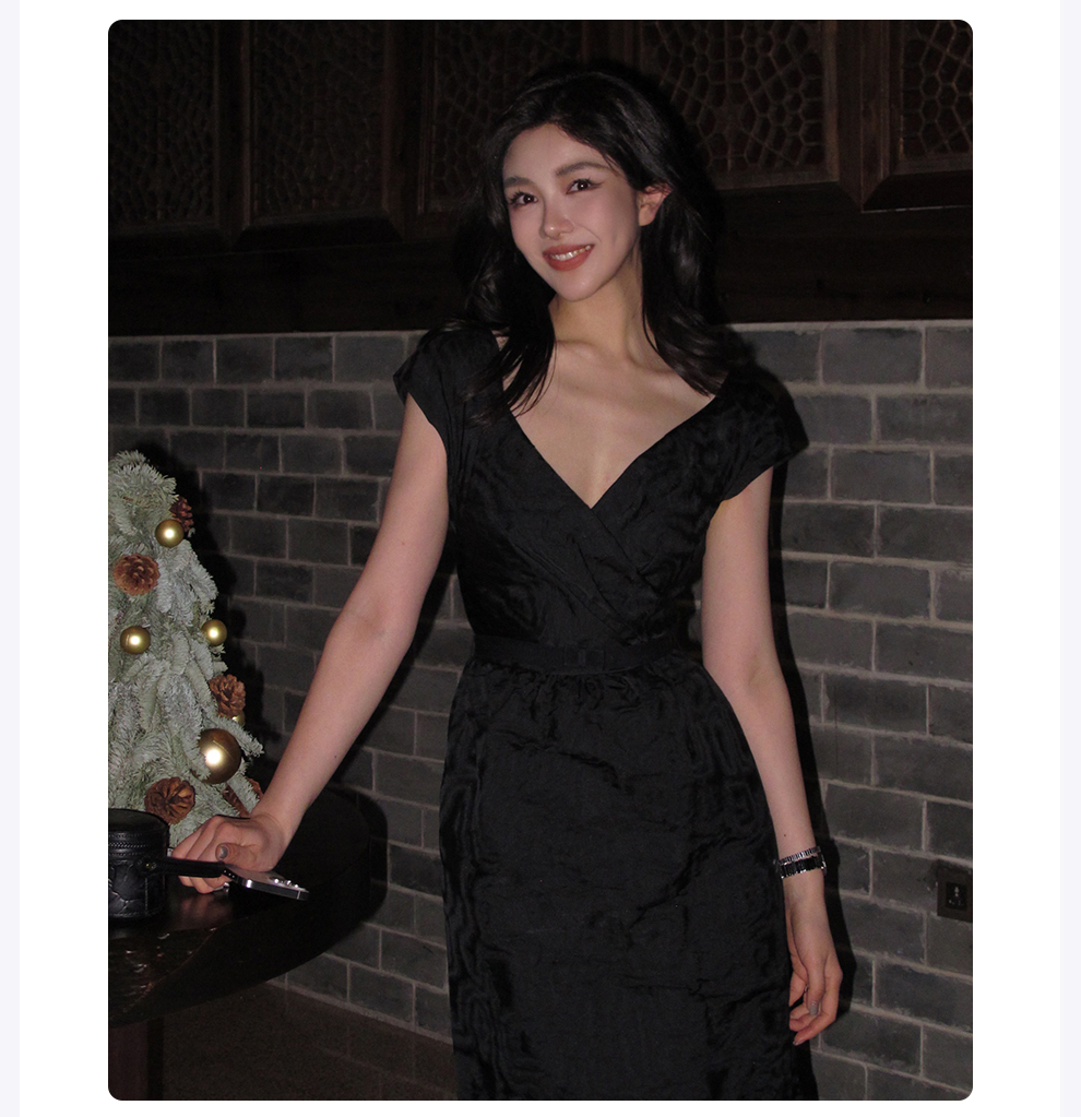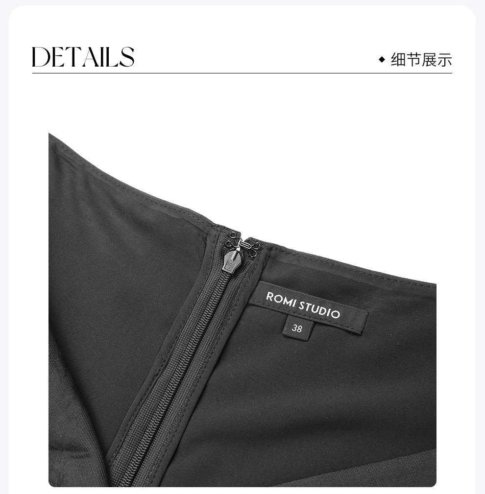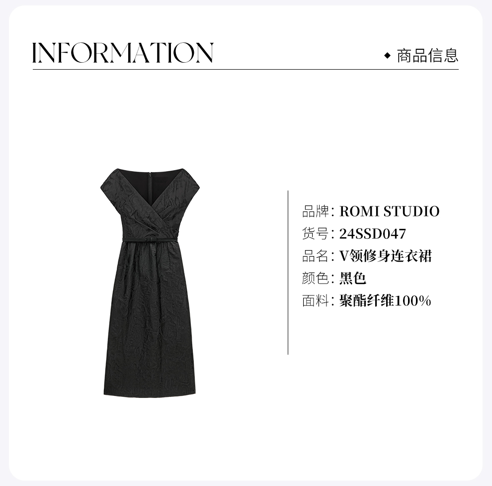 ROMI STUDIO“轻礼服” 定制肌理感优雅V领交叉修身连衣裙 24SSD047