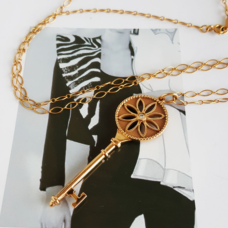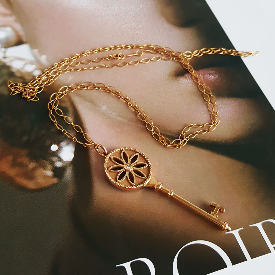 款式 | 大号玫瑰金镶单钻雏菊钥匙长项链 |