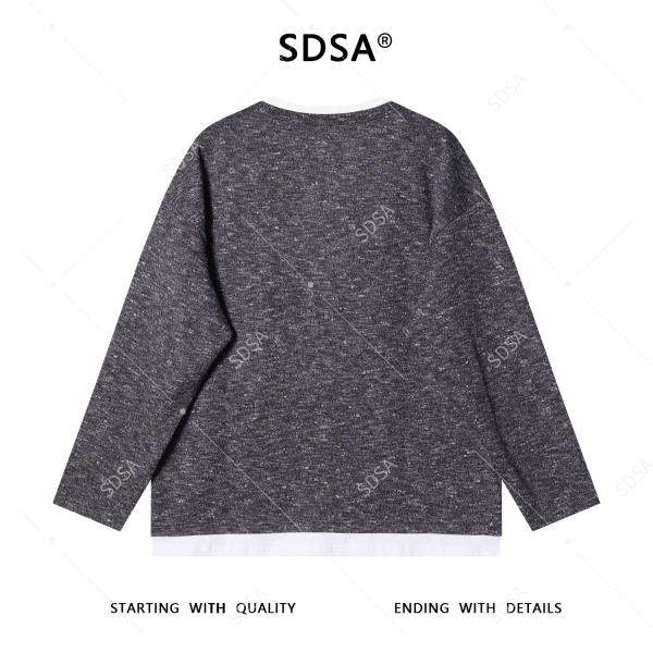 31050SDSA男士秋冬新款痞帅男装潮牌撞色假两件针织衫重磅百搭复古毛衣