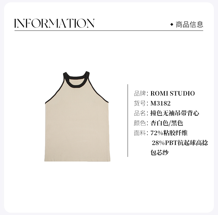 ROMI STUDIO【luxy系列】复古简约 撞色无袖遮副乳吊带背心 M3182