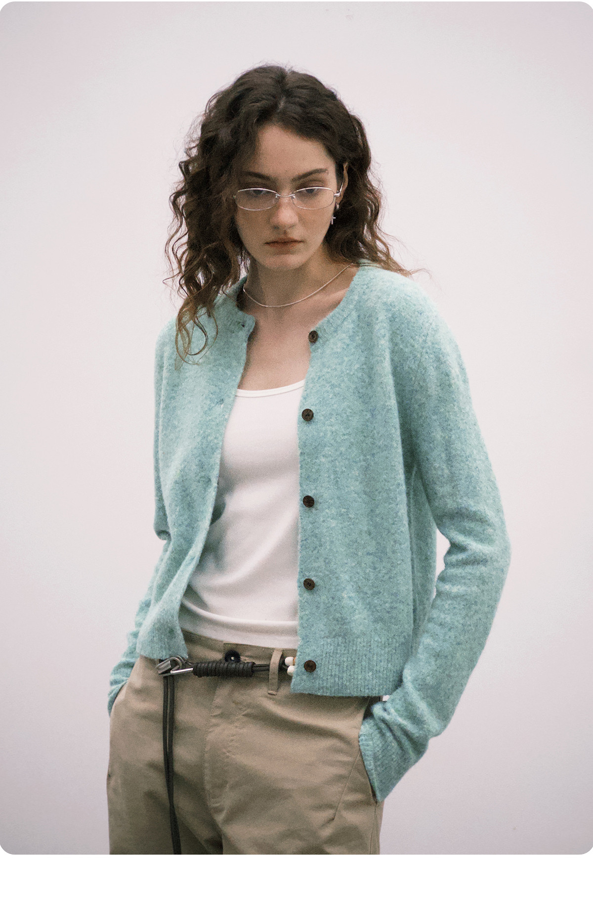 714street亲肤羊毛混纺毛衣开衫2025秋冬款外套圆领针织衫女外搭