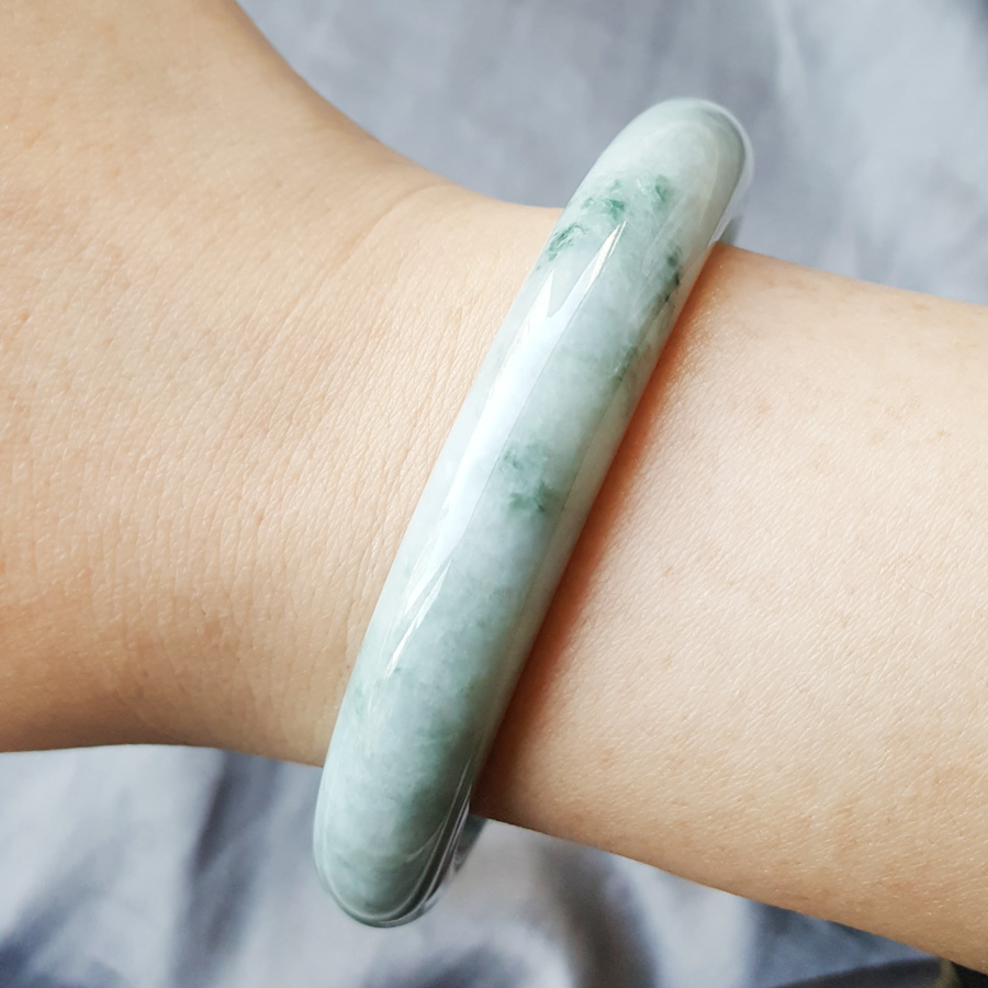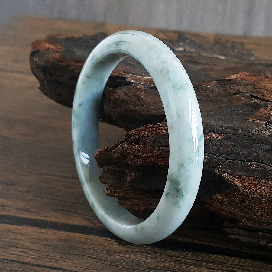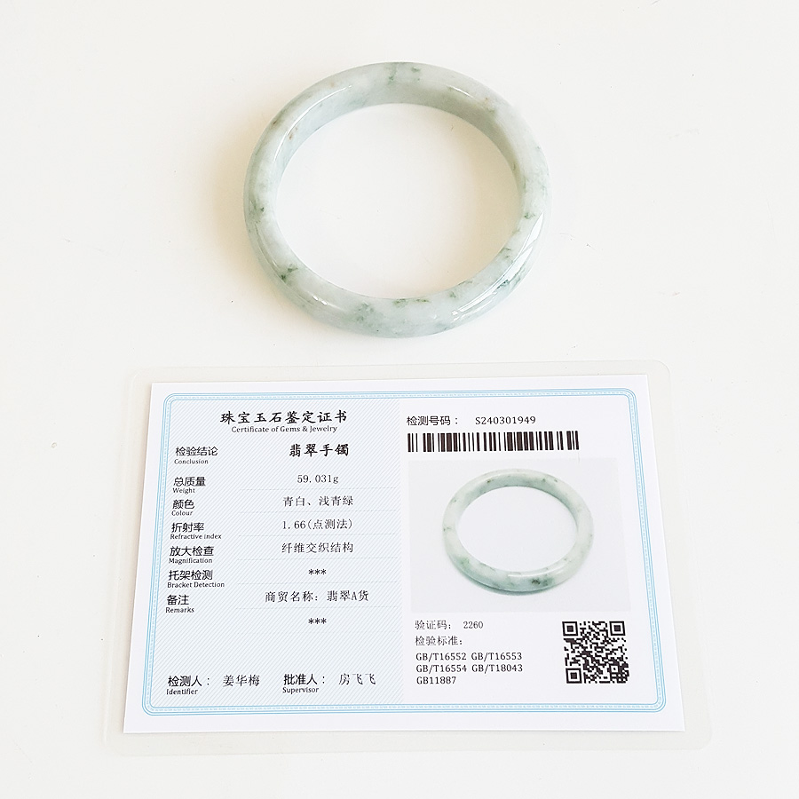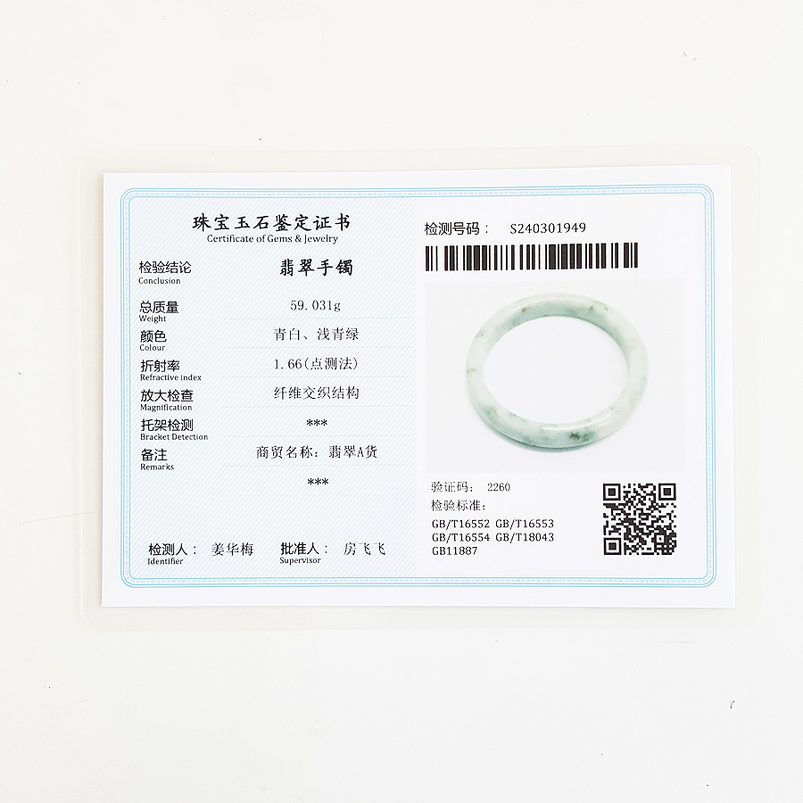 名称 | 天然正桩无裂纹豆种白底飘花63.5号翡翠手镯 |