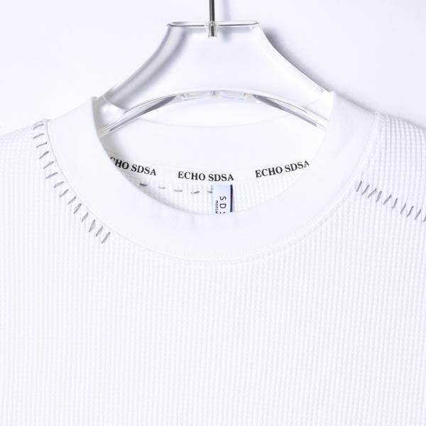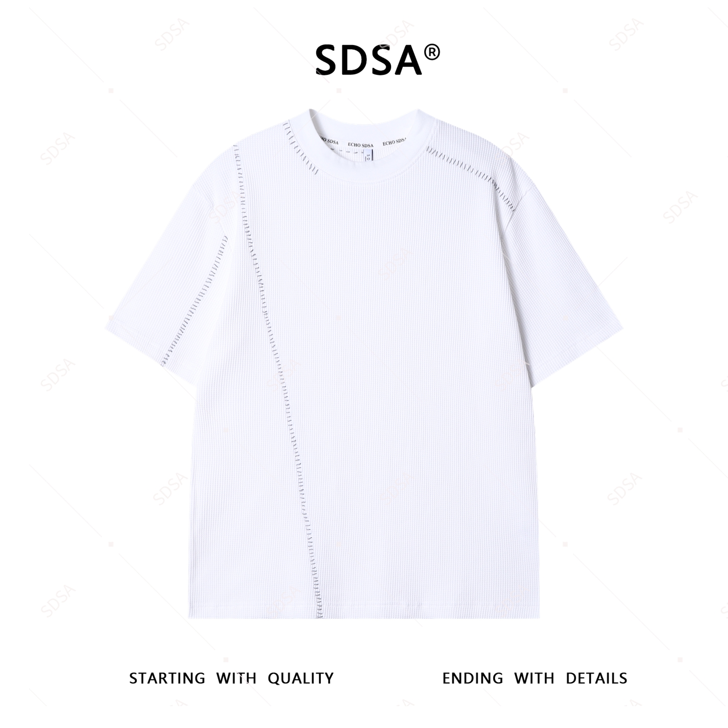 T4107夏季高级感新款男士潮牌撞色缝线华夫格圆领短袖T恤痞帅宽松上衣