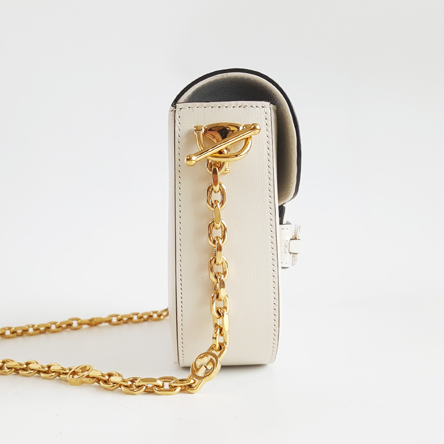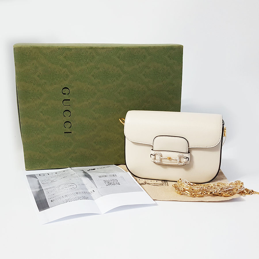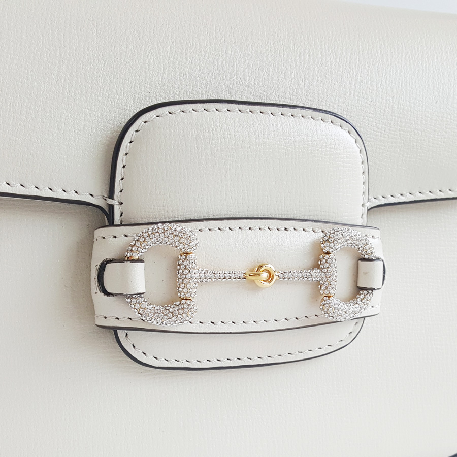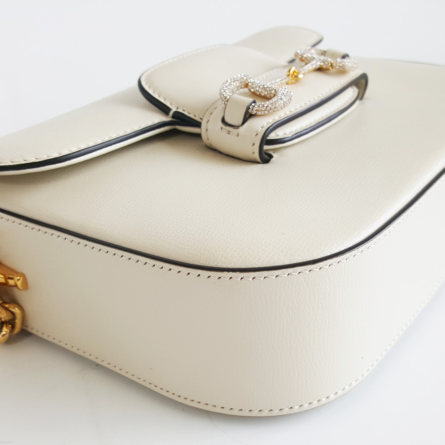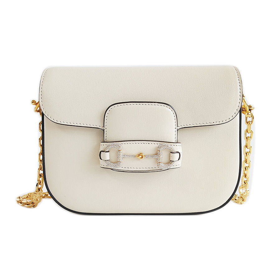 【98新】Gucci古驰1955系列女士白色全皮mini马衔扣钻扣1955链条包单肩包200824NJS01
