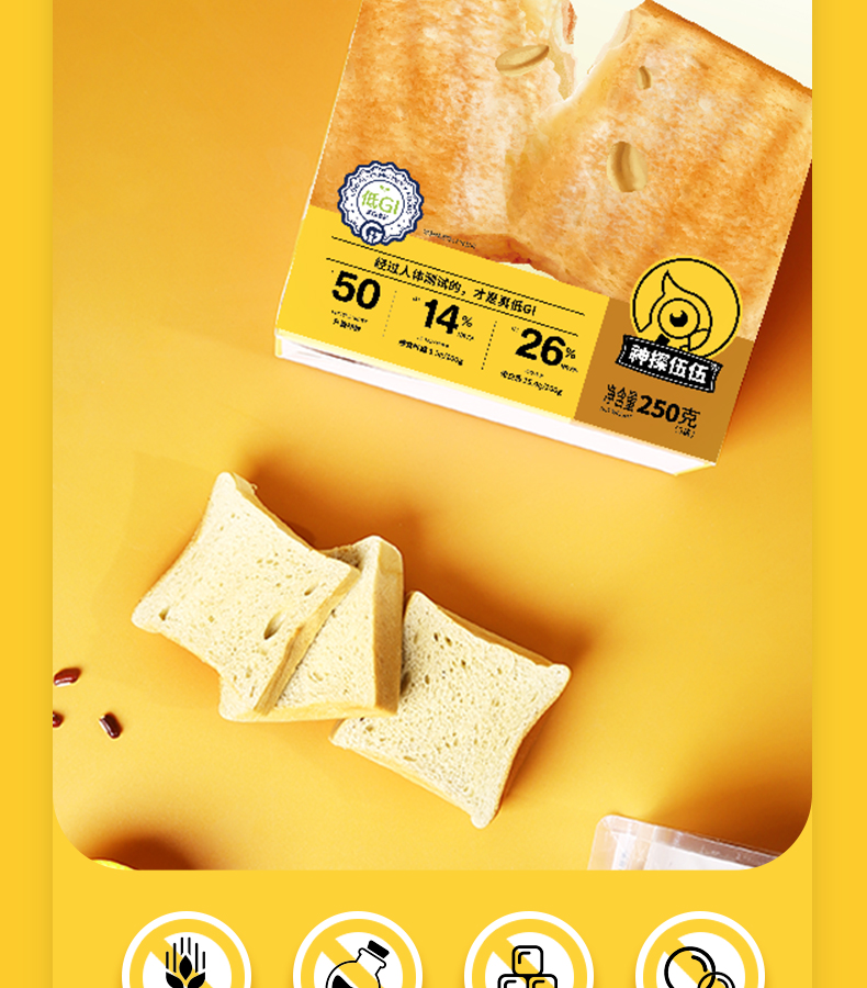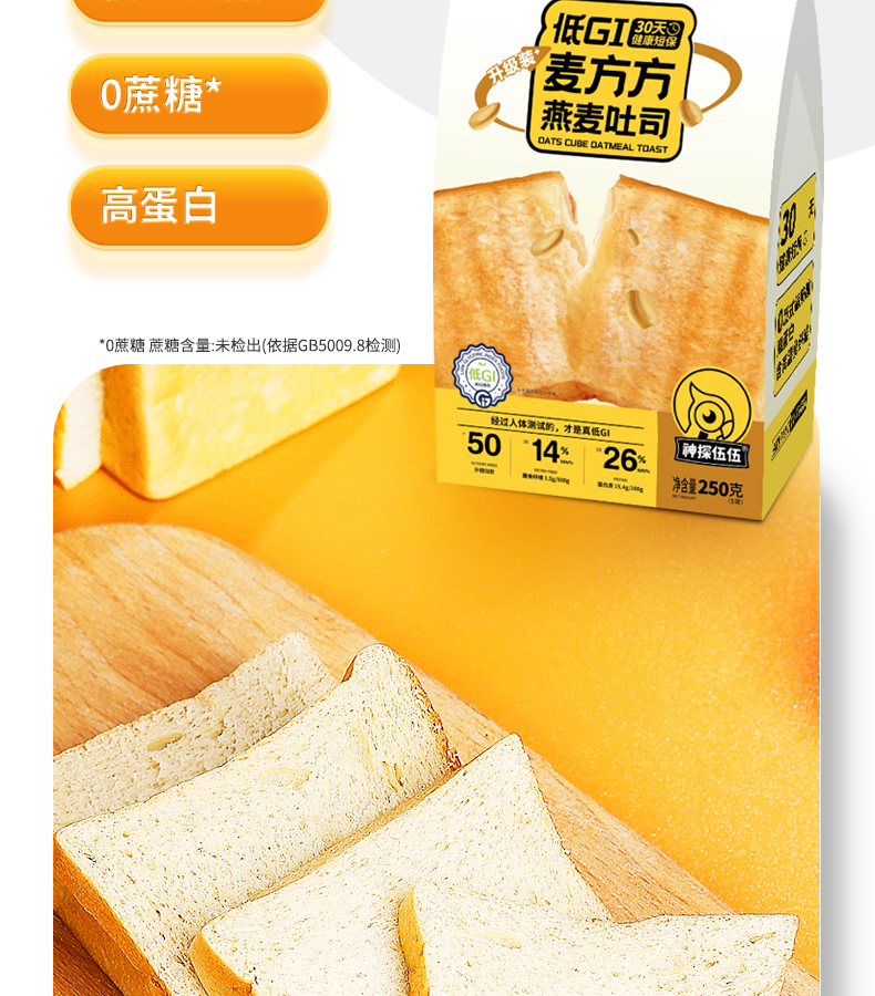 神探伍伍低GI麦方方燕麦吐司250g