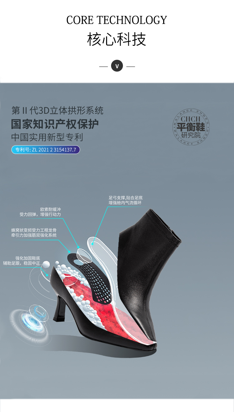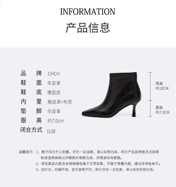 CHCH平衡鞋2024秋冬新品舒适羊皮拉链粗跟时尚女靴短靴CO2B6011