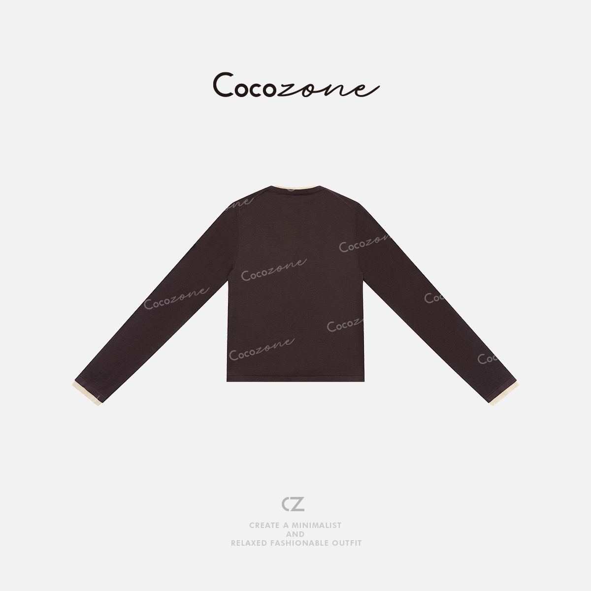 COCO ZONE 刘 一一 “扣子打底”半开领基础款长袖T恤 CD1A1783