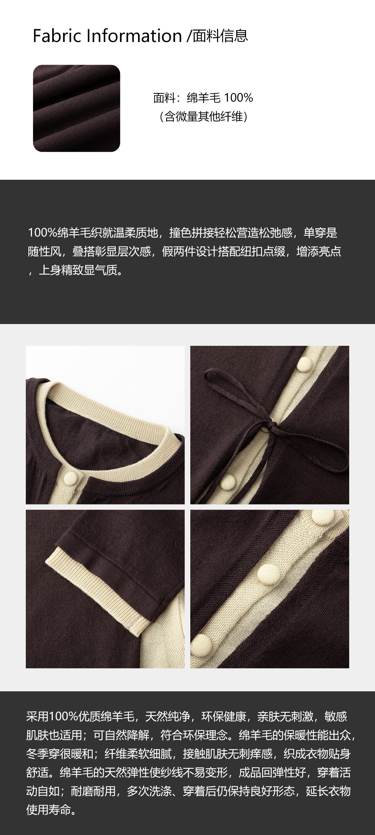 COCO ZONE 刘一一 【100绵羊毛】文艺风假两件毛织上衣CD1A1019