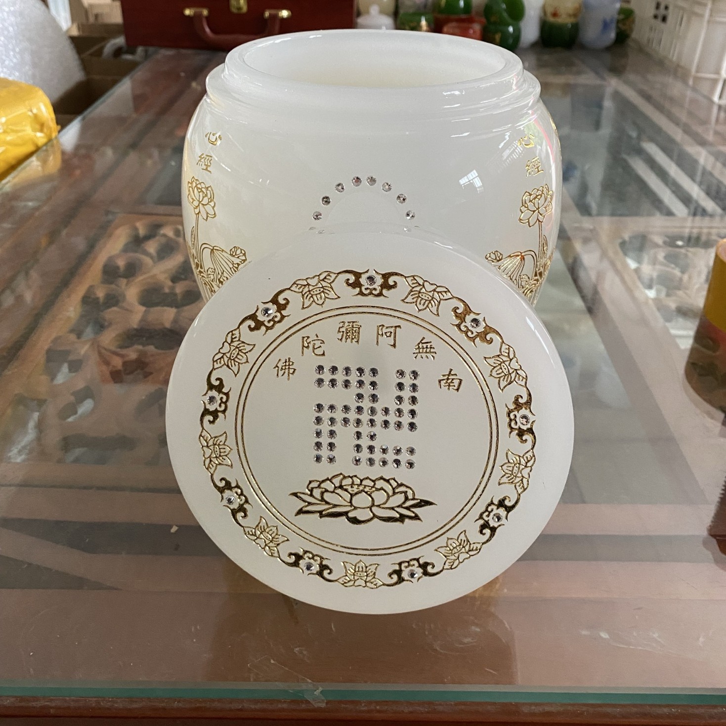琉璃骨灰坛莲花心经骨灰桶骨灰盒18*20cm