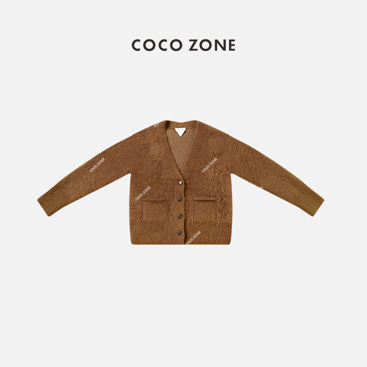 COCO ZONE 美拉德新款秋冬长袖V领单排扣打底衫上衣 23C19665