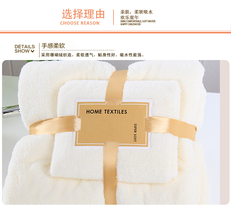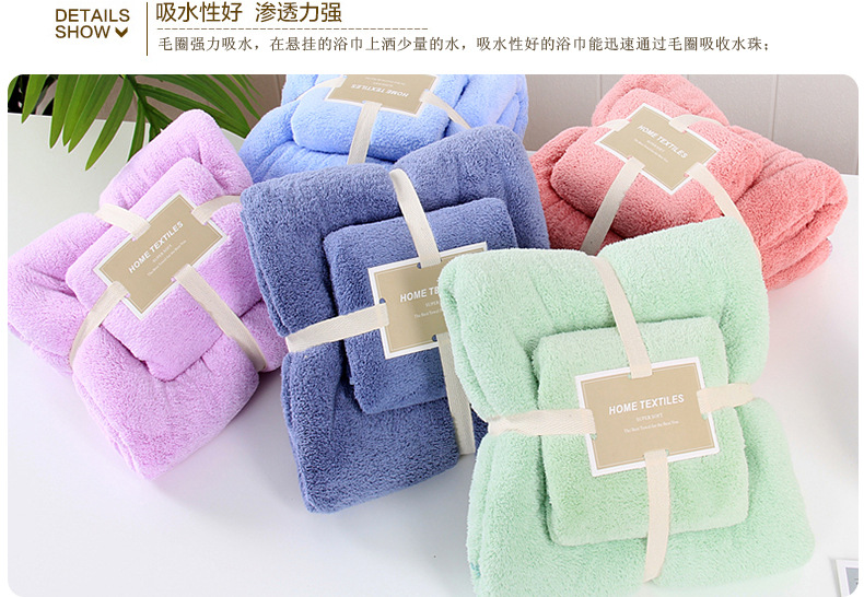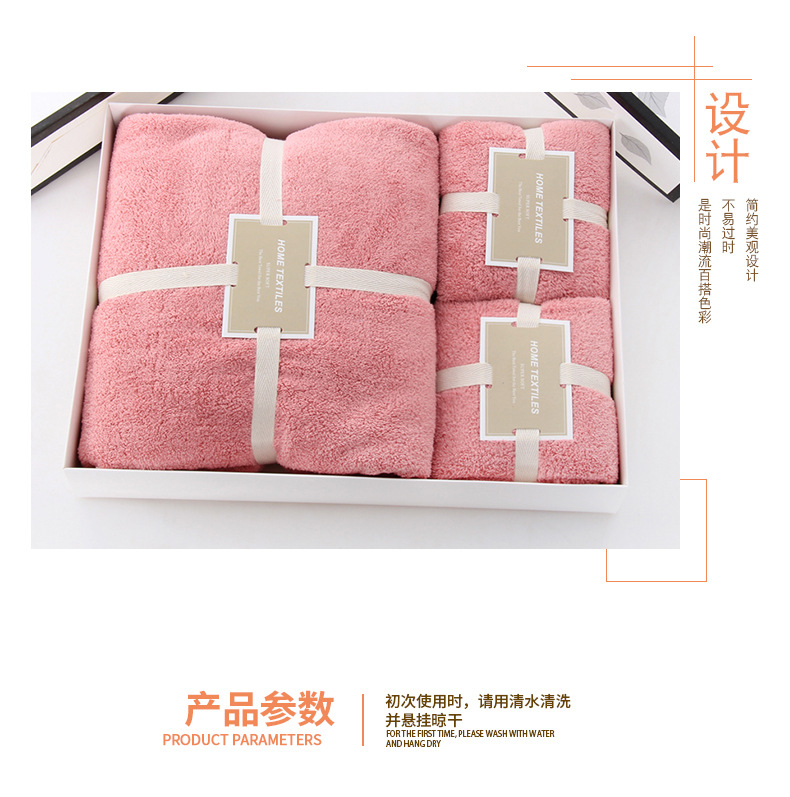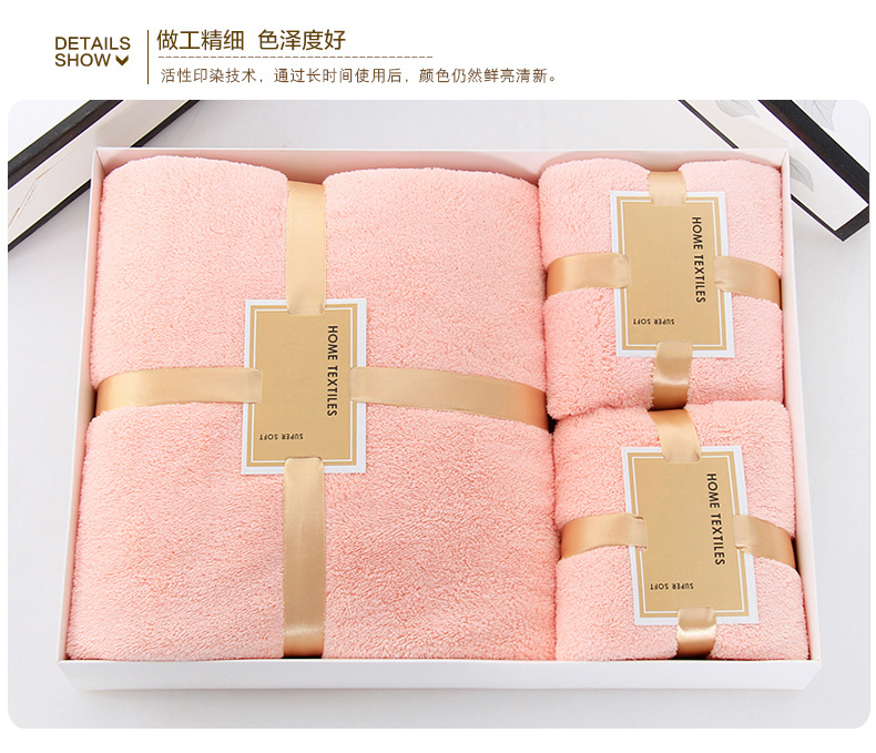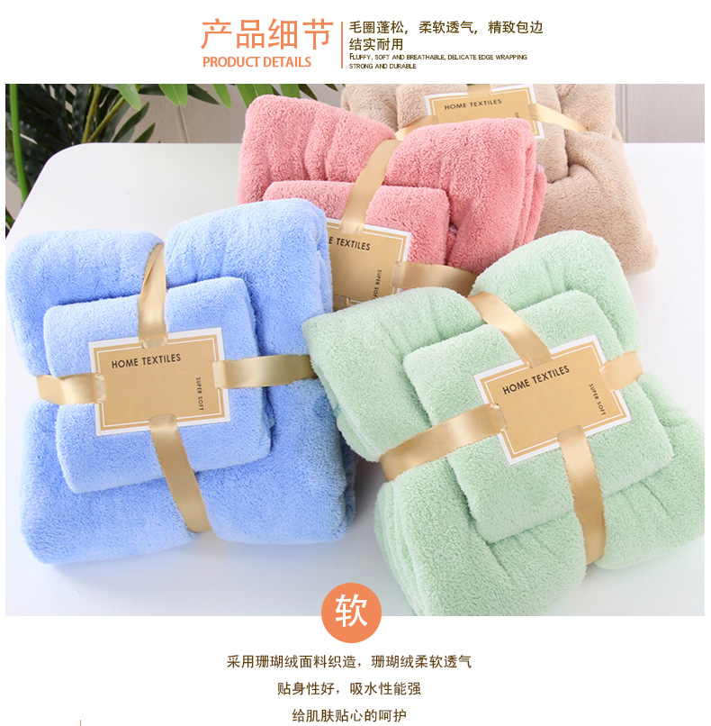 【鼎】菠萝格吸水高密珊瑚绒洗脸巾浴巾套装