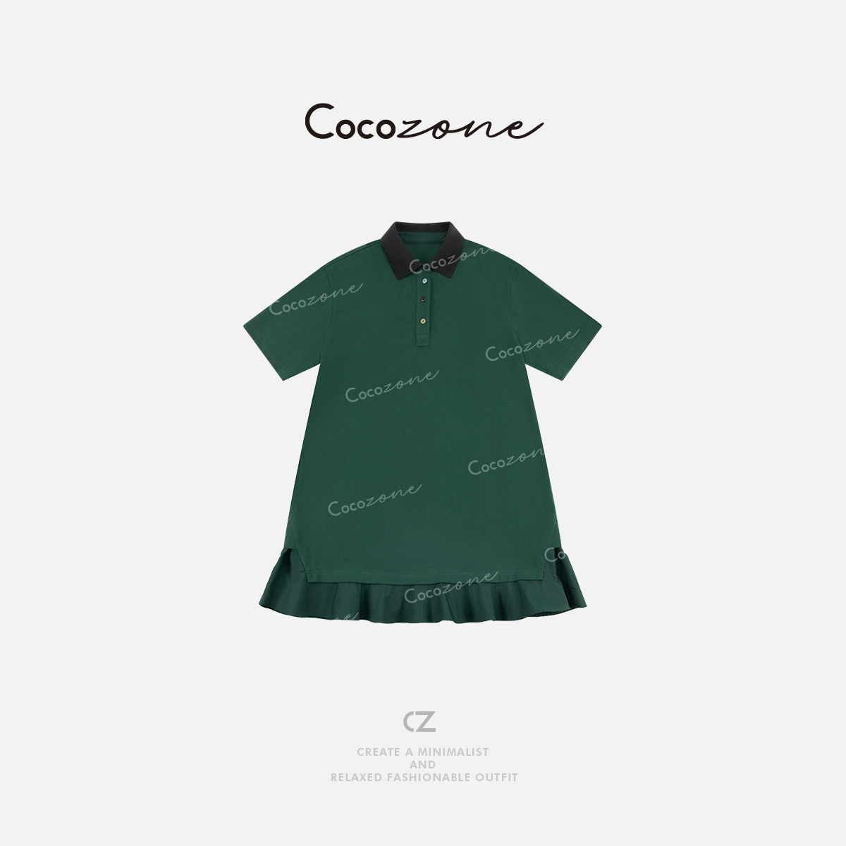 COCO ZONE 刘一一 【100棉】复古POLO领简约连衣裙CD1A0797