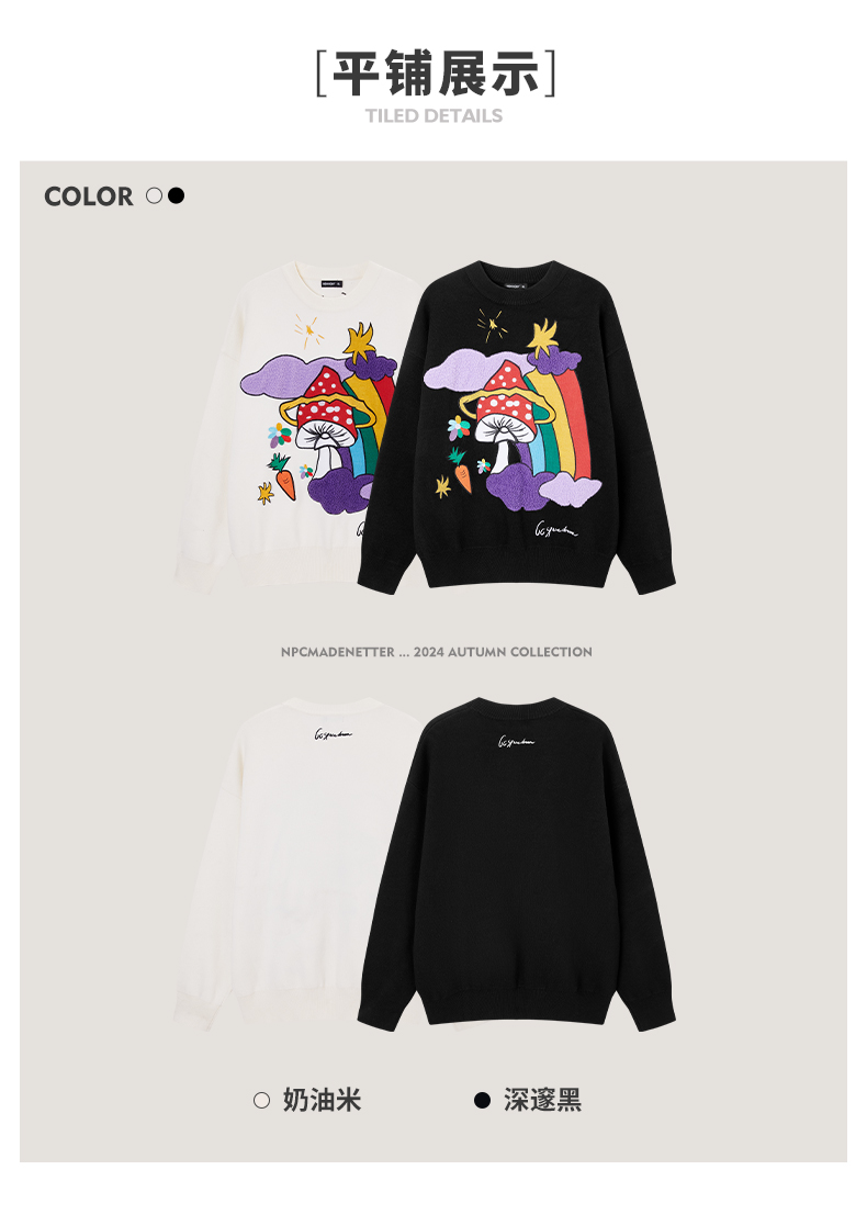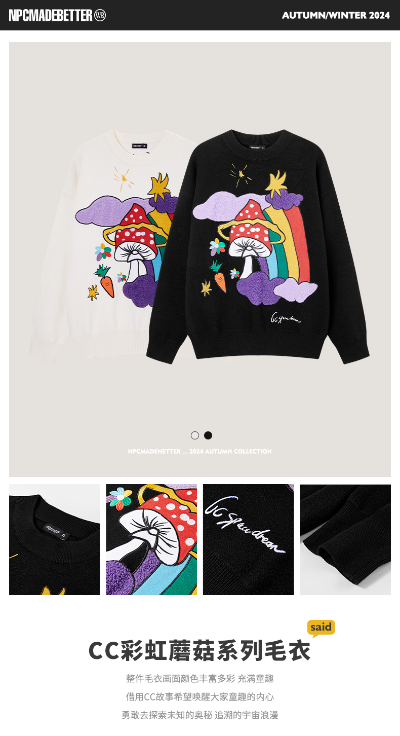 NPC潮牌CC系列彩虹蘑菇绣花可机洗毛衣男趣味休闲宽松CC48SW07