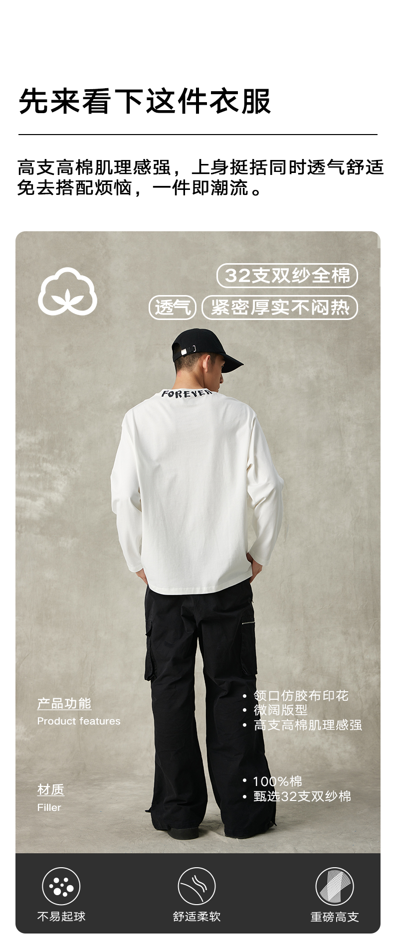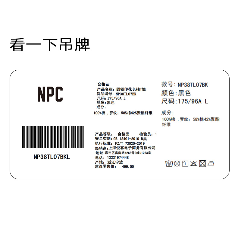 NPC潮牌领口印花圆领32支全棉卫衣舒适套头长袖秋冬上衣NP38TL07