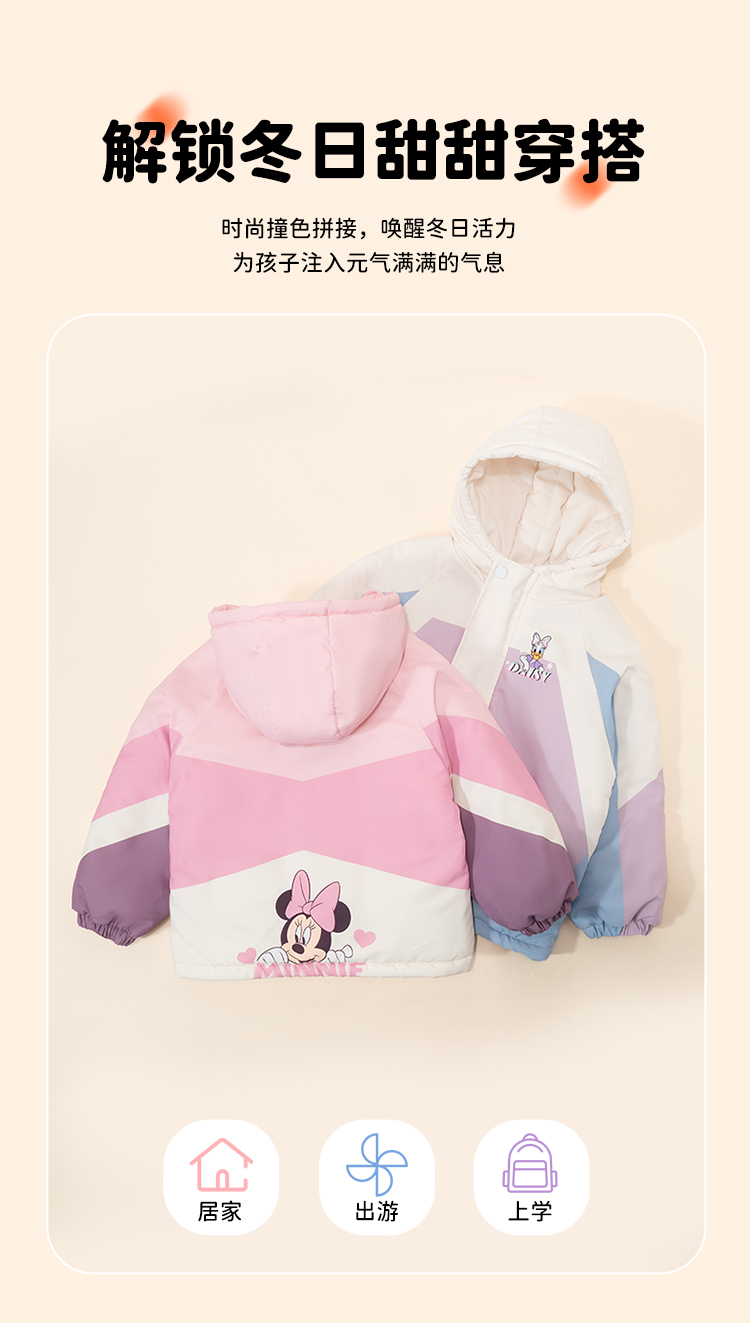 迪士尼女童夹棉外套棉服连帽外套ZD4DS017
