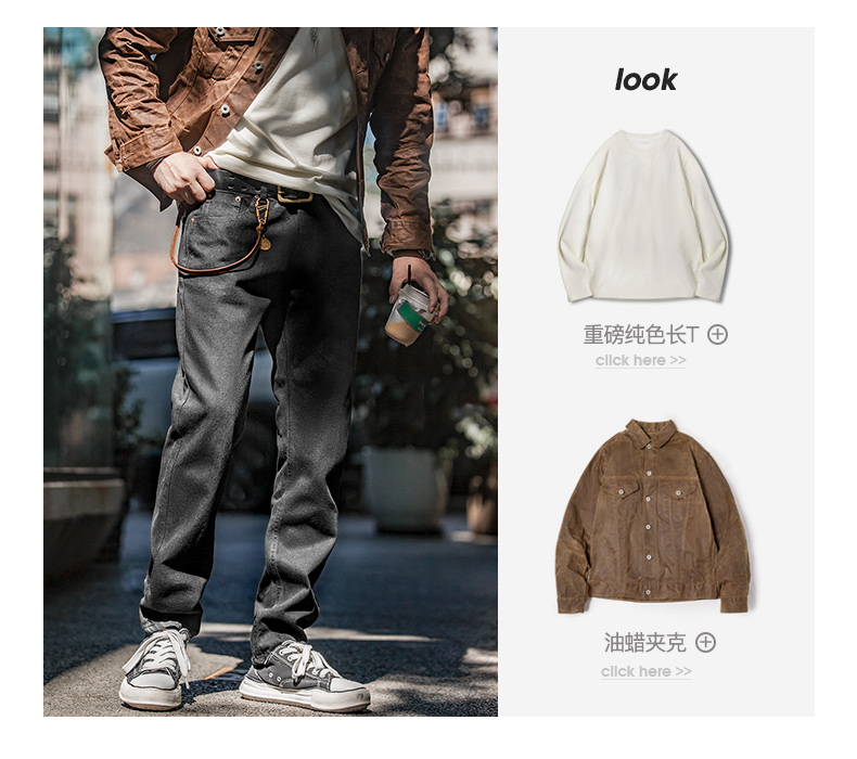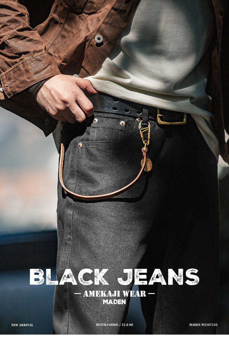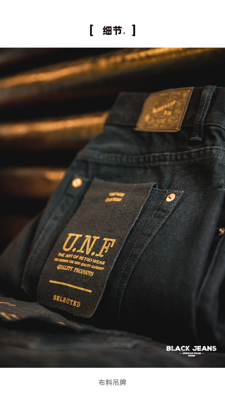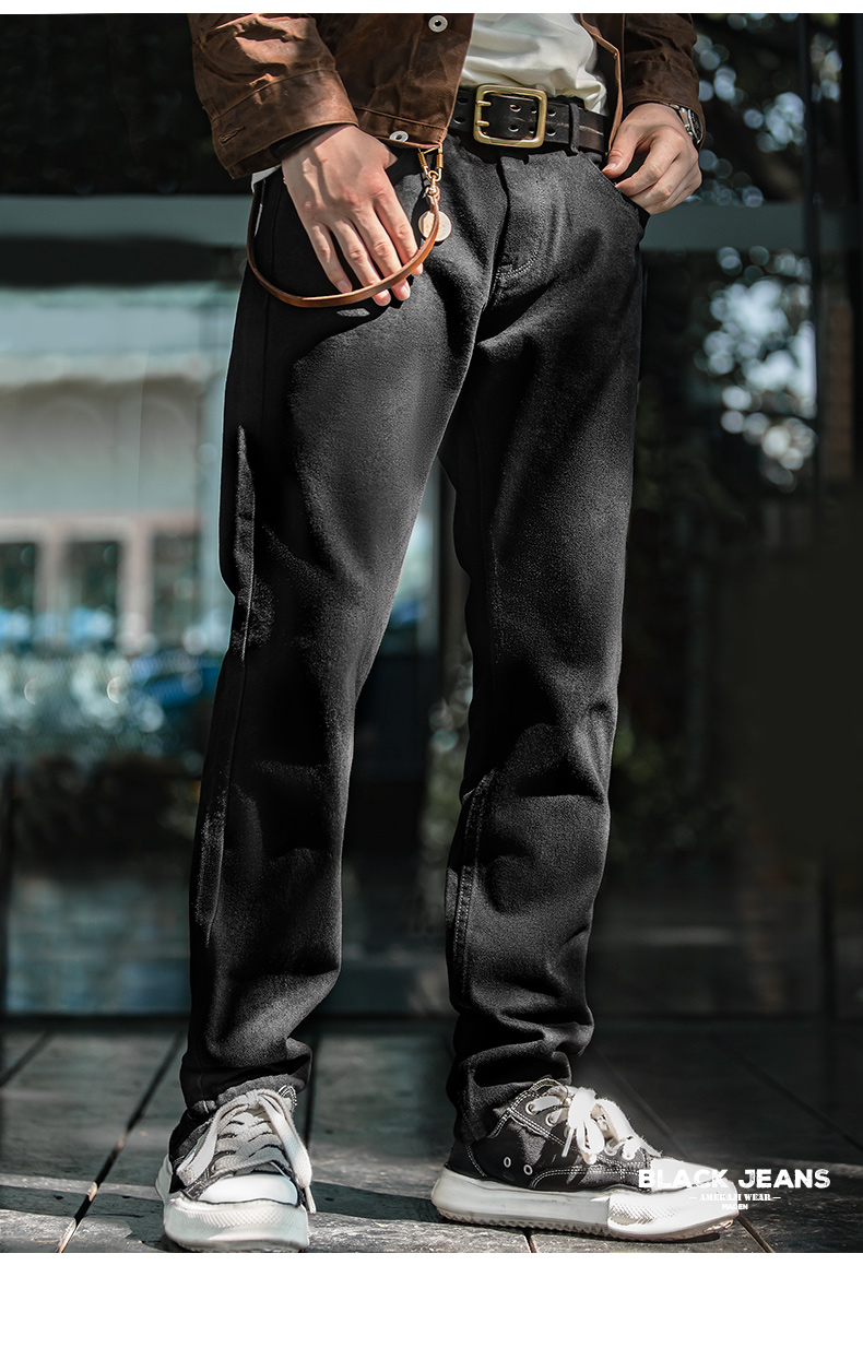 工装优选 美式复古纯黑色中腰牛仔裤水洗显瘦硬汉直筒丹宁长裤男秋
