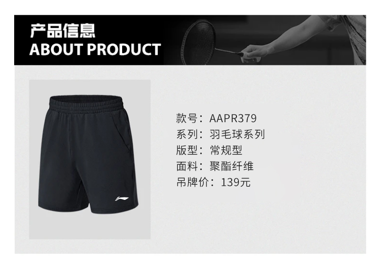 李宁 羽毛球服 男女同款 运动针织短裤 AAPR379