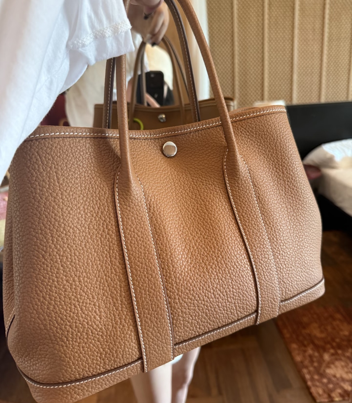 纯牛皮自然摔工艺,花园包包通勤王,超级出片的。