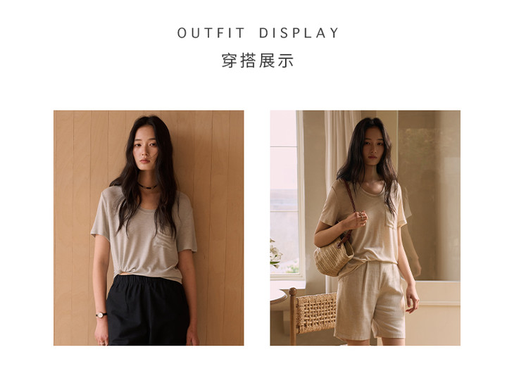 [屁侠推荐]SPLELED 醋酸亚麻口袋T恤 亚麻质感上衣 慵懒感多色打底衫 9981