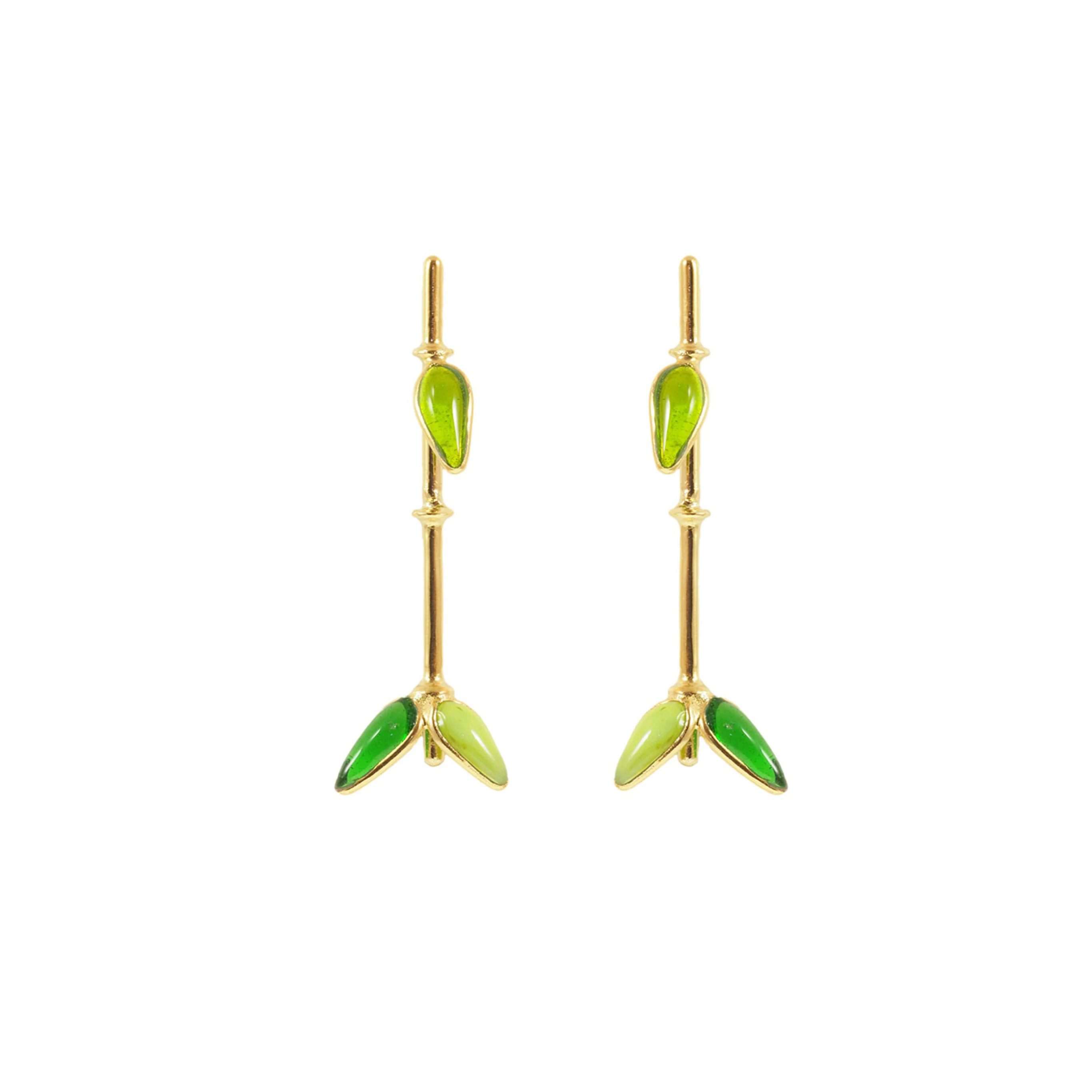 订购6个月到|Gripoix Paris-Bamboo-竹叶 长款 耳环[法国设计师]