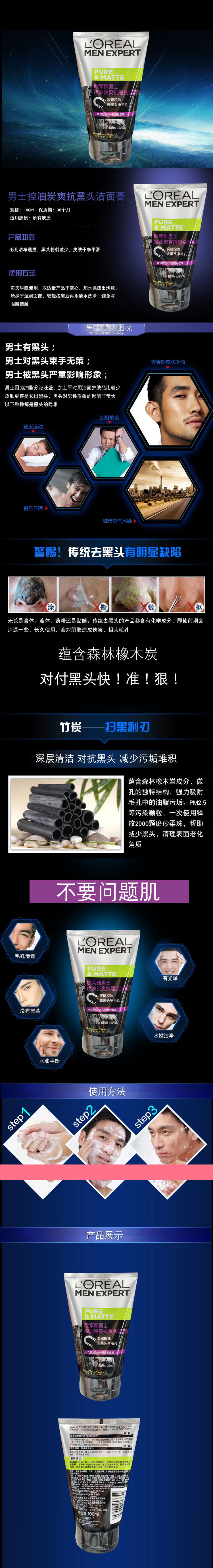 欧莱雅男士控油炭爽抗黑头洁面膏(100ml)【30124806】