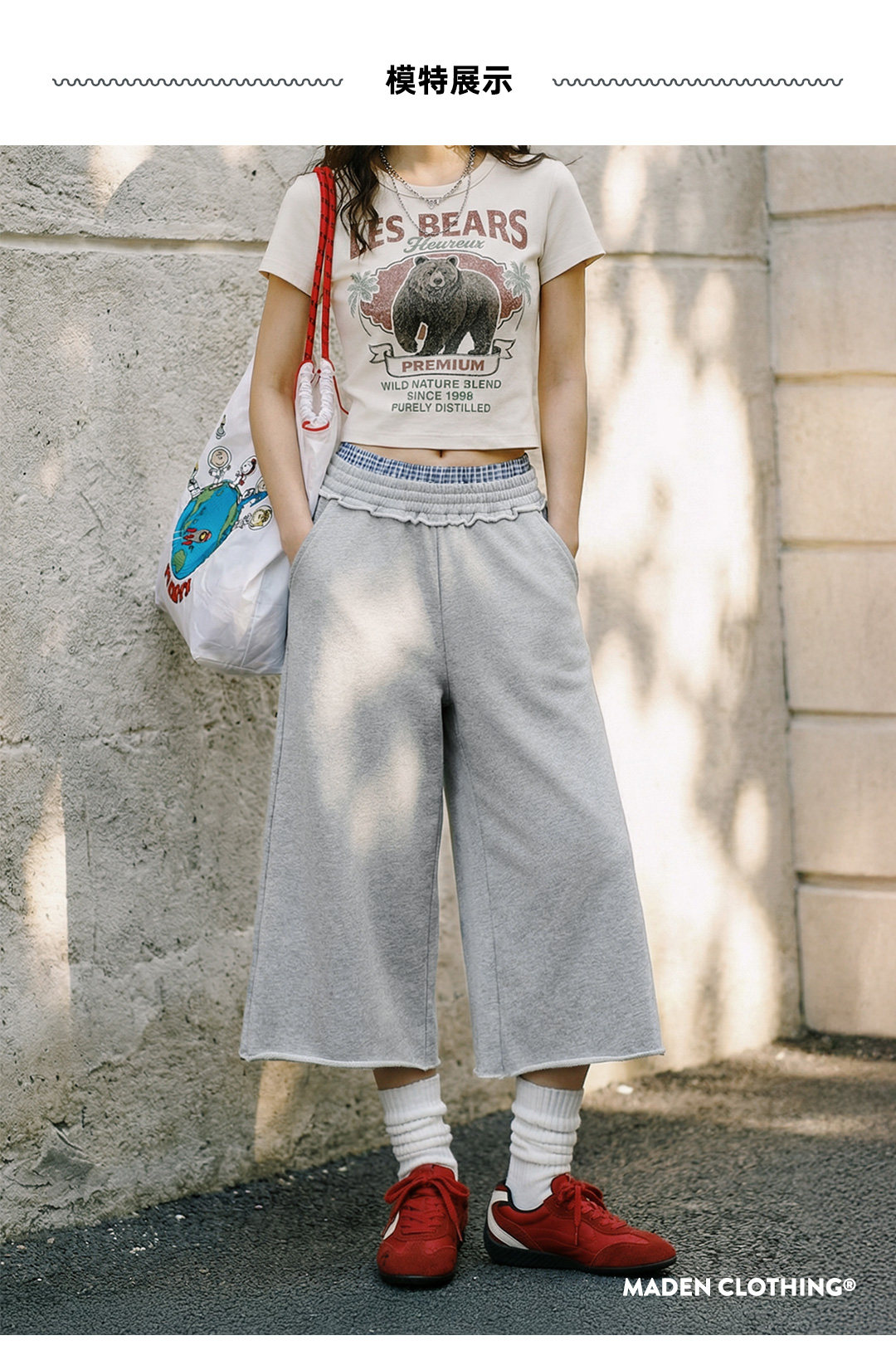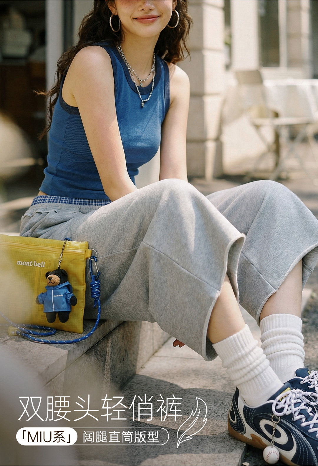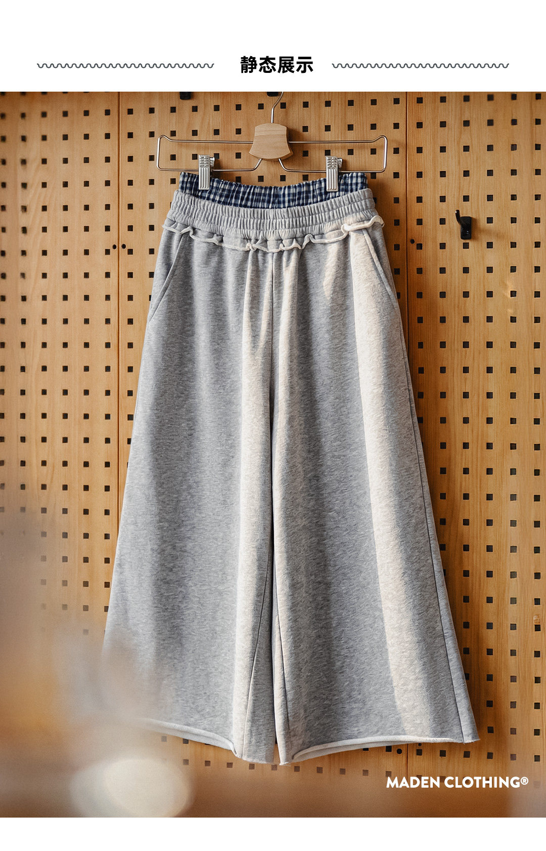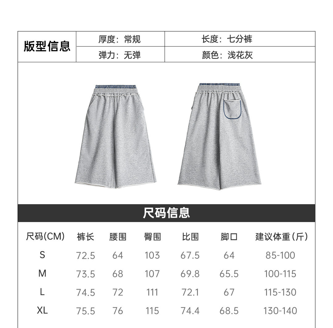 马登美式灰色低双腰头直筒阔腿七分裤中卫裤休闲木耳边裤子女士夏