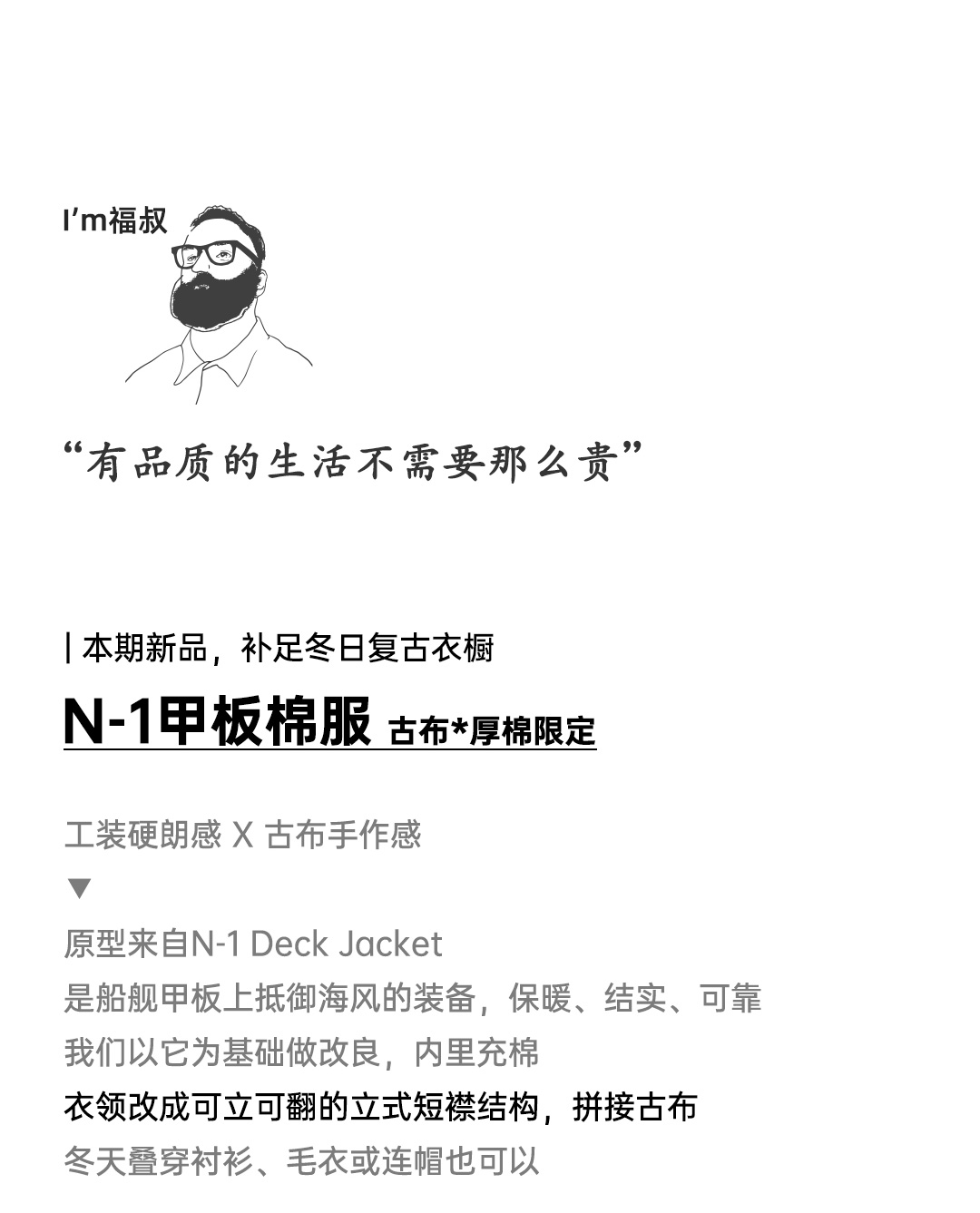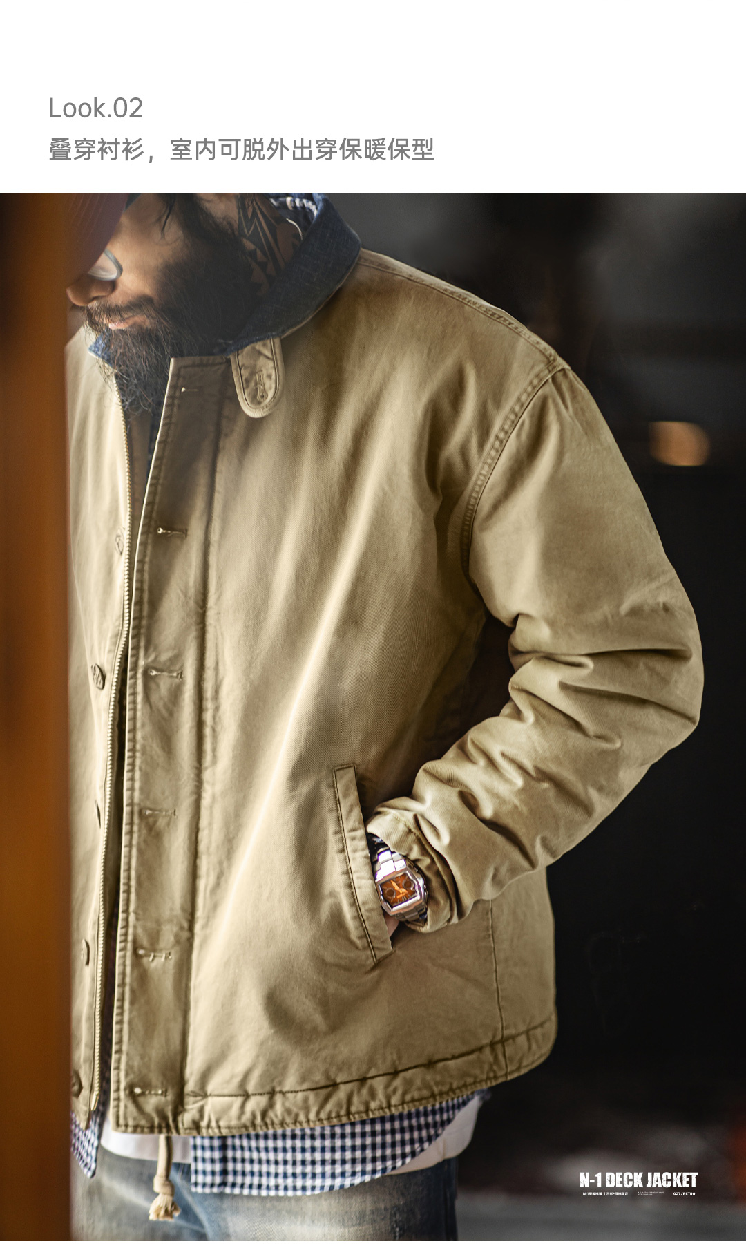 马登工装美式复古N1甲板服加厚保暖棉服立领短款夹克外套男款秋冬