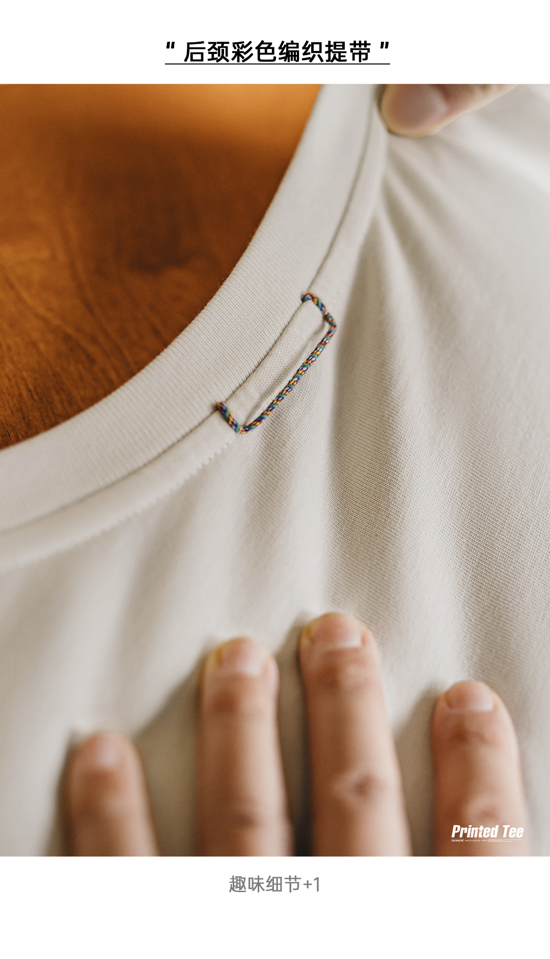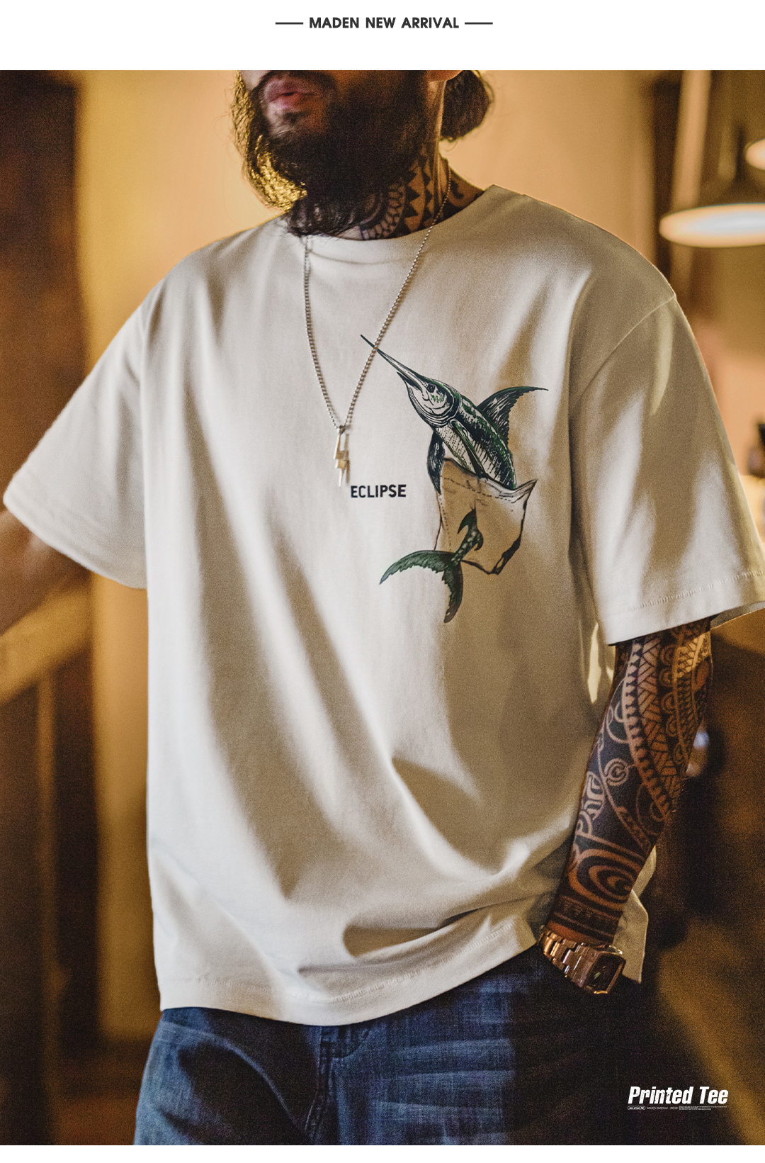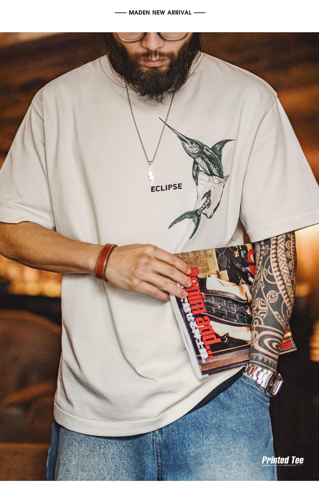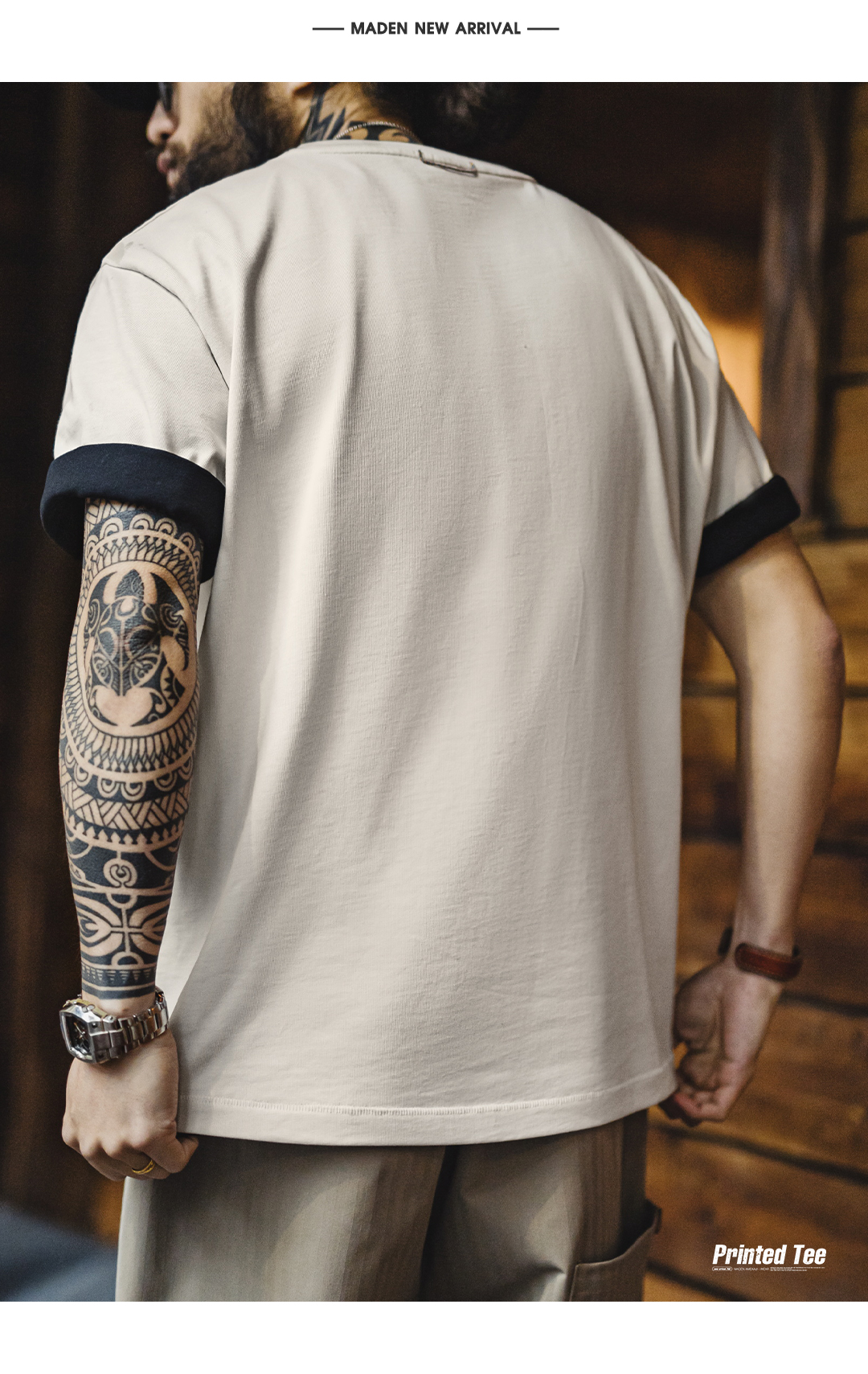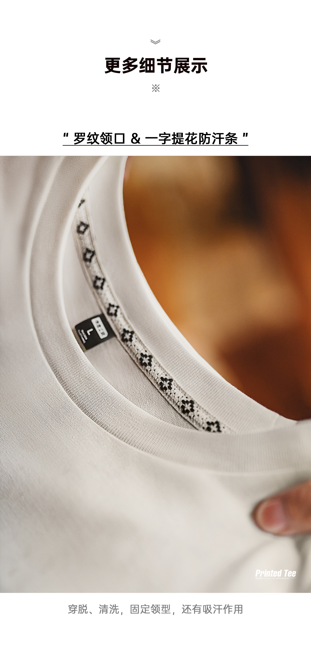 马登工装美式白色印花T恤纯棉休闲创意重磅宽松螺纹领口短袖男夏