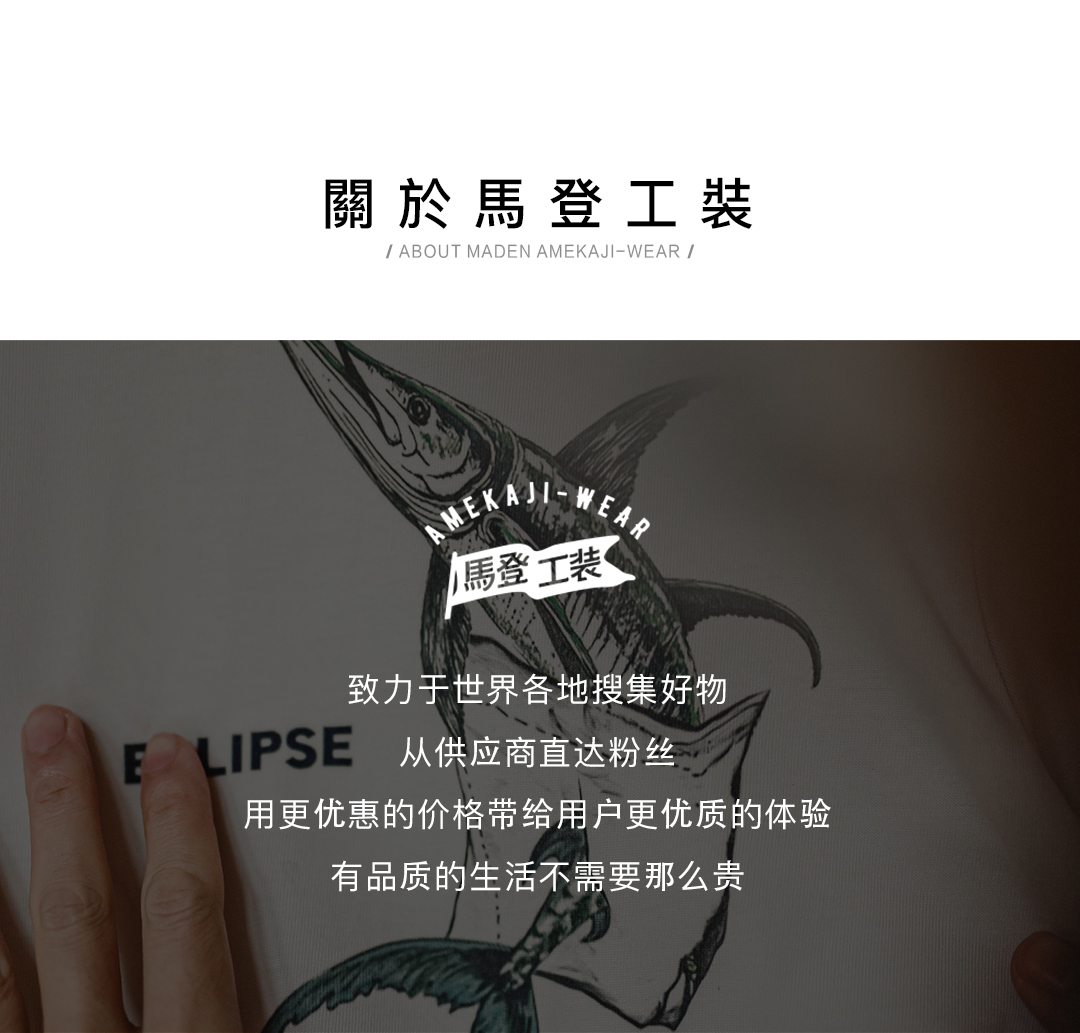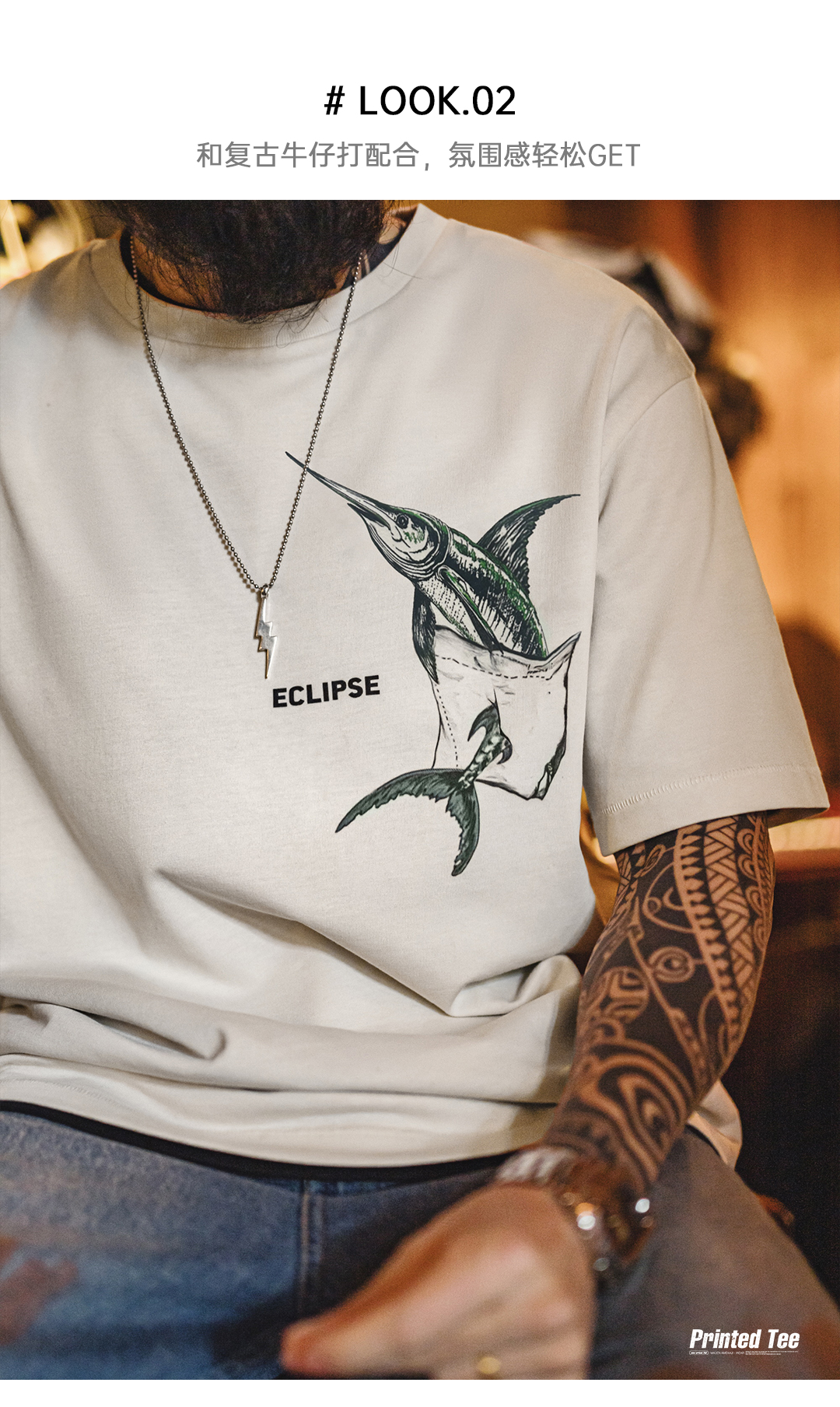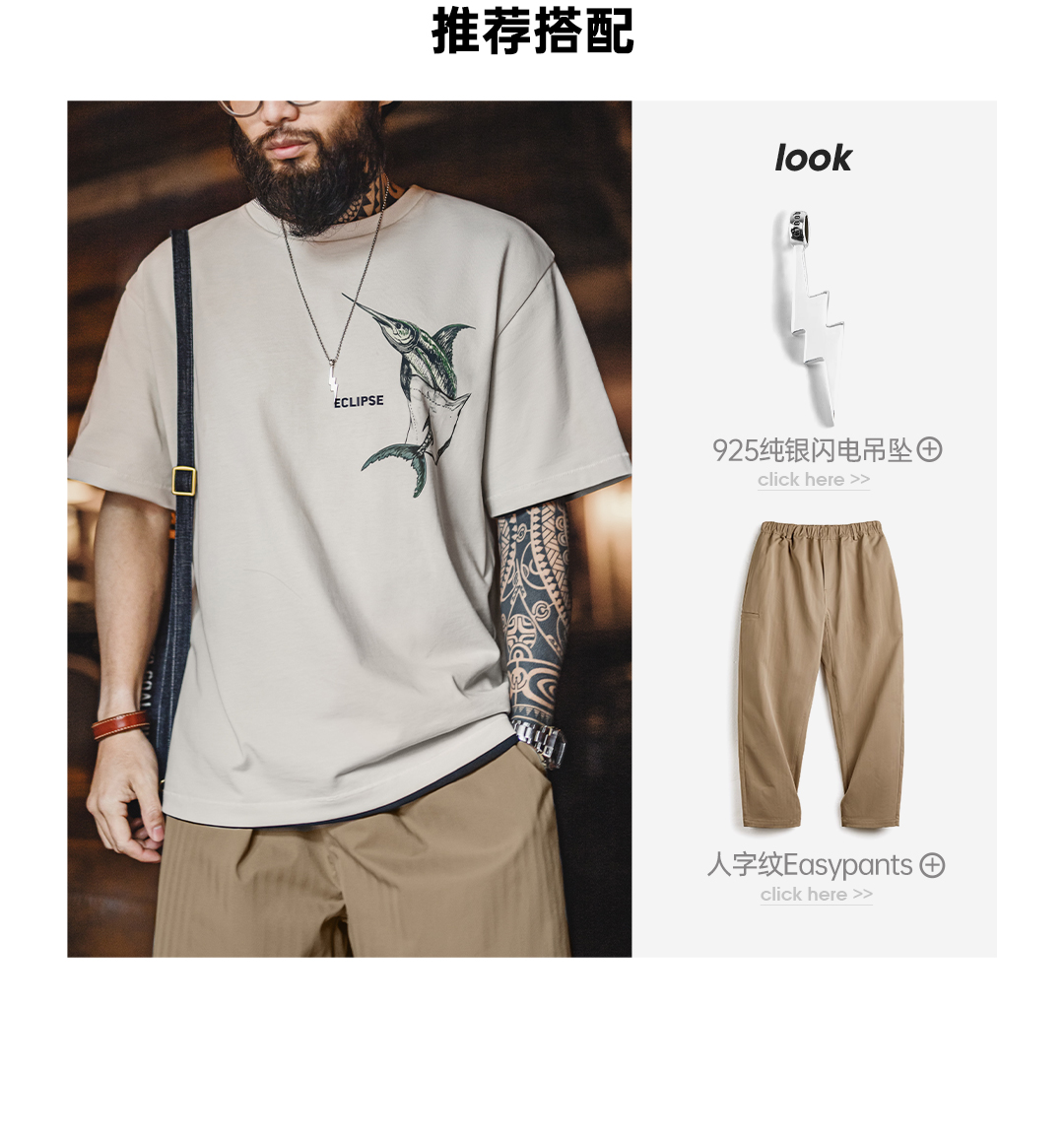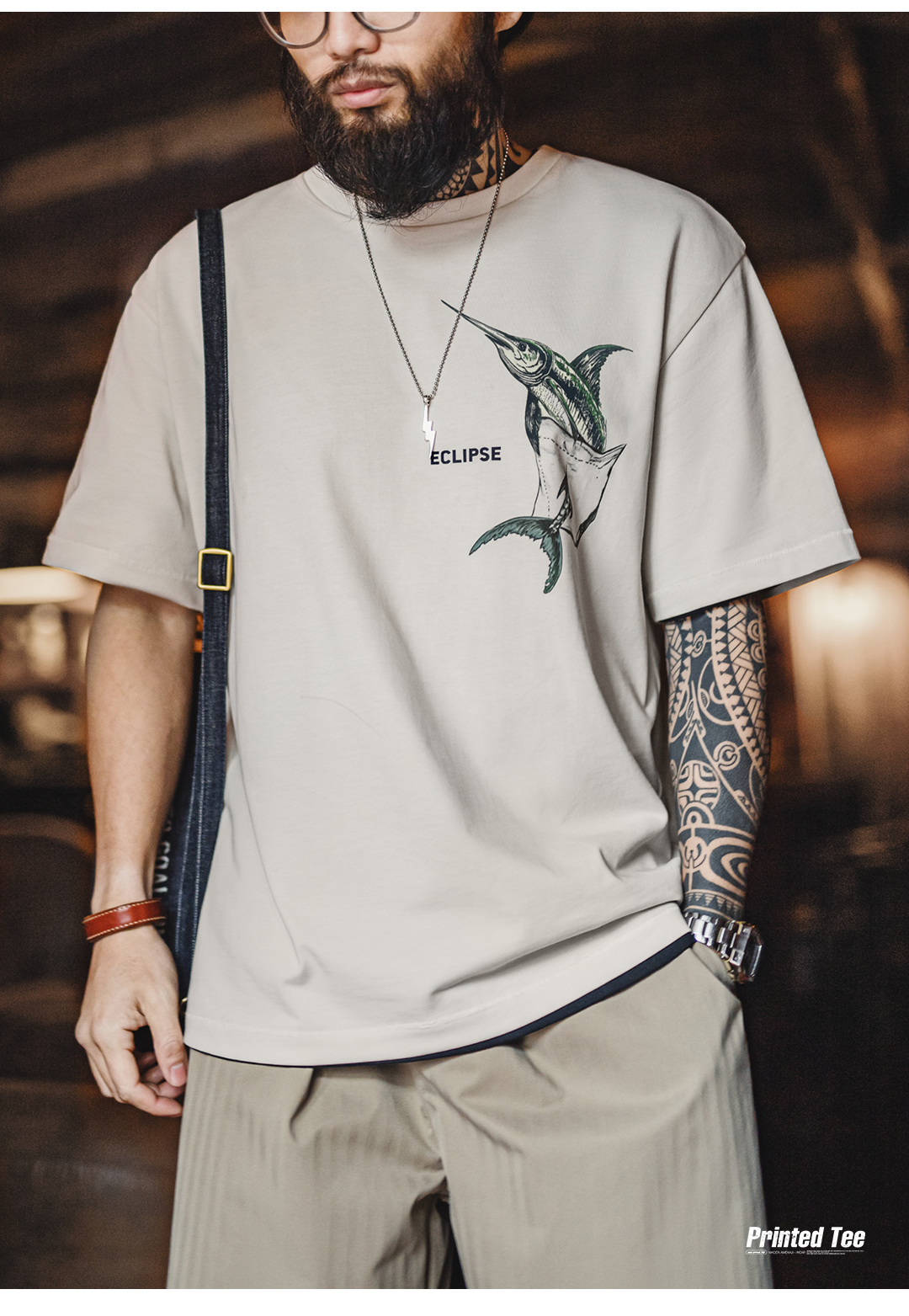 马登工装美式白色印花T恤纯棉休闲创意重磅宽松螺纹领口短袖男夏