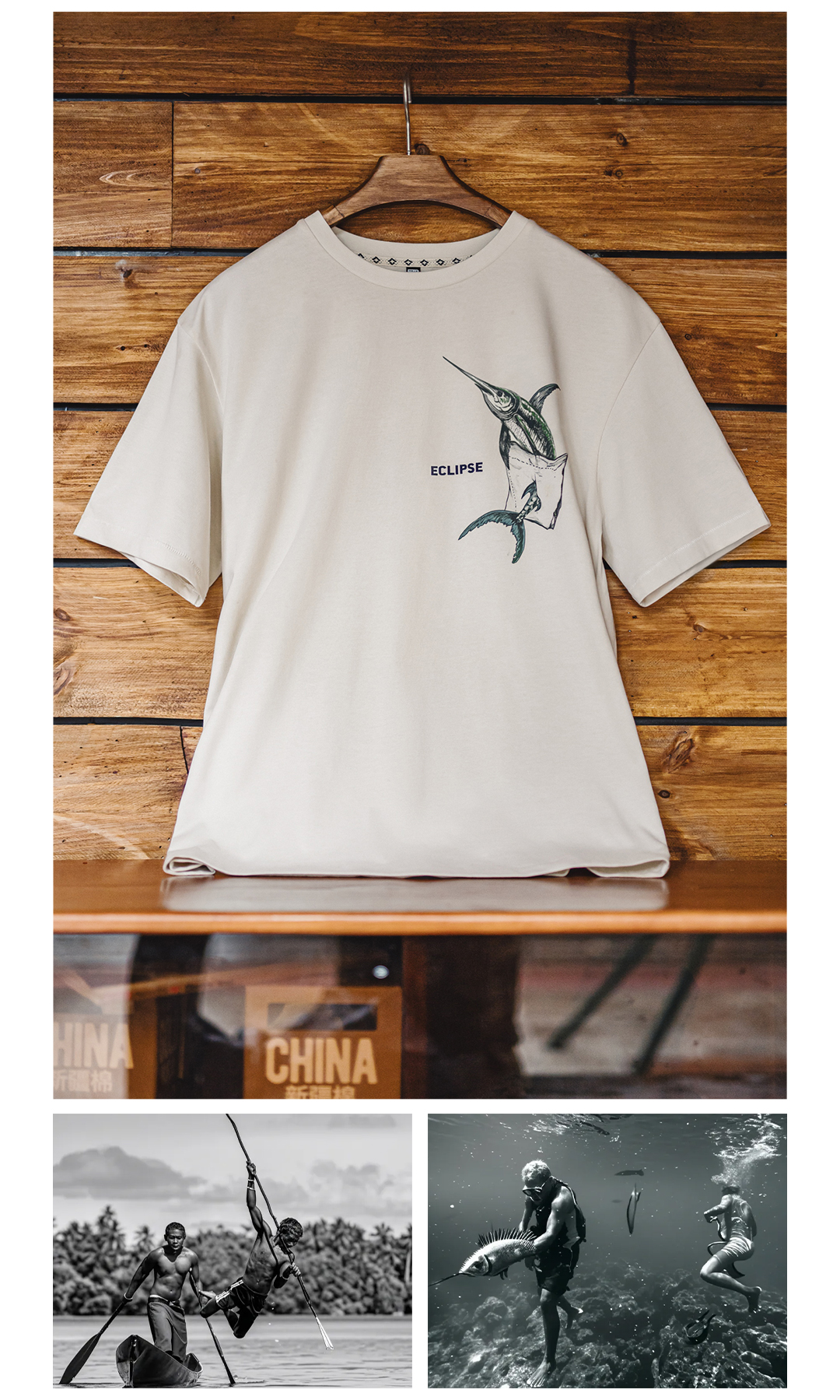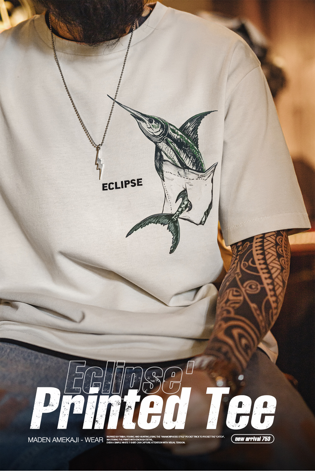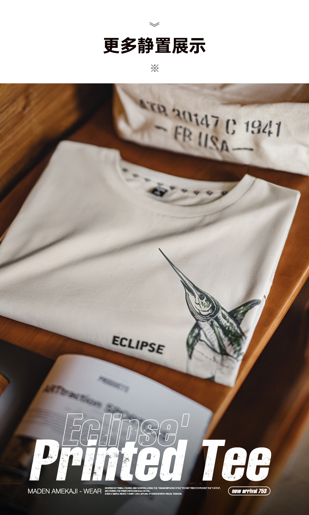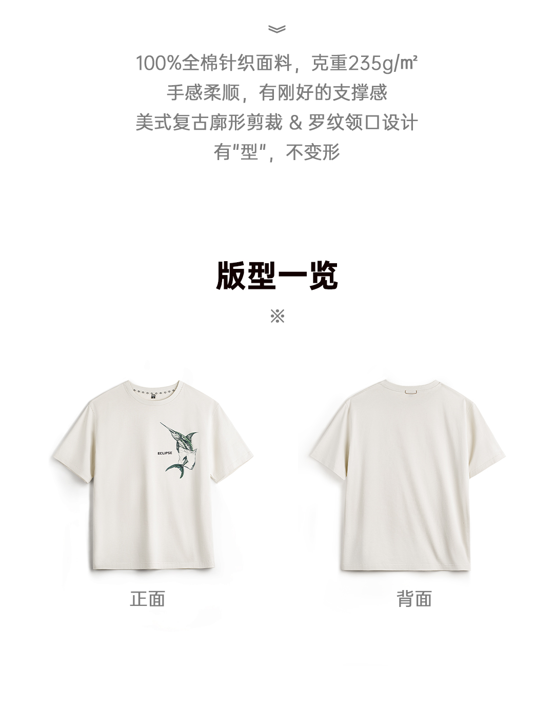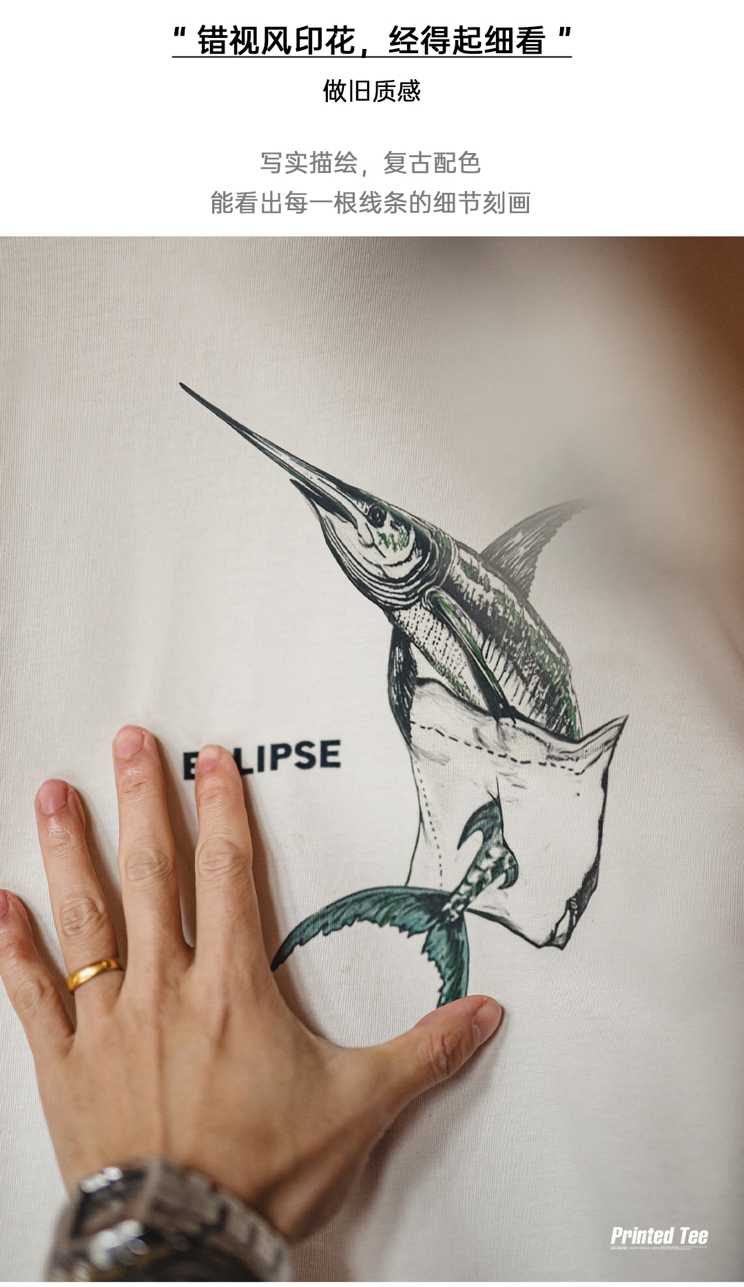 马登工装美式白色印花T恤纯棉休闲创意重磅宽松螺纹领口短袖男夏