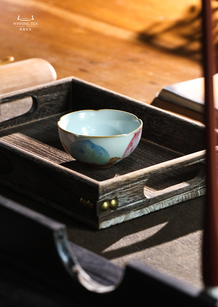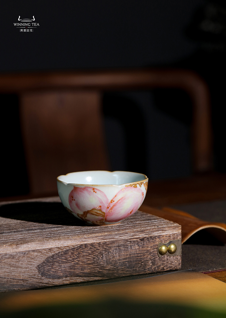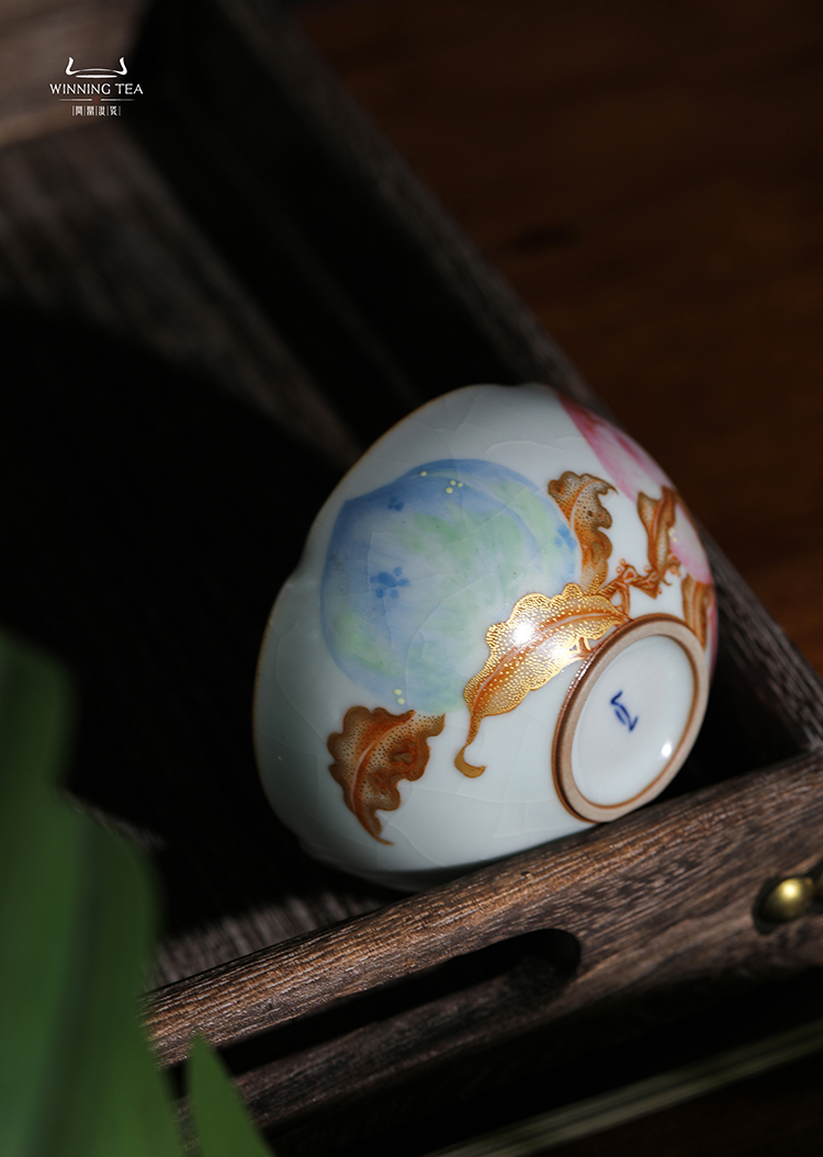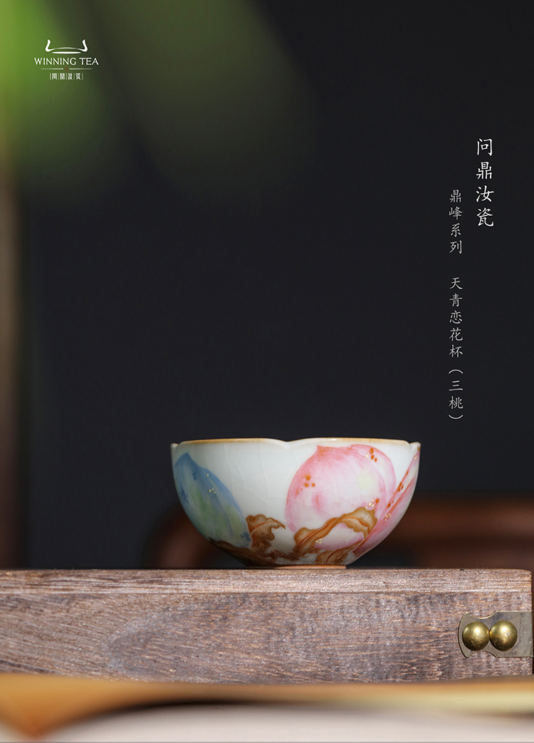 问鼎汝瓷鼎峰系列天青恋花杯(三桃)(缺货)