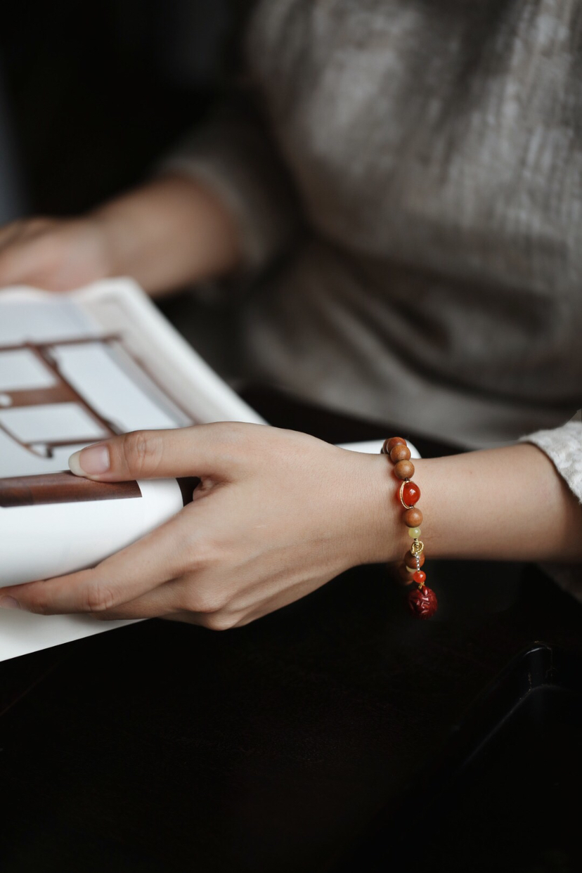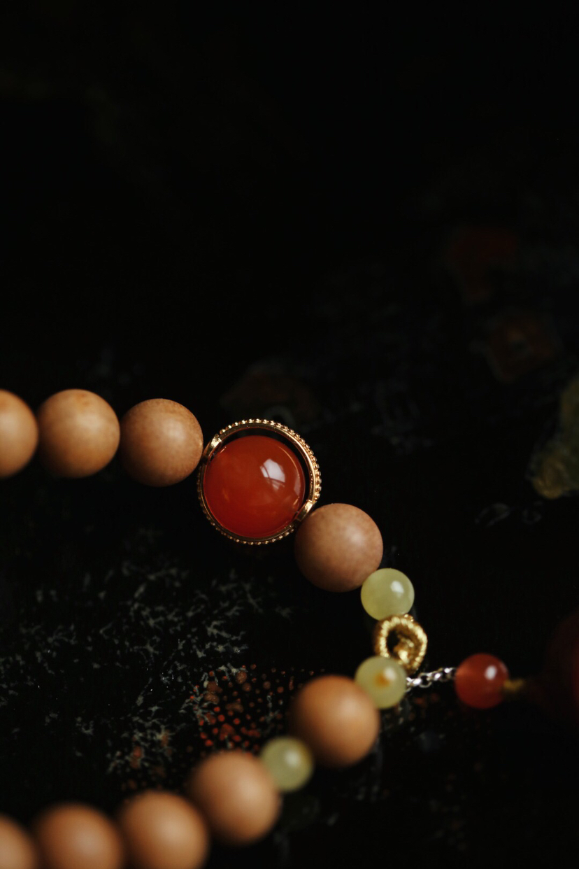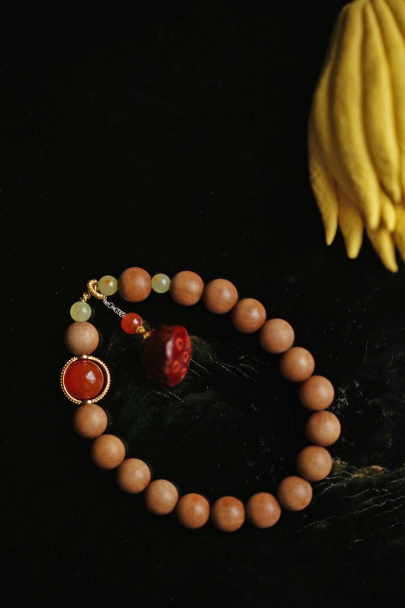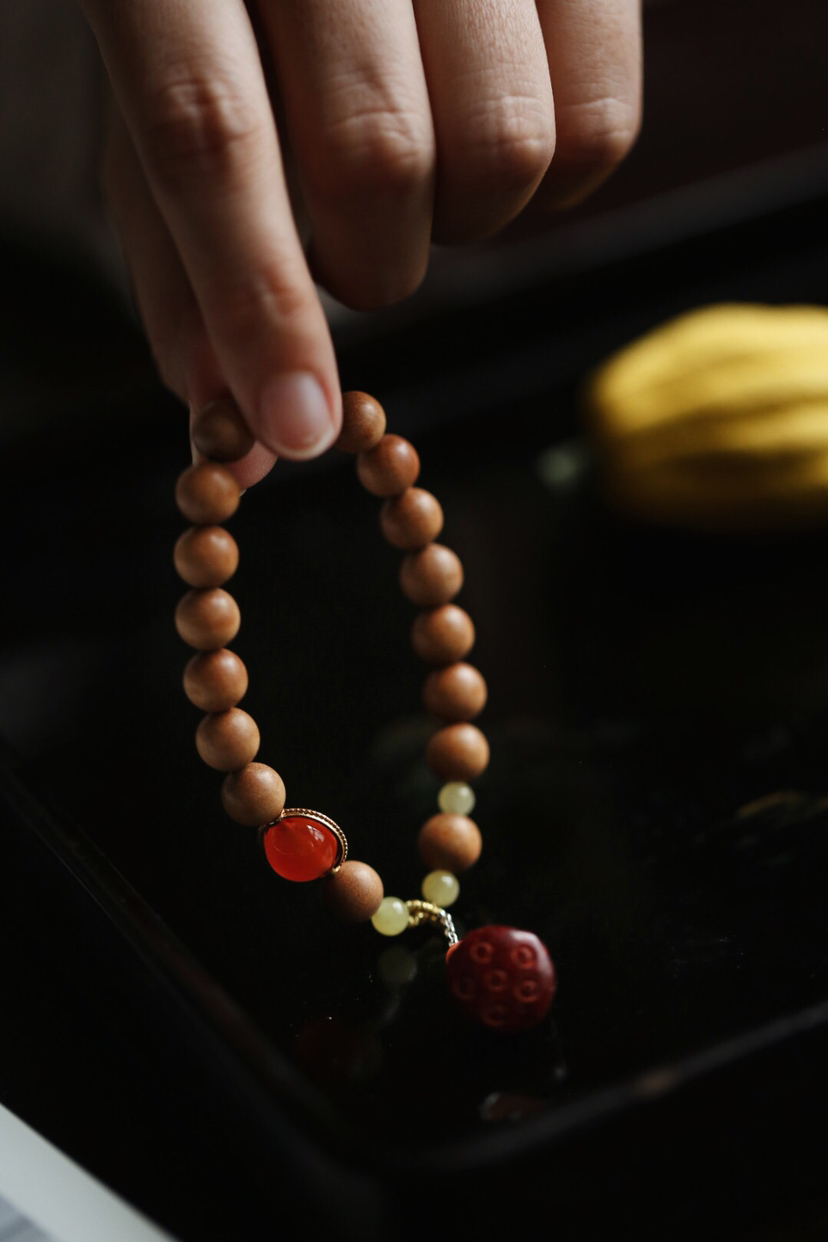 宝贝精选了非常优质的老山檀料为基础,料质细腻,纹理清晰,底色干净,舒适自然,香气清新,别有韵味。又搭配小叶紫檀莲蓬挂坠,如出水芙蓉,清新自然,迷人舒适。整体给人一种清丽典雅之韵,美观大气,韵味十足。小巧可爱,价格实惠,值得入手!