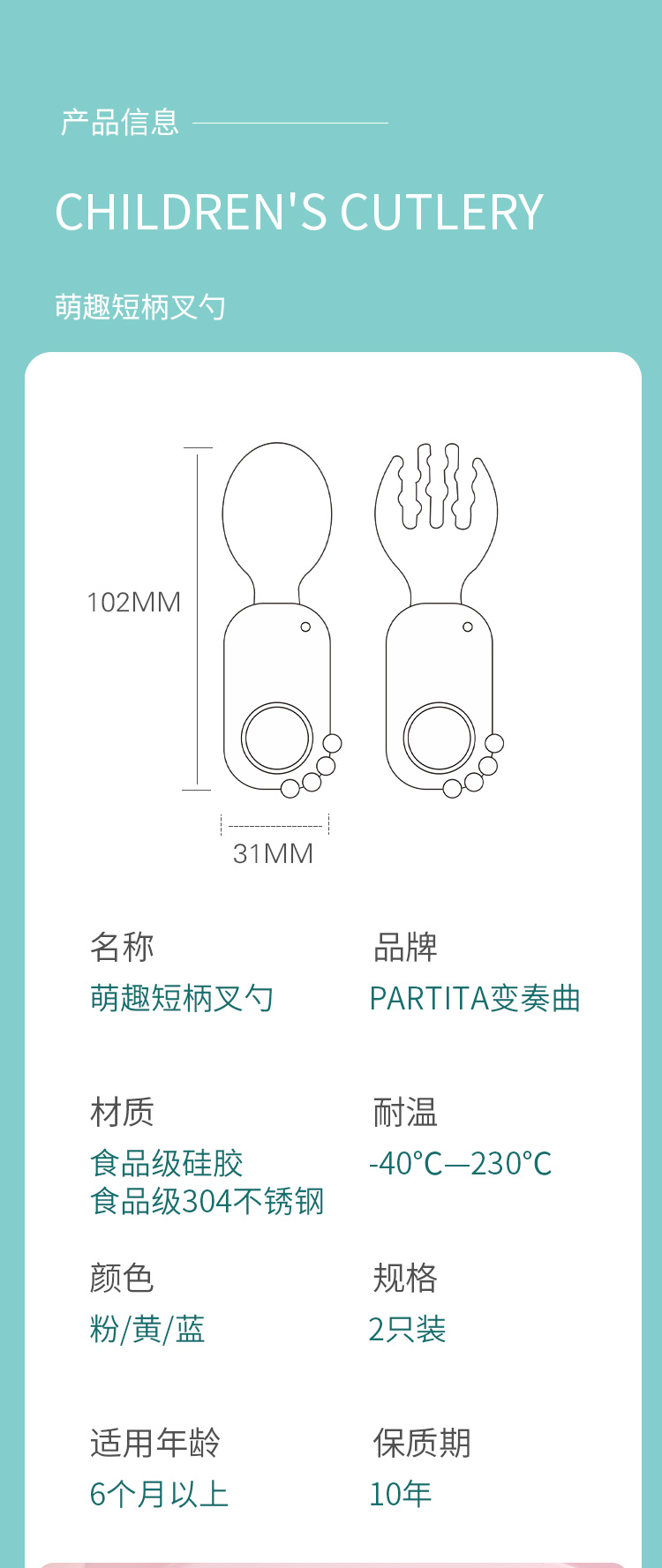 Partita 萌趣短柄叉勺两件套(带收纳盒)