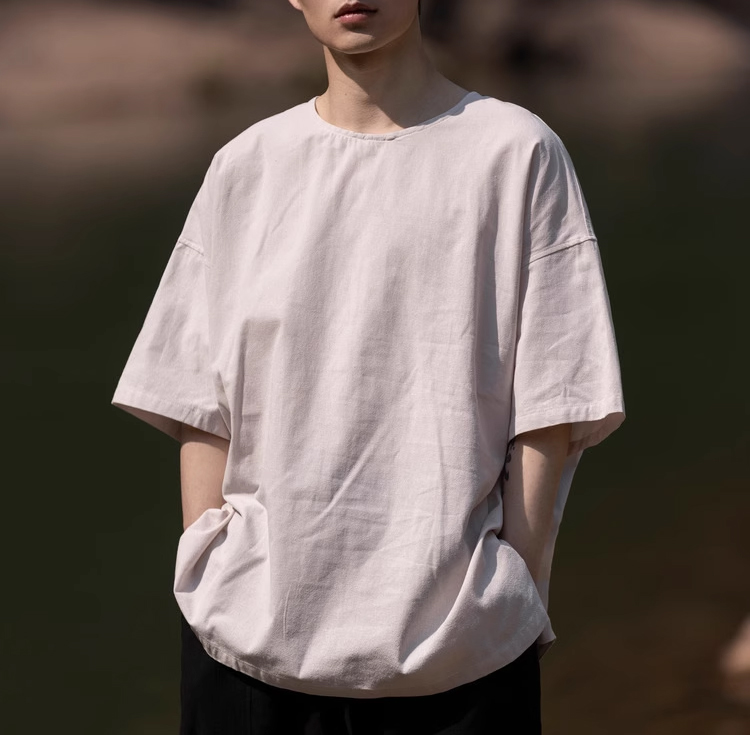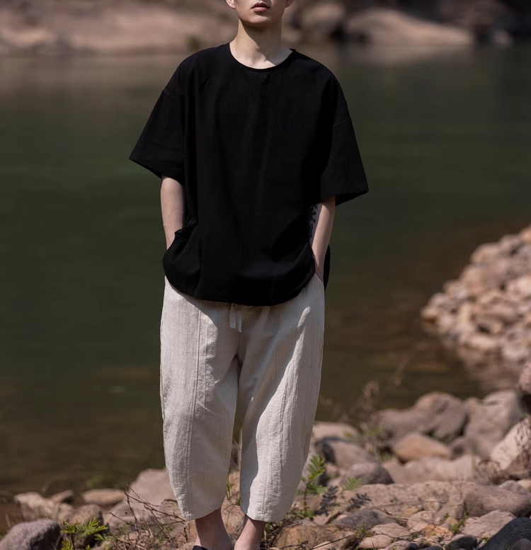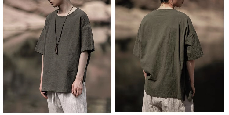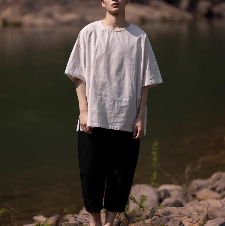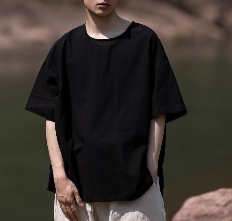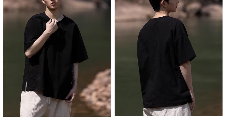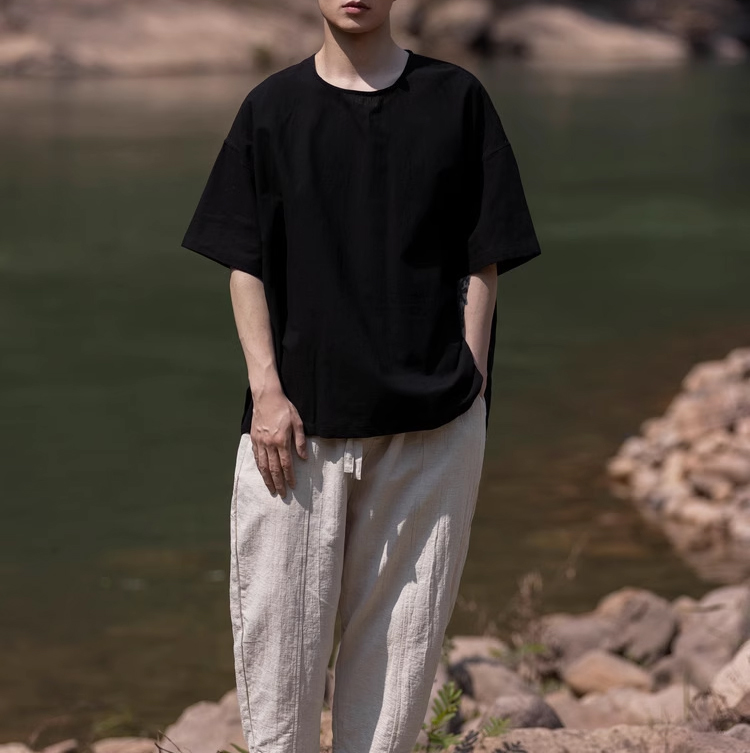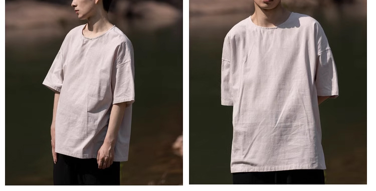 裁缝学苑MH03中国风亚麻套头圆领短袖棉麻t恤纸样男装复古打底衫样板