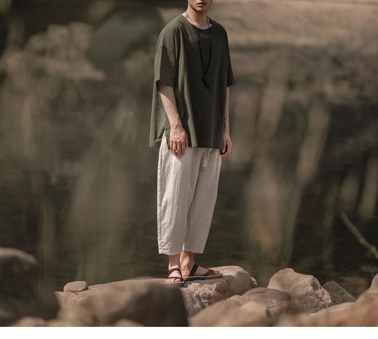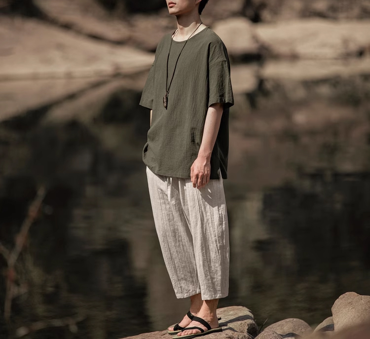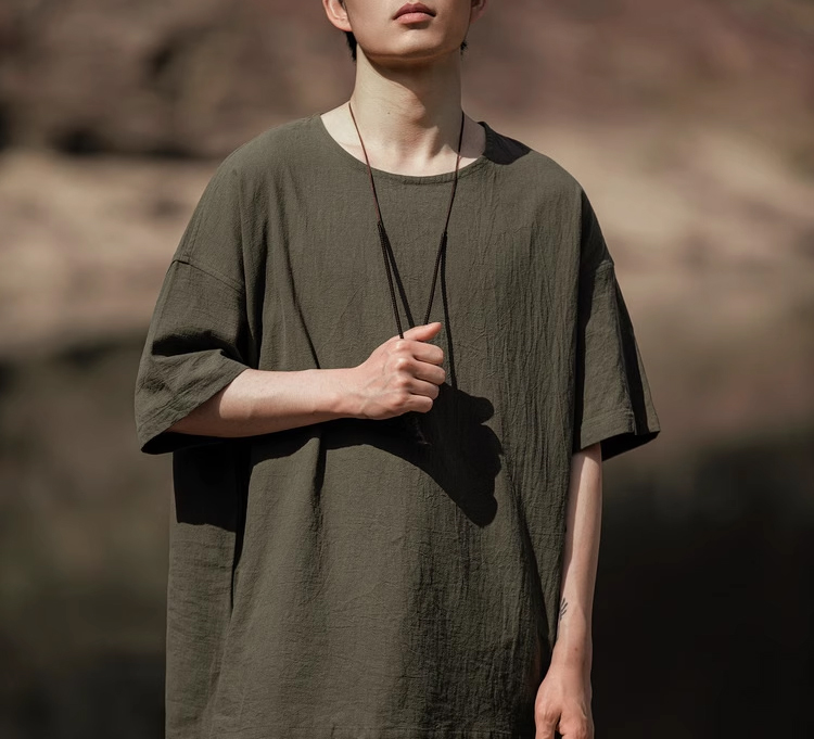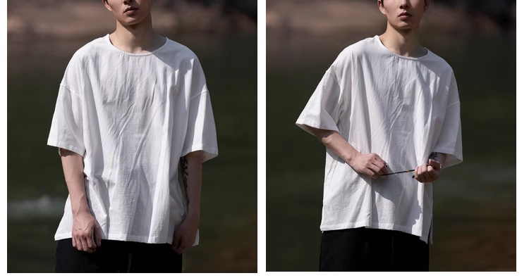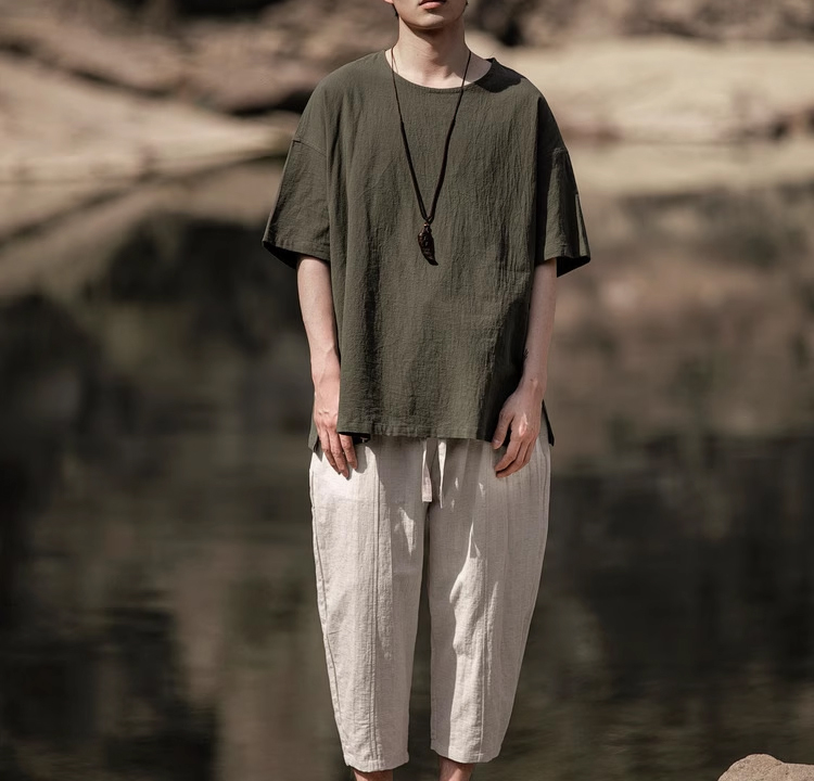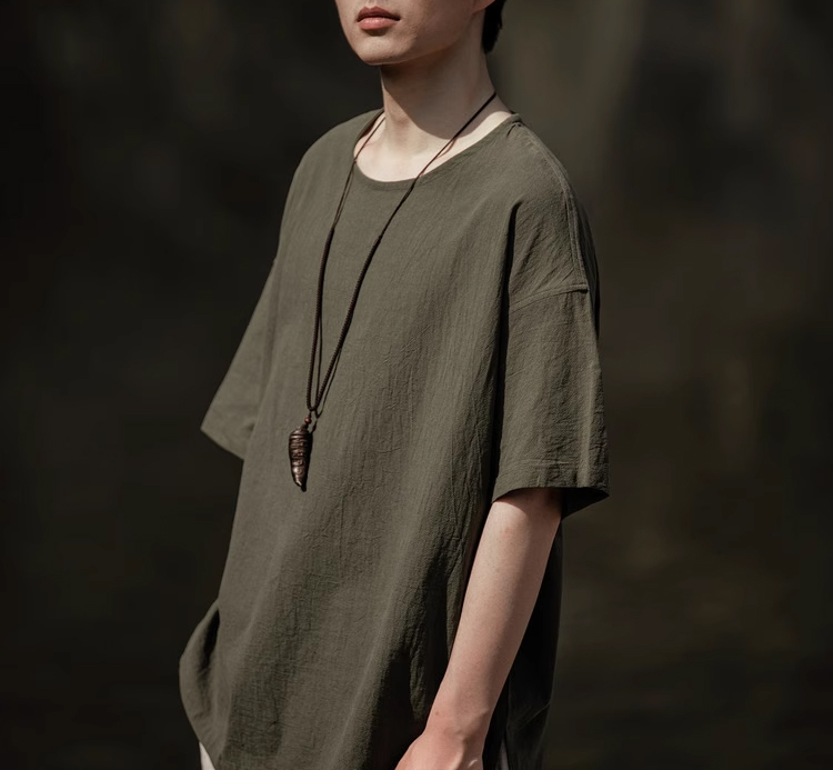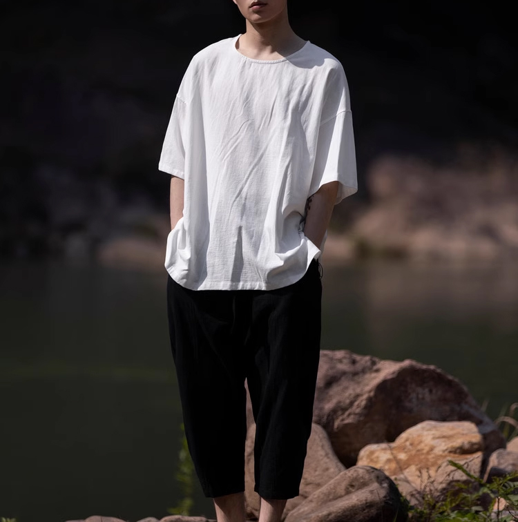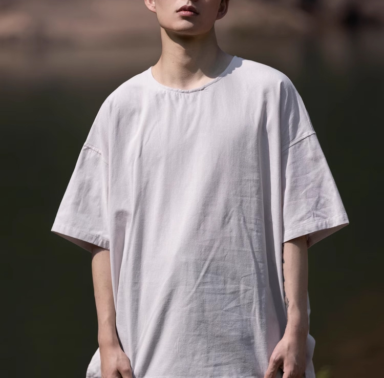 裁缝学苑MH03中国风亚麻套头圆领短袖棉麻t恤纸样男装复古打底衫样板