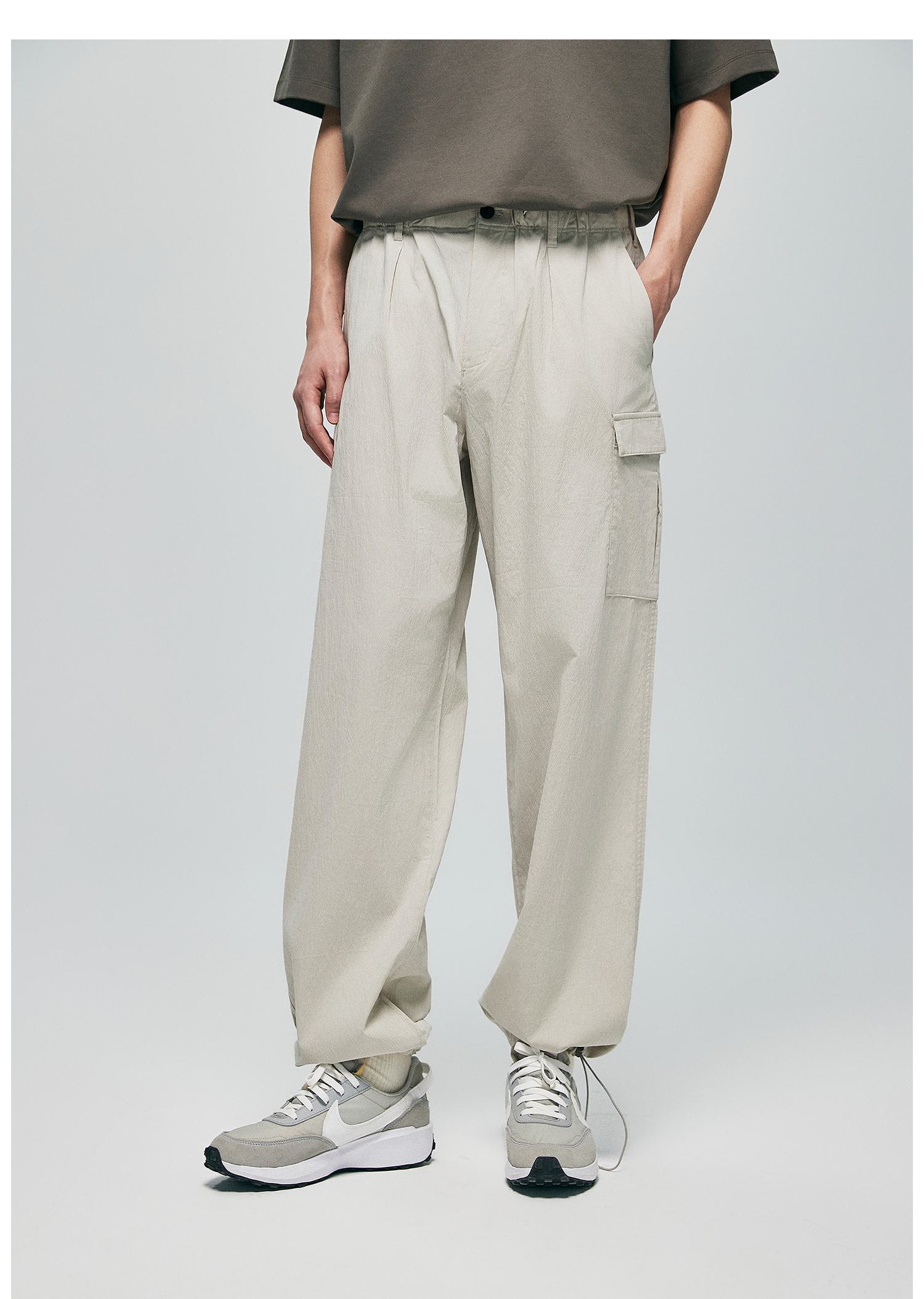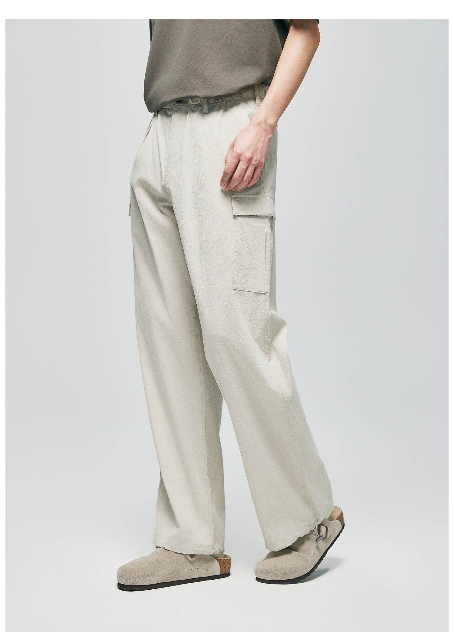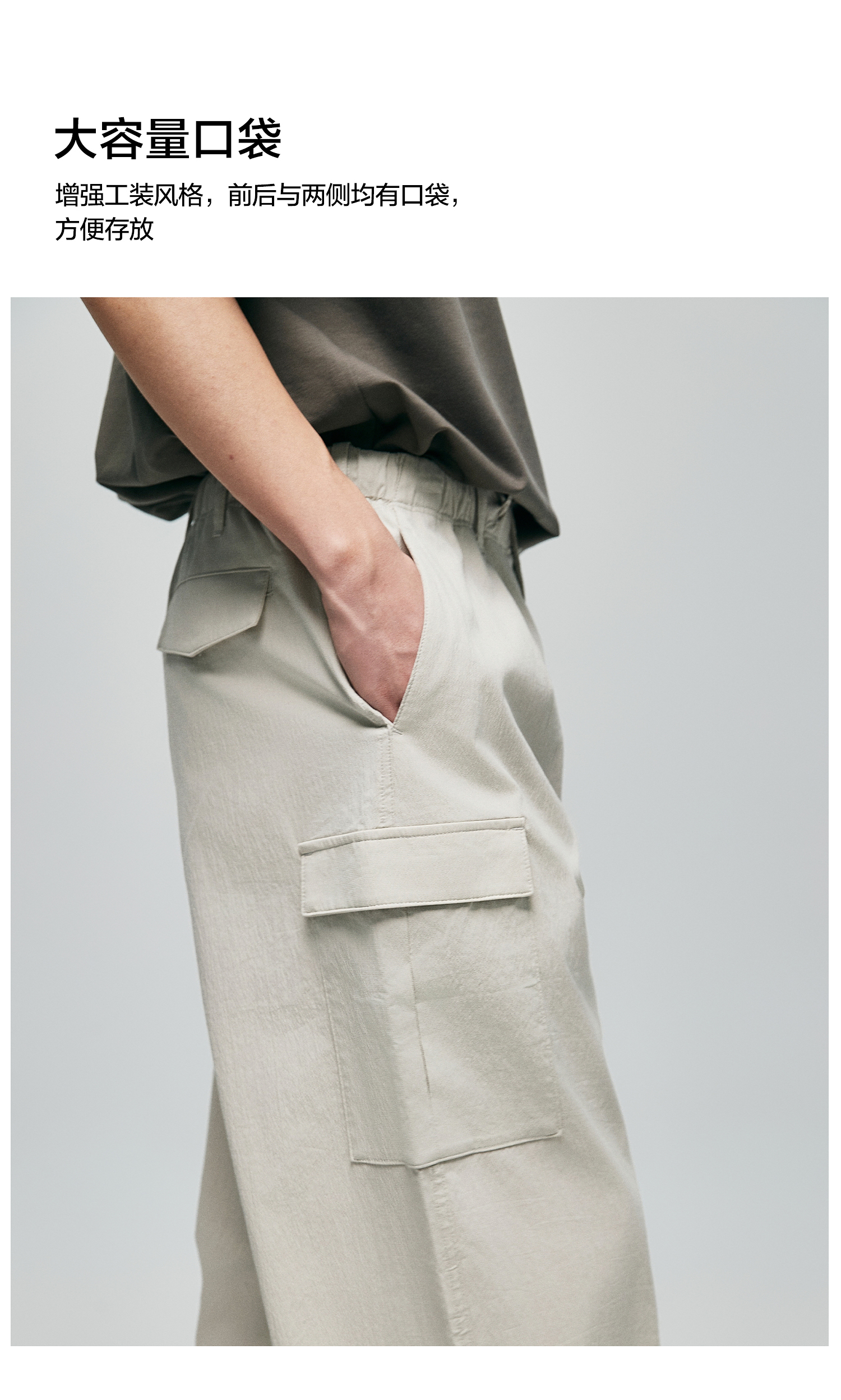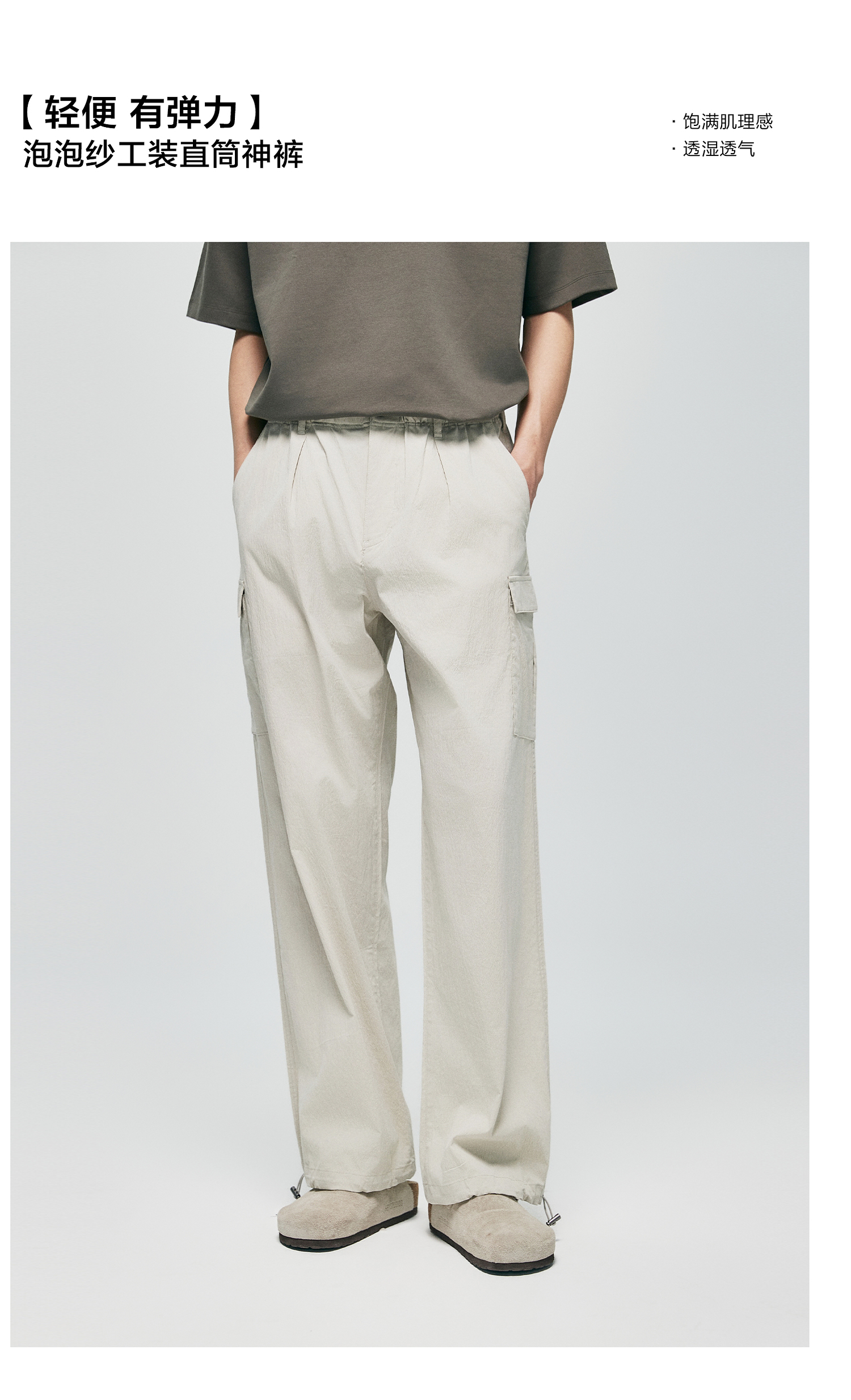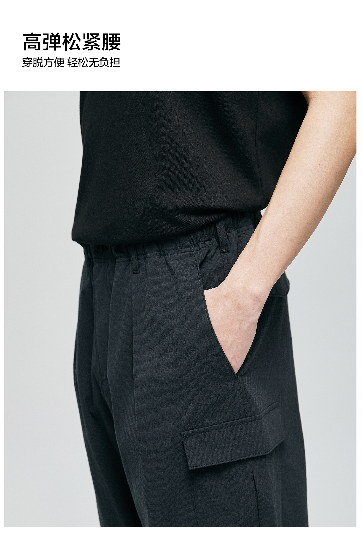 棉仓363818005-宽松版棉莱赛尔泡泡纱松紧腰工装裤