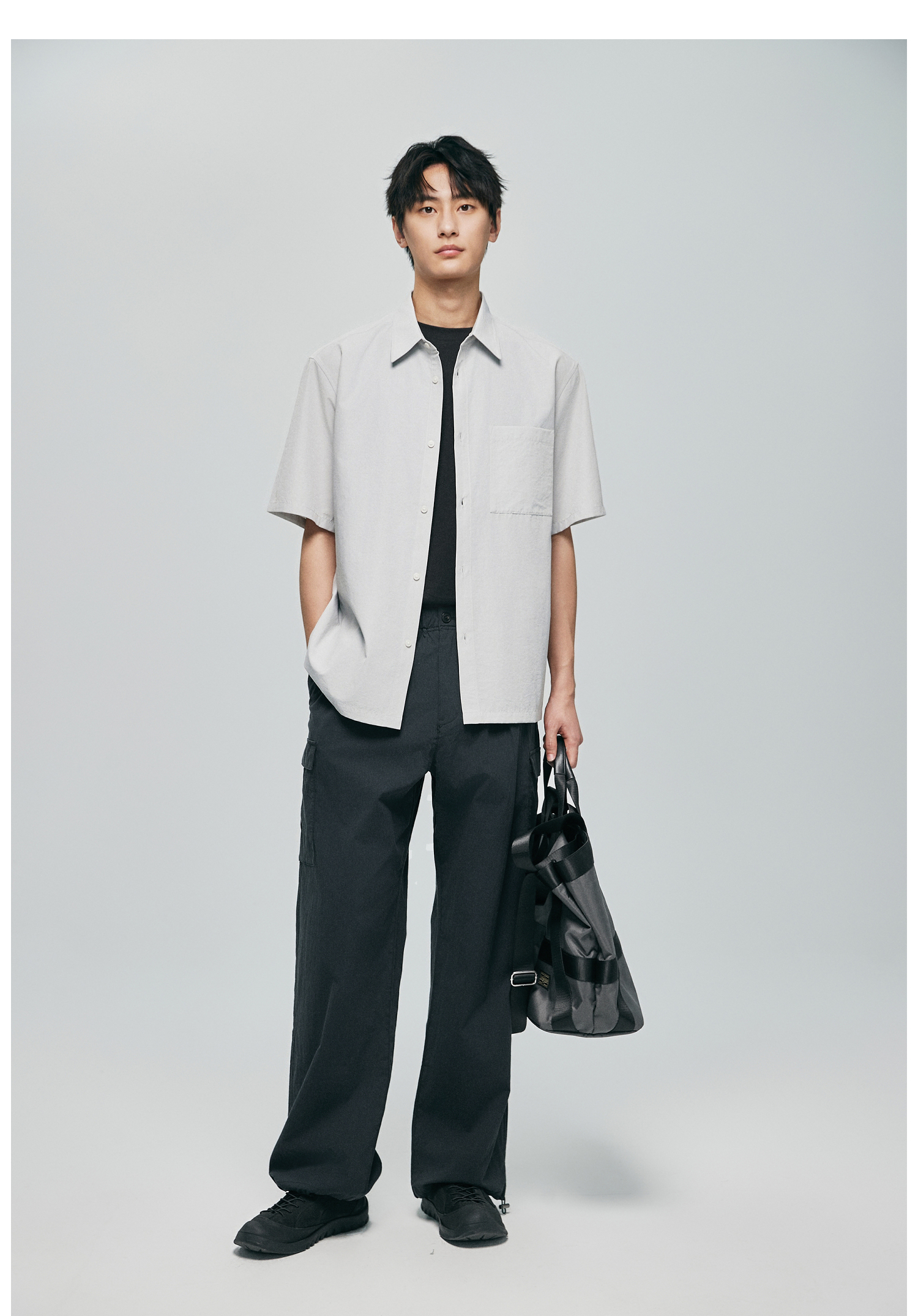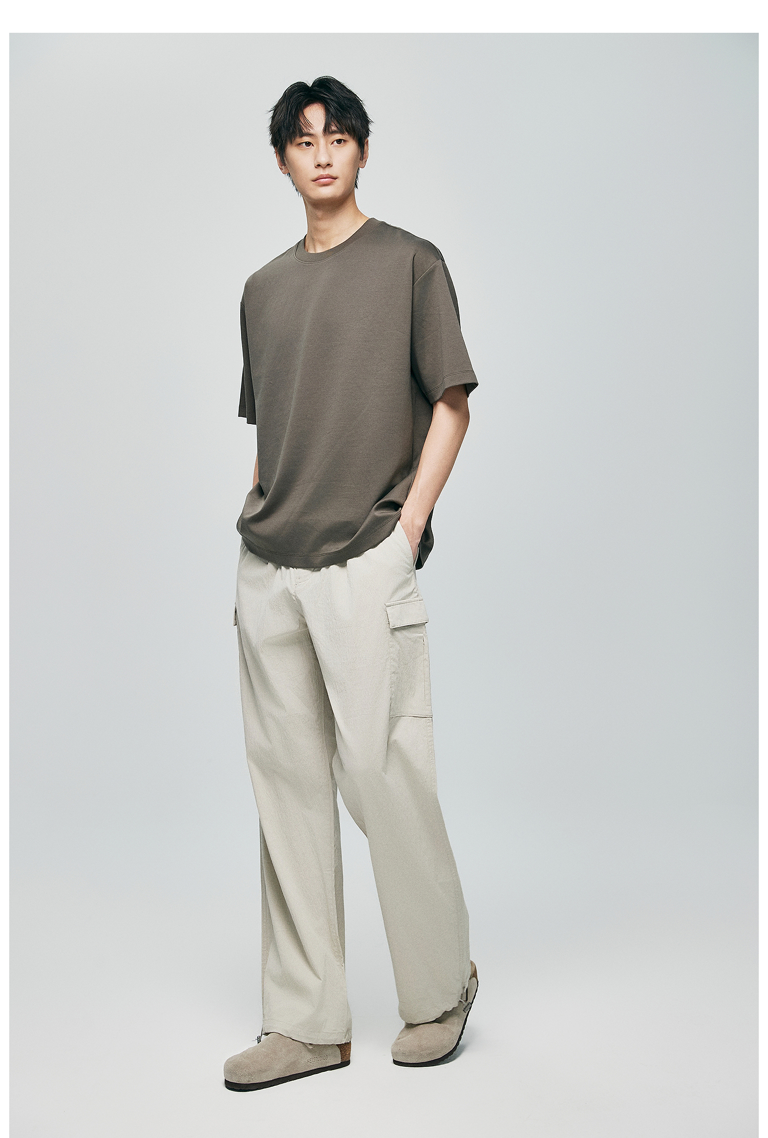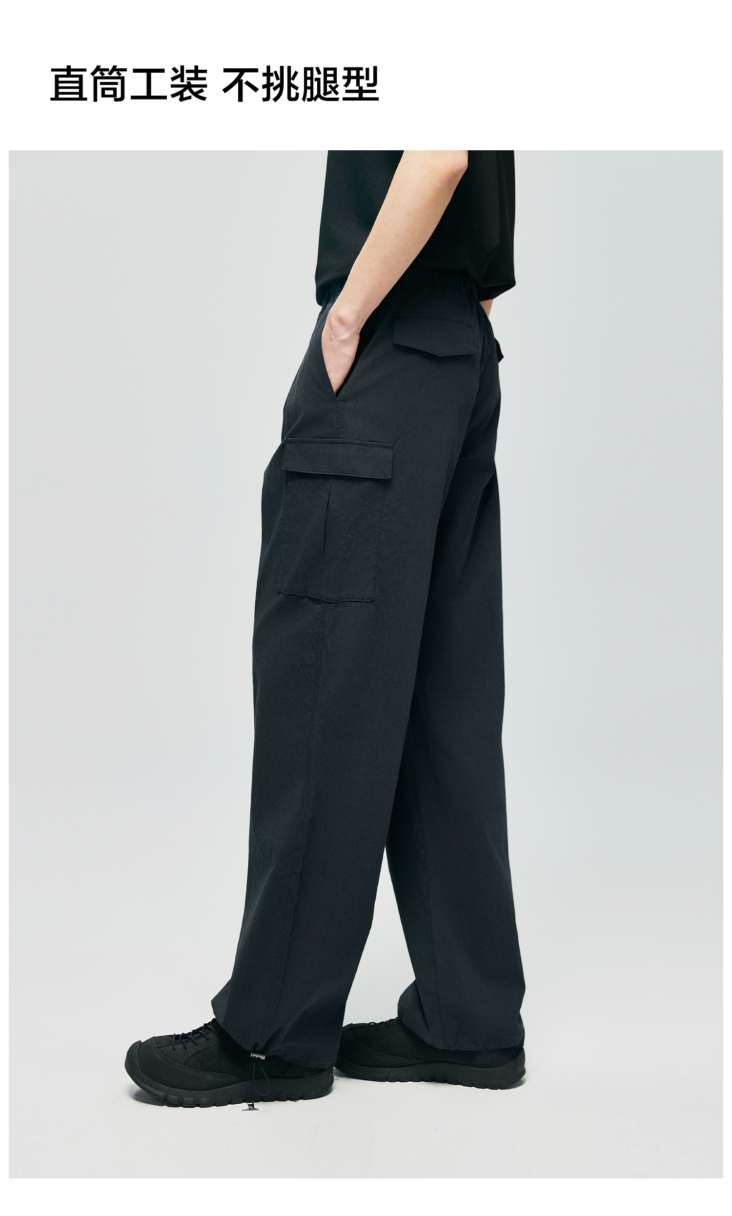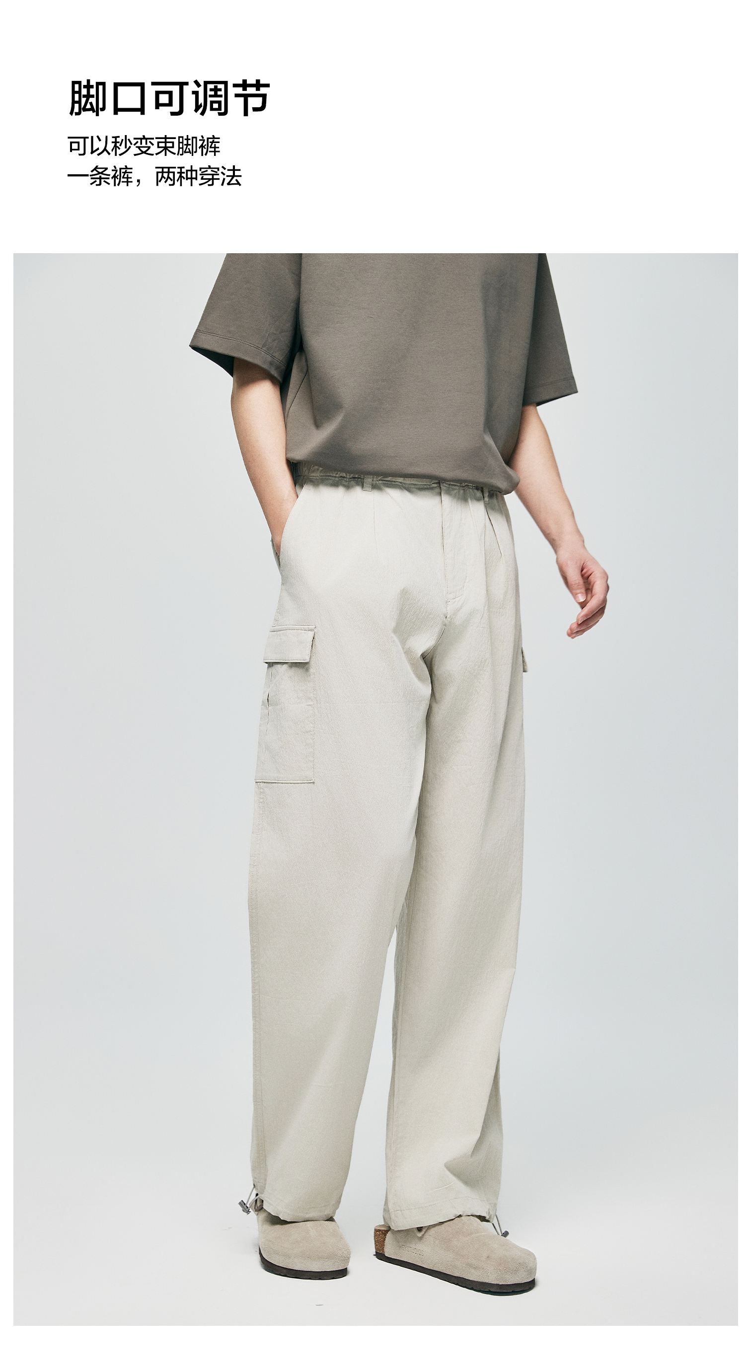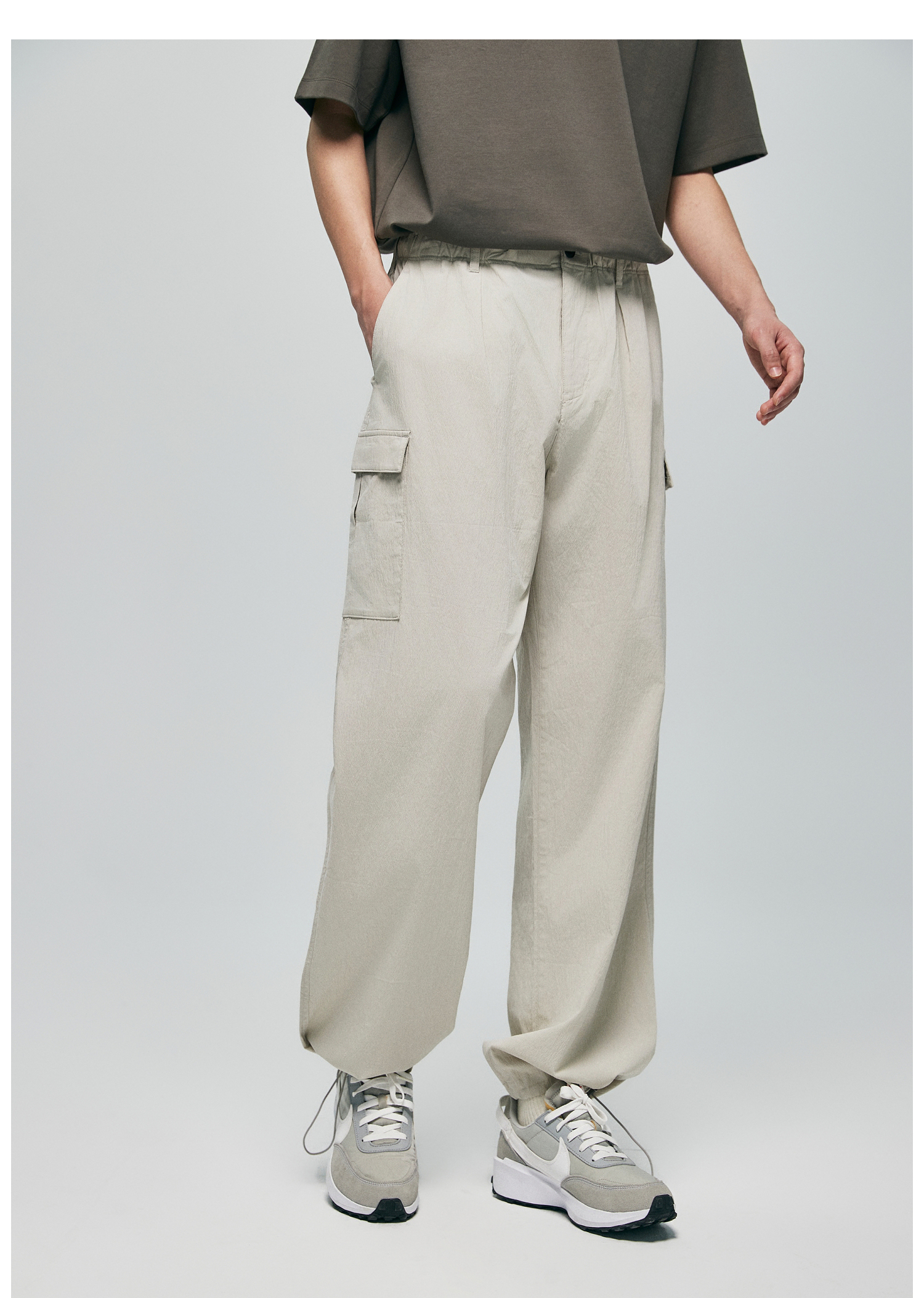 棉仓363818005-宽松版棉莱赛尔泡泡纱松紧腰工装裤