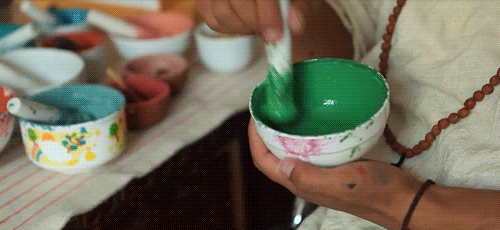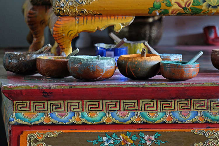 他们一边诵经,一边备颜料,不问岁月,不谈悲喜,将所有的心气力,将自己的信仰,倾注到那一抹色彩里。