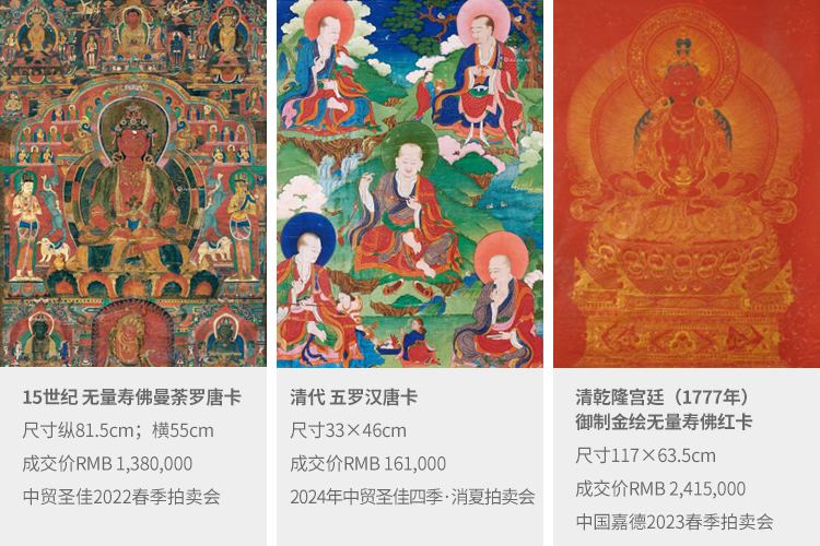 嘉德、保利、中贸圣佳等国内的一线大行,在唐卡拍卖上可谓是数一数二的突出,近乎每年都有唐卡上拍且价值不菲。