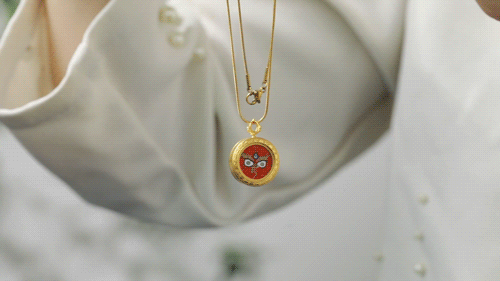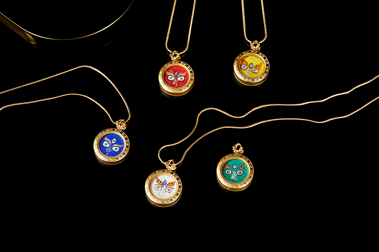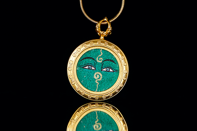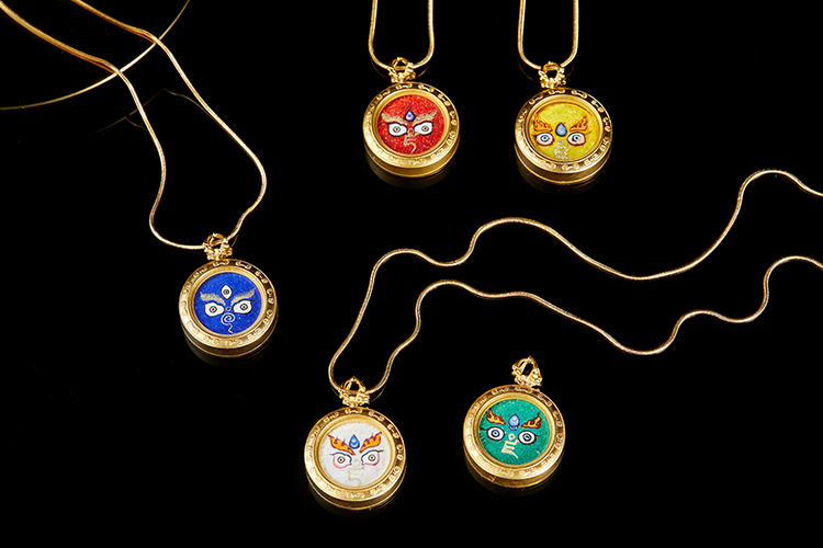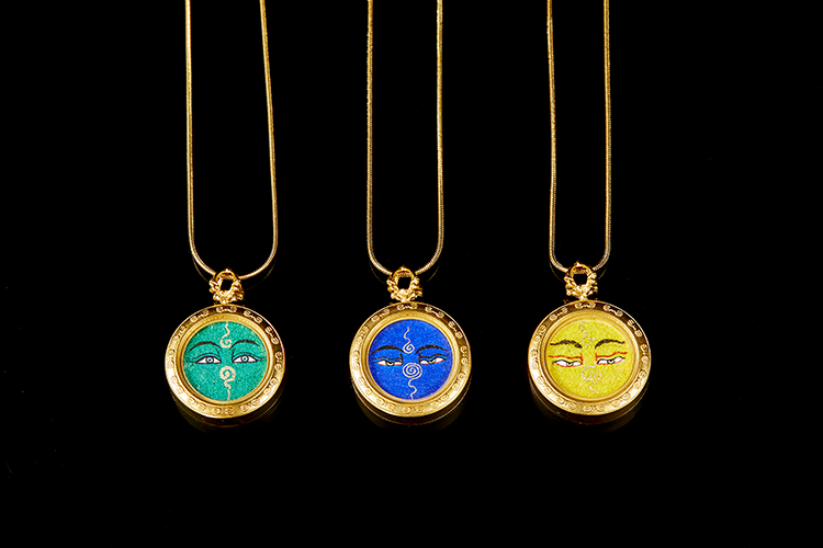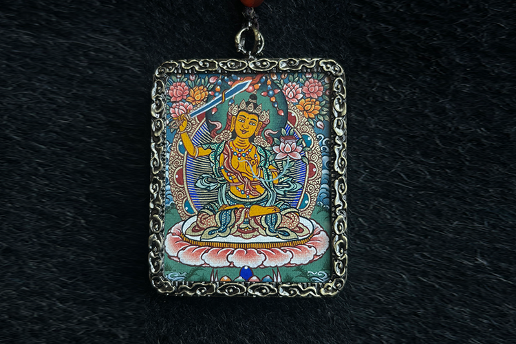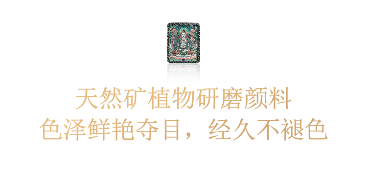 从打磨画布、研磨颜料、打底稿、上色、勾线、开眼都遵循传统的唐卡严苛的绘画流程,保证每件唐卡吊坠都是用心之作。