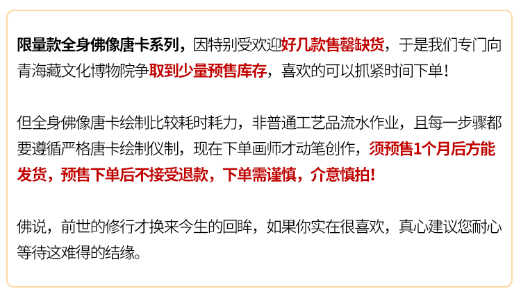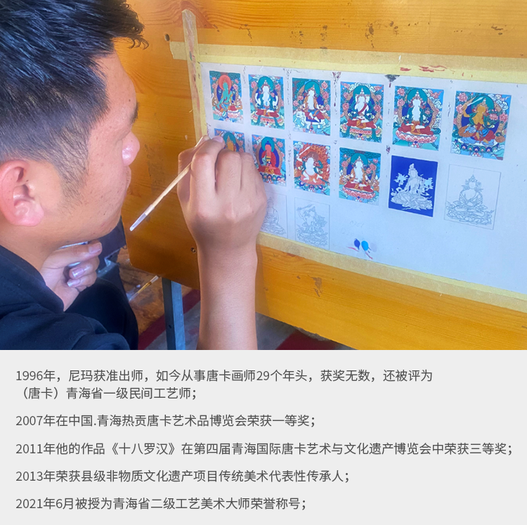 这个系列是由(唐卡)青海省一级民间工艺师尼玛亲绘,因为佛像唐卡比佛眼唐卡创作更为耗时,限量结缘。